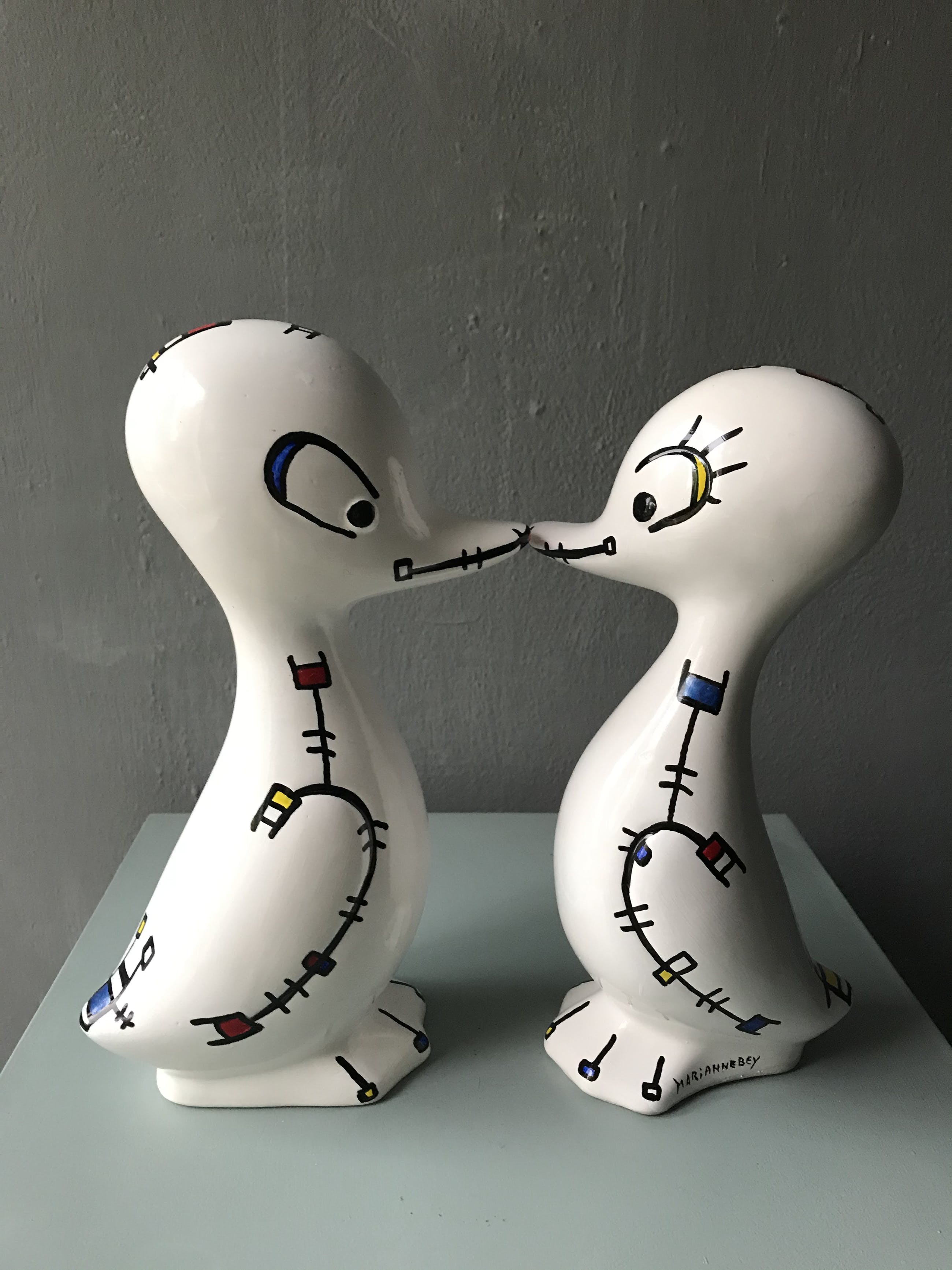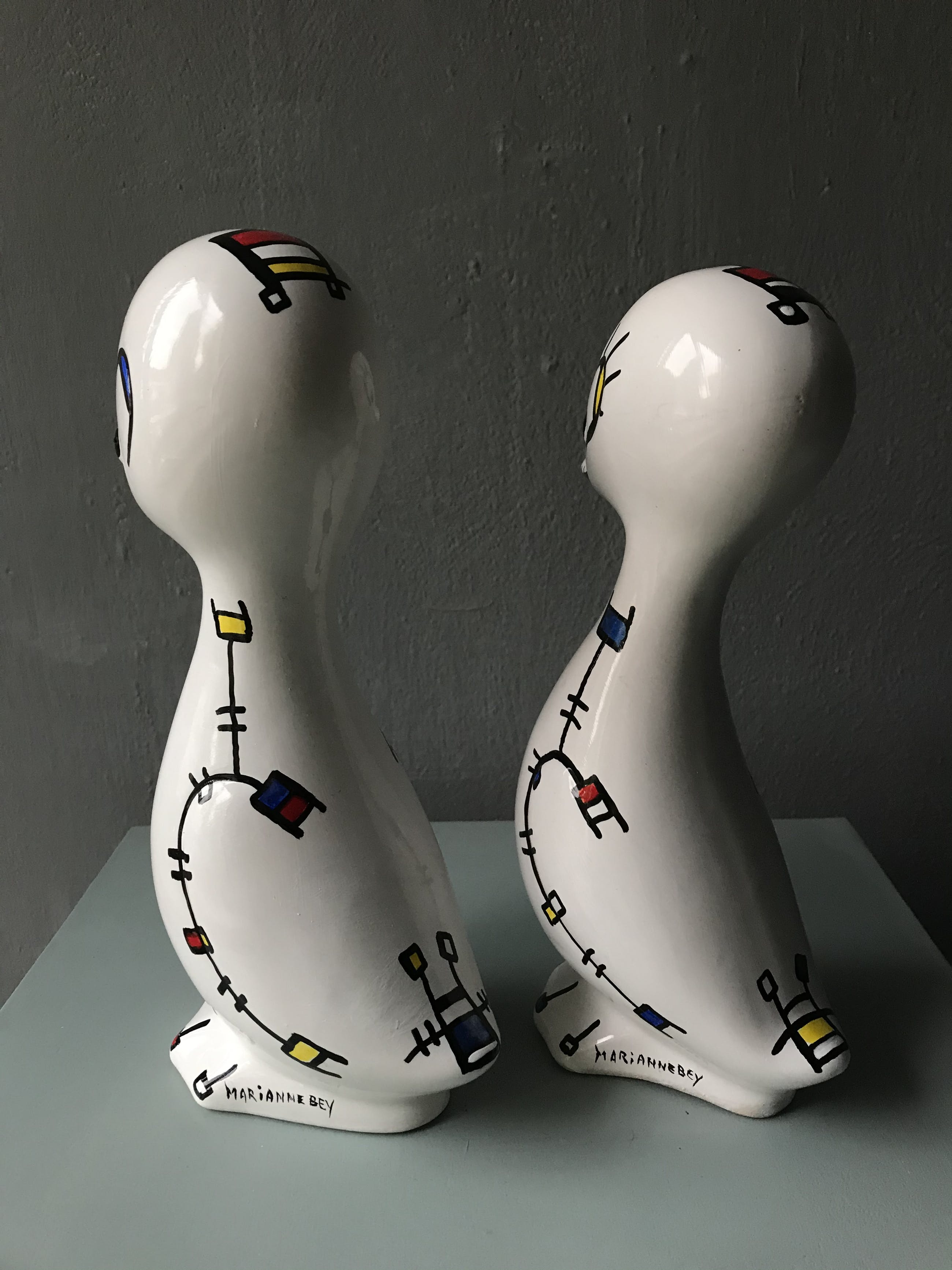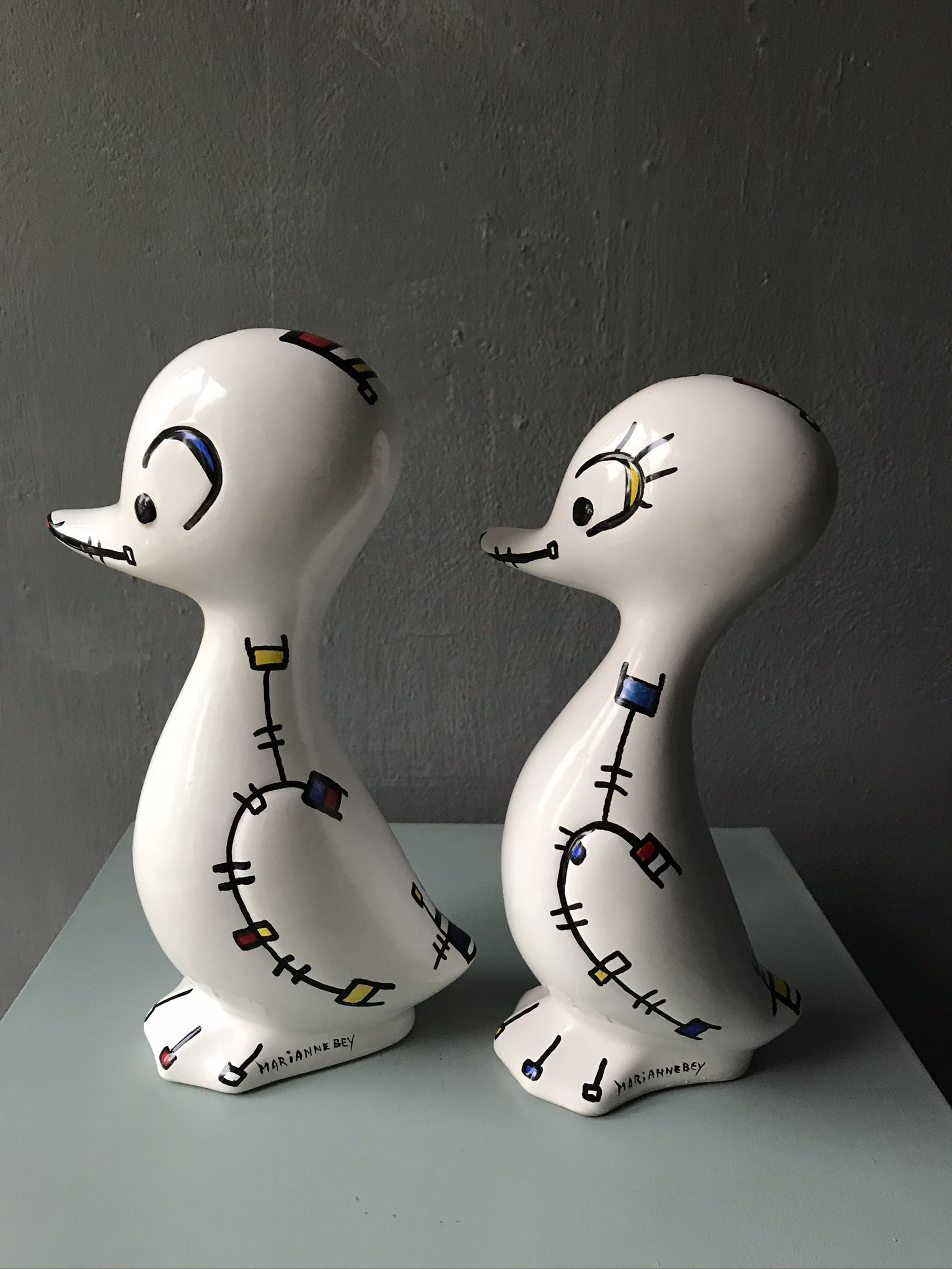 Twee unieke keramische beeldjes van Marianne Bey Unica en gesigneerd Met certificaat Allen MijnKunst items worden aangetekend verstuurd