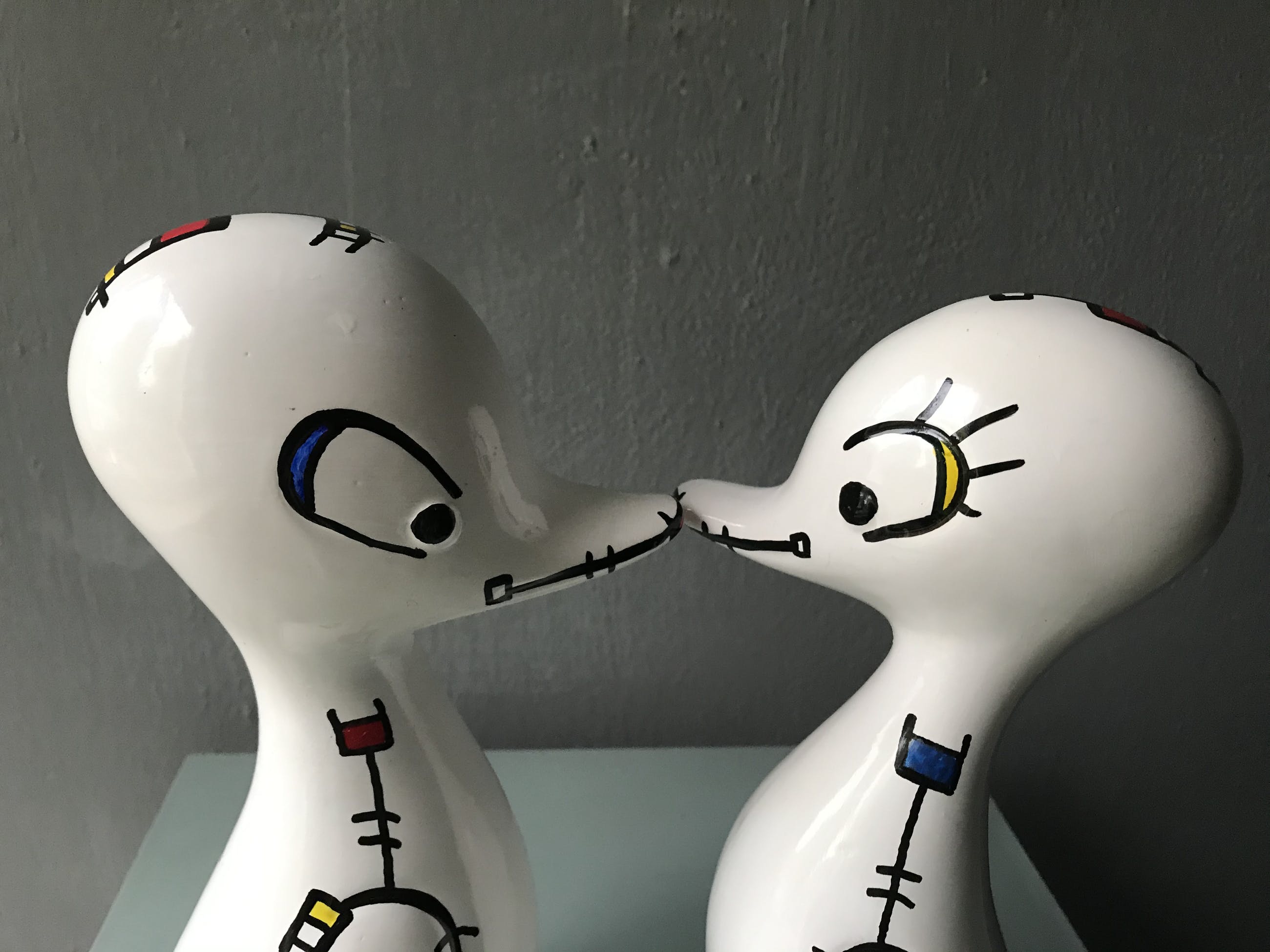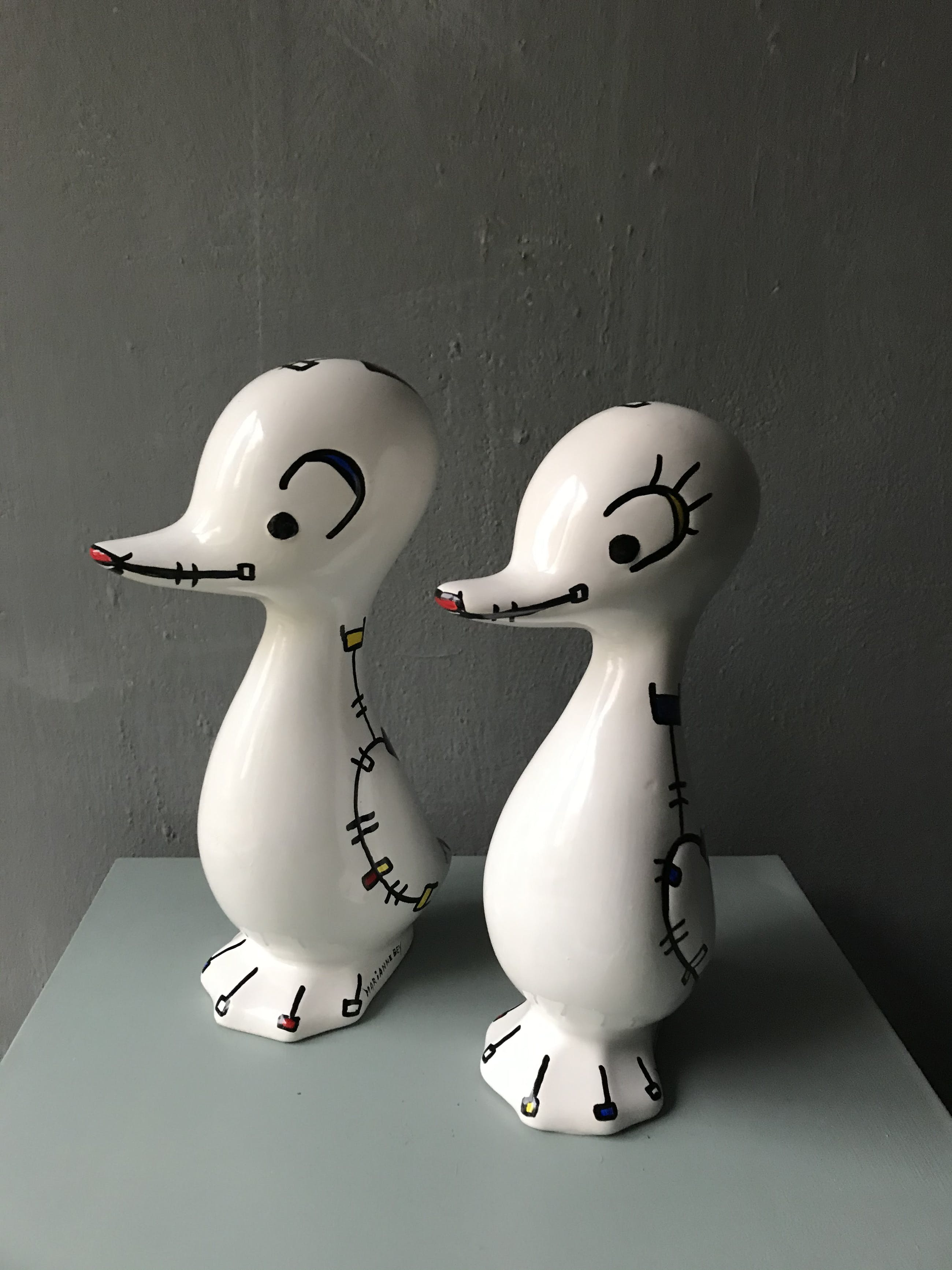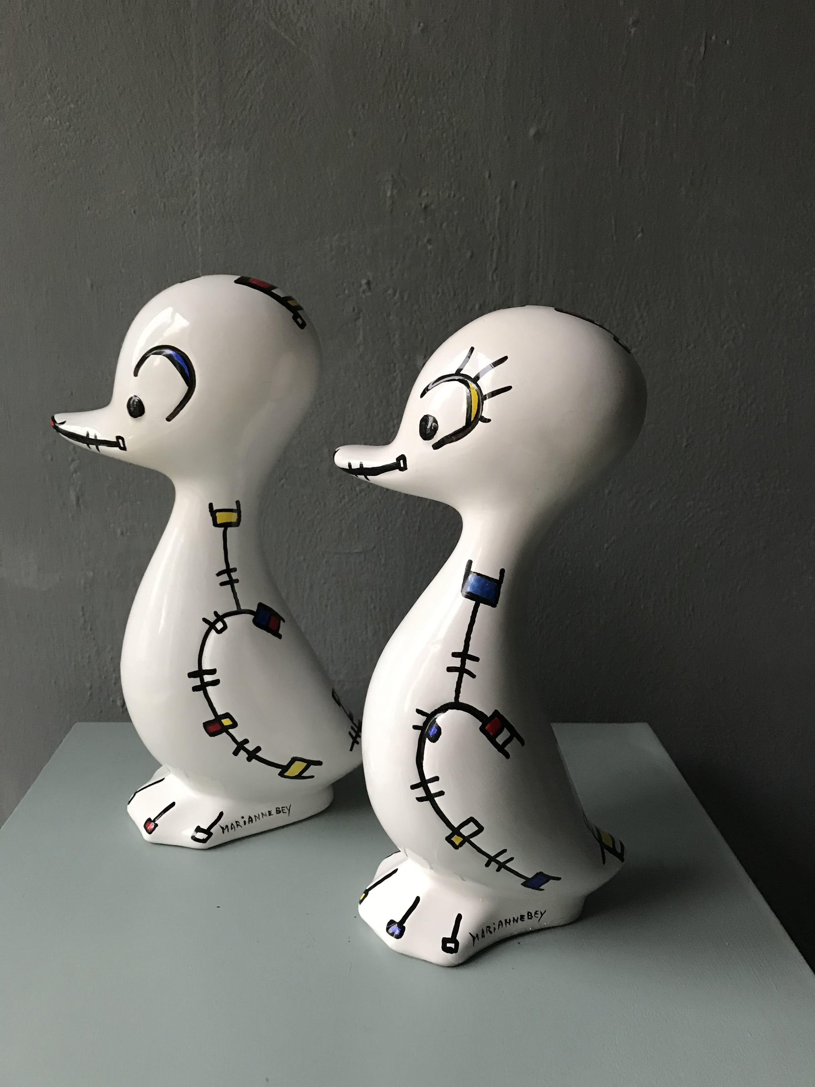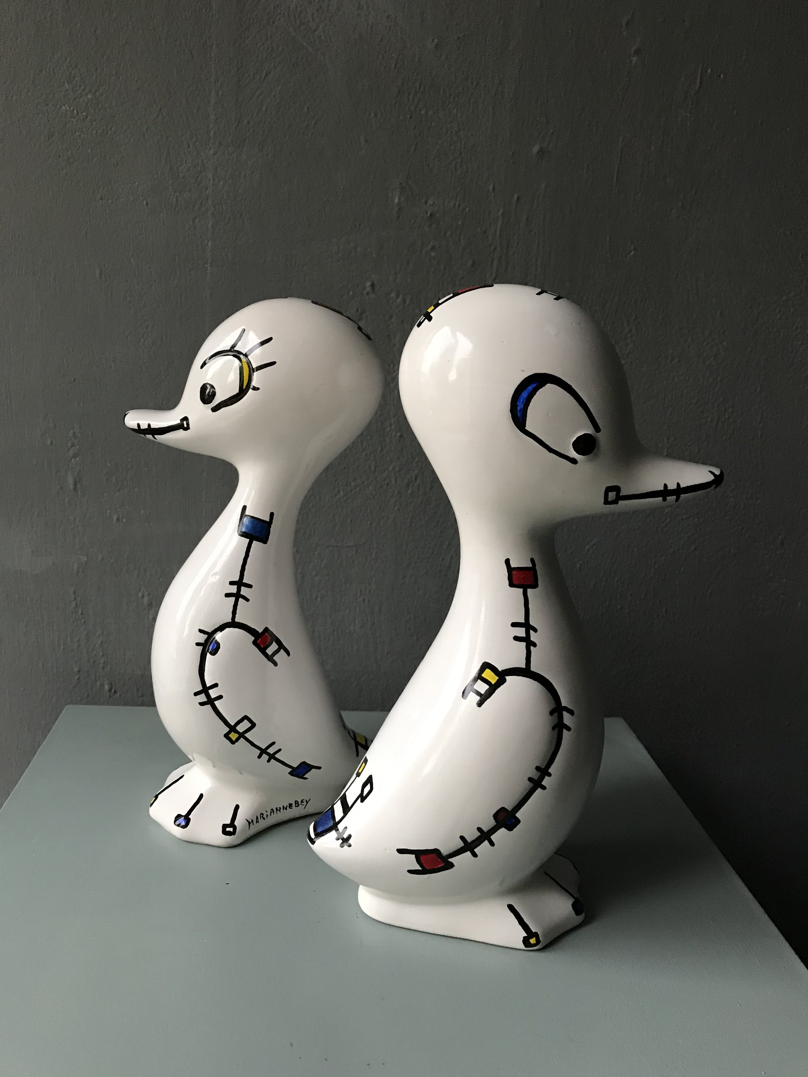 Twee unieke keramische beeldjes van Marianne Bey Unica en gesigneerd Met certificaat Allen MijnKunst items worden aangetekend verstuurd