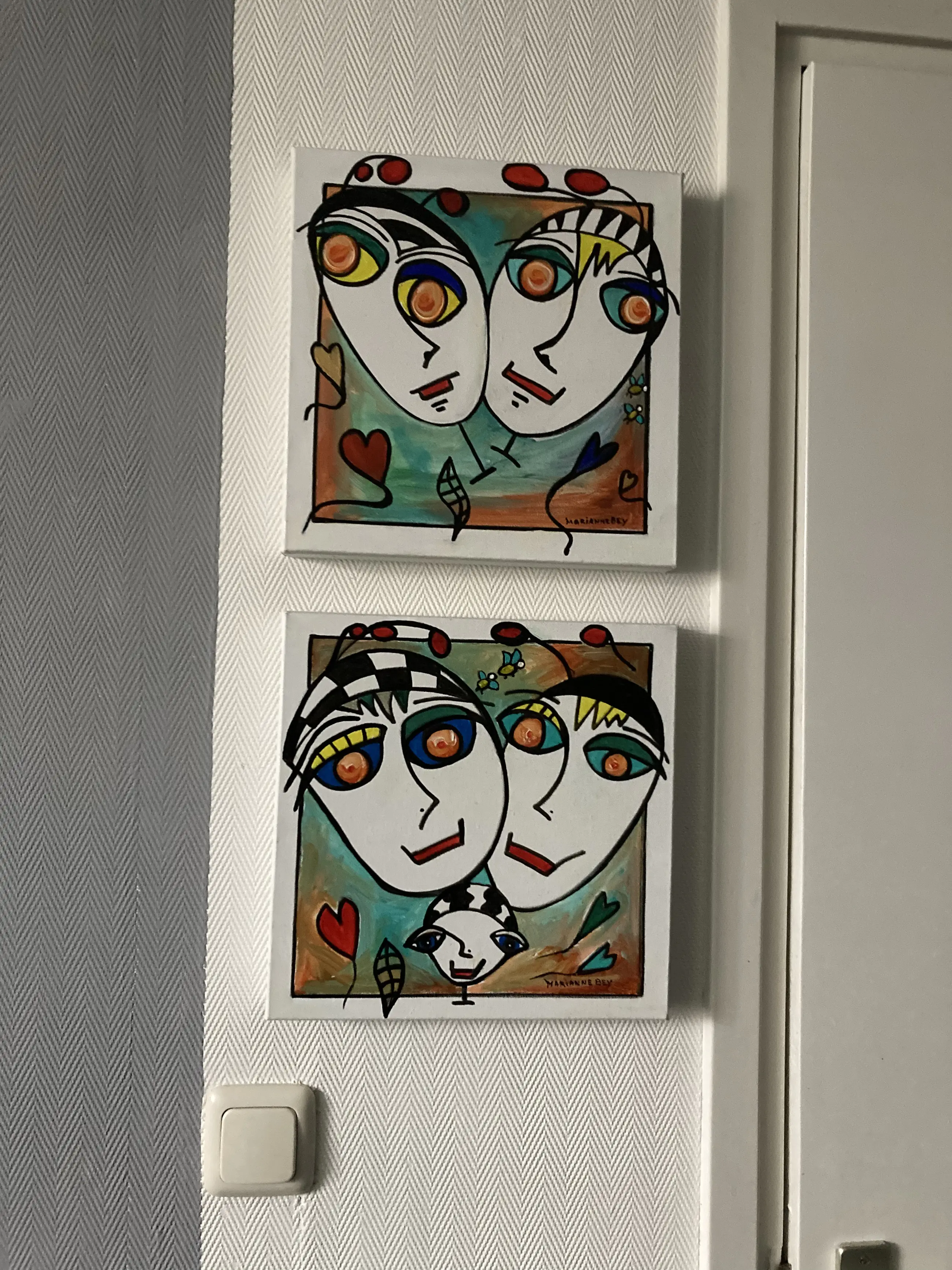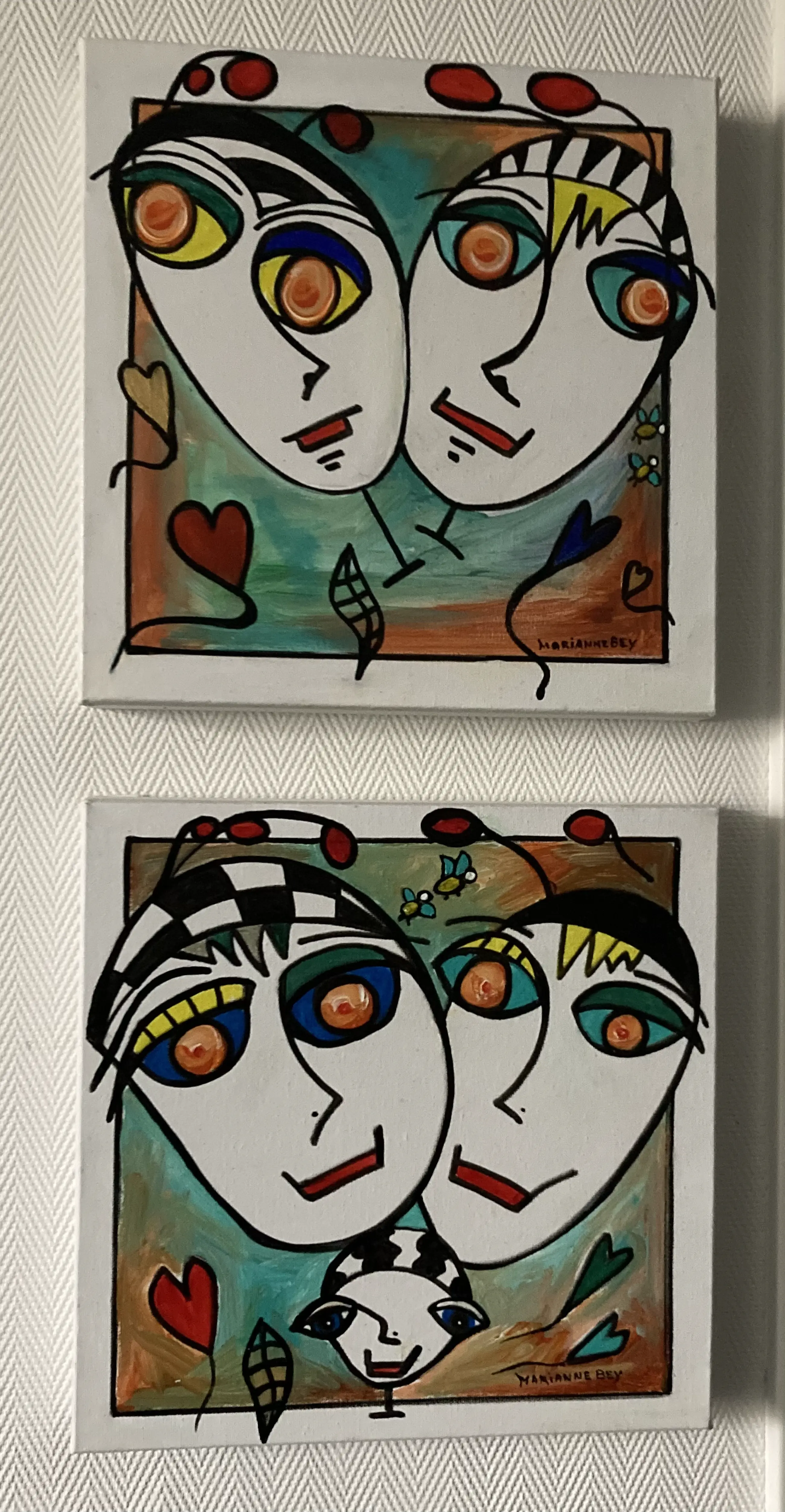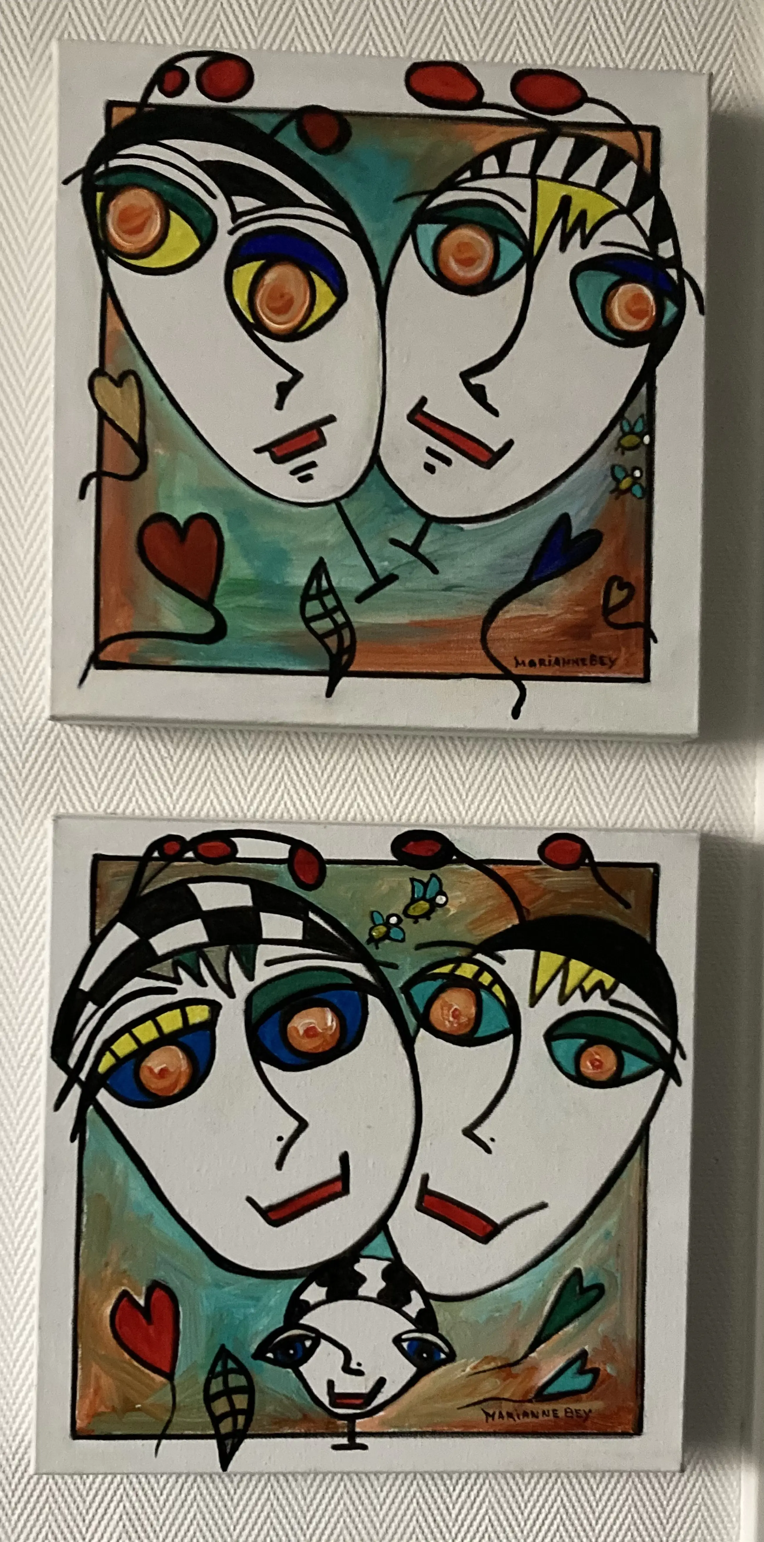Twee unieke Acrylic op doek schilderijtjes van Marianne Bey Unica’s en gesigneerd Handgeschilderd Dikte doek 4 cm Allen MijnKunst items worden aangetekend naar u verstuurd .