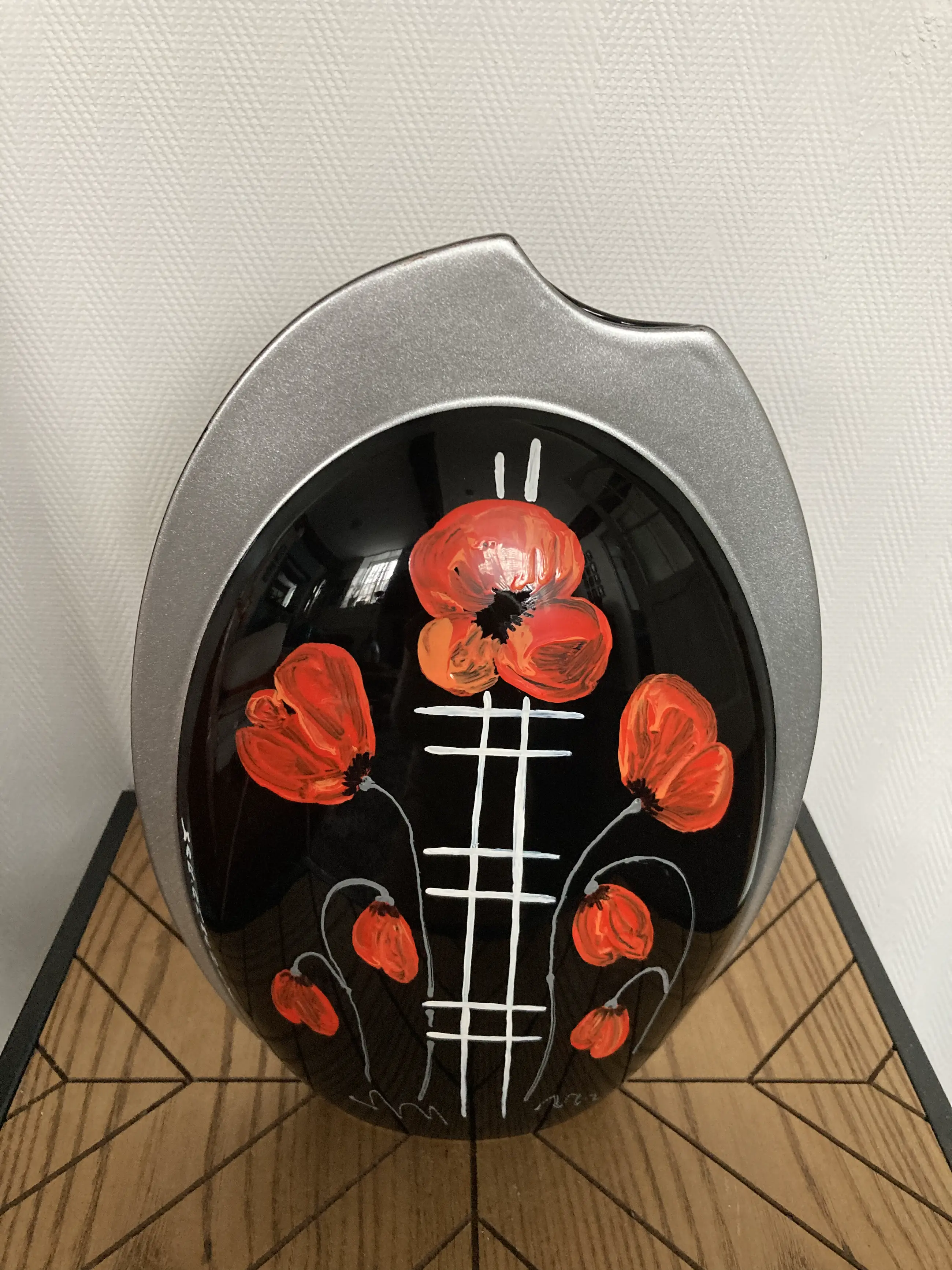 Een bijzondere keramische strakke vaas van Marianne Bey Unica en gesigneerd Hand bewerkt en beschilderd Daarna in de oven gebakken op 150 graden Uniek ontwerp . Alle MijnKunst items worden aangetekend verstuurd .
