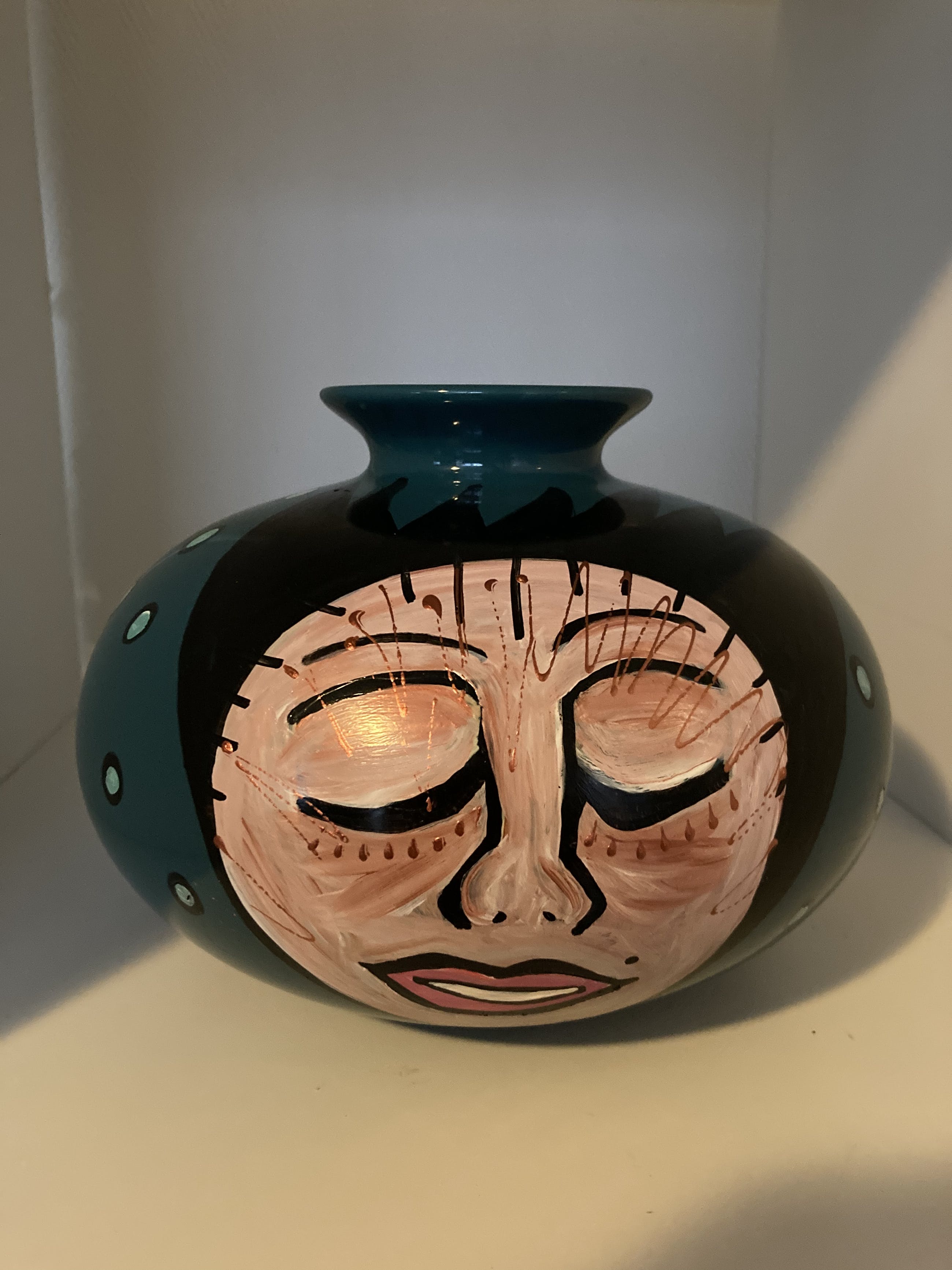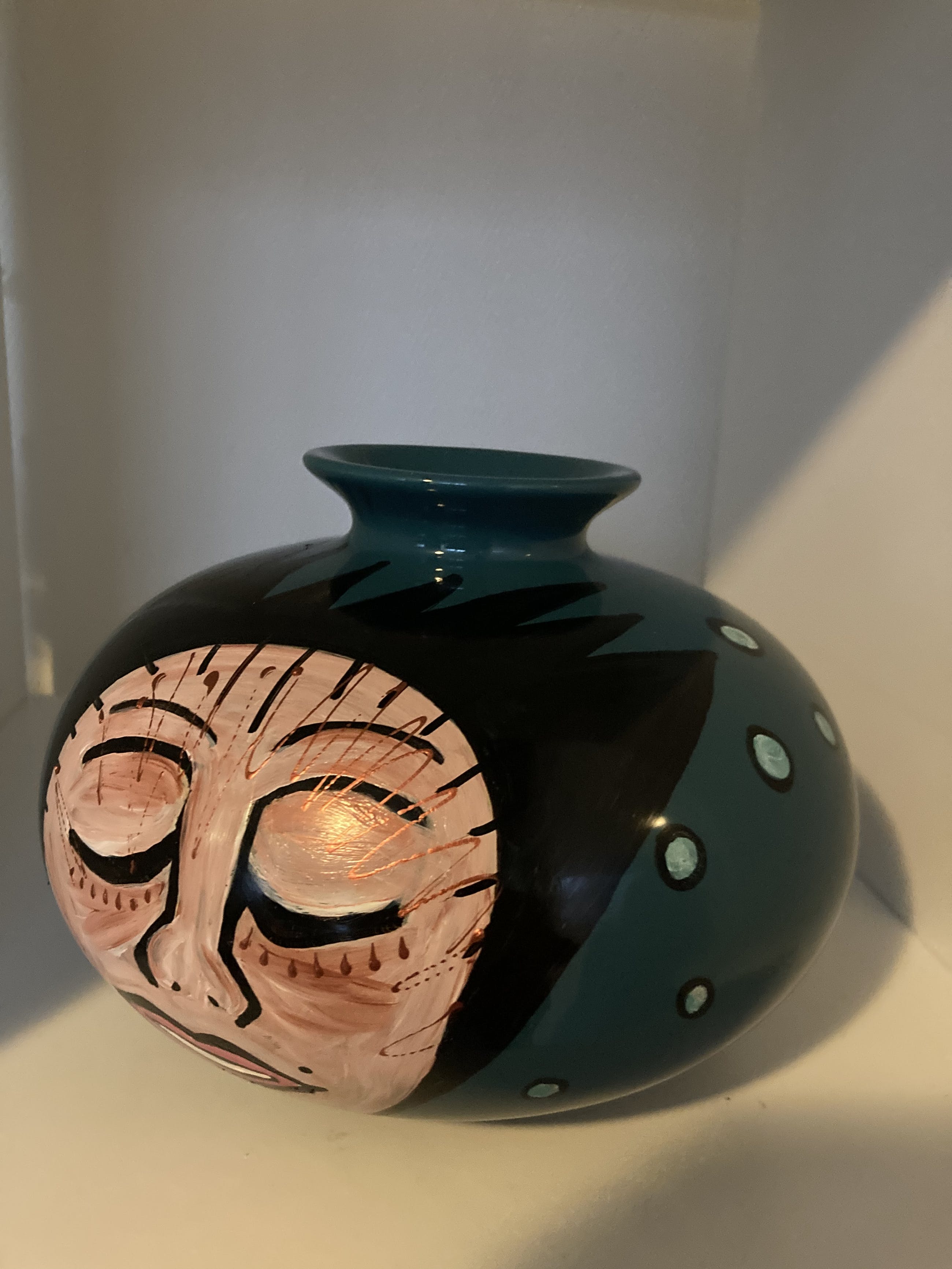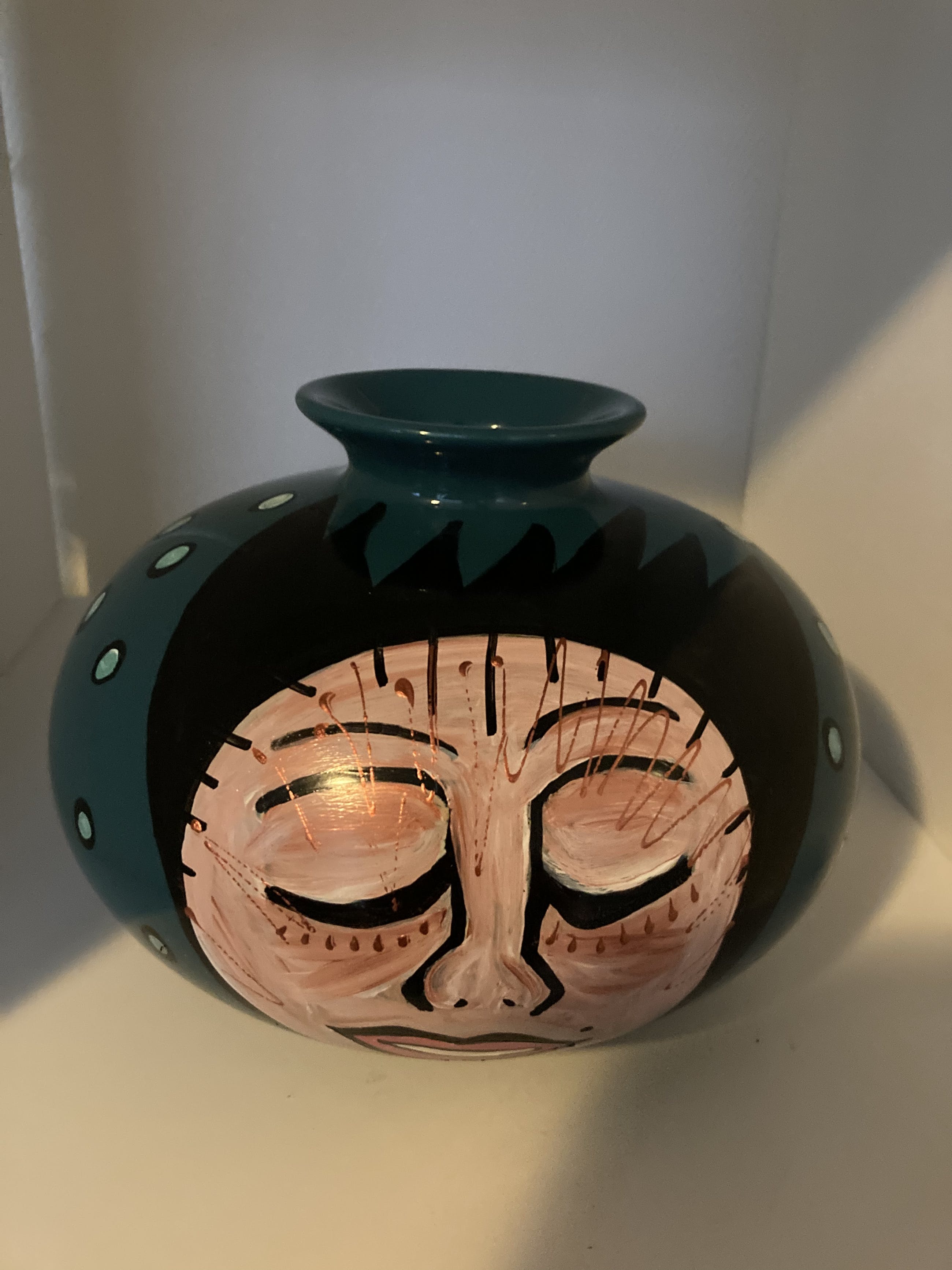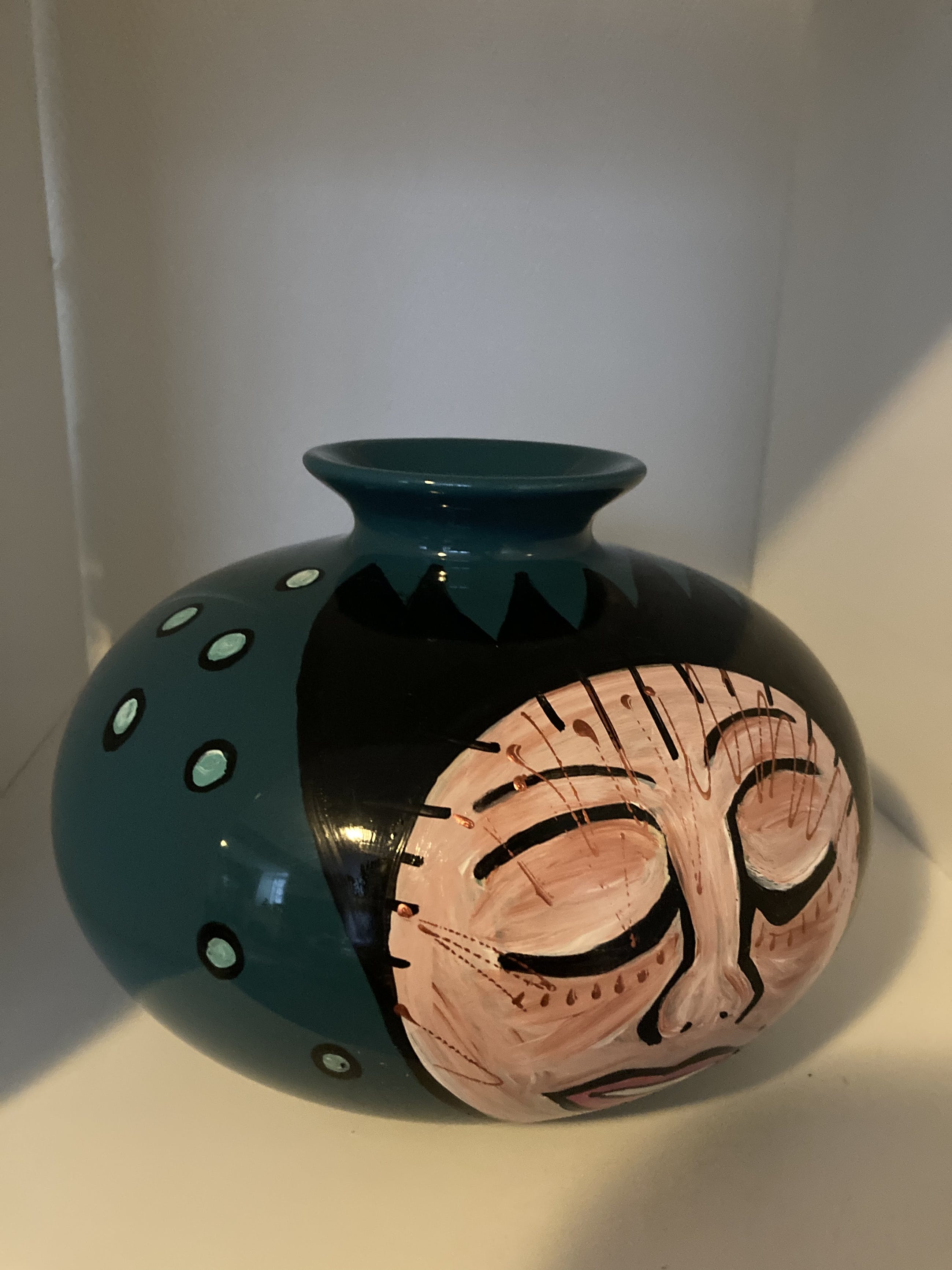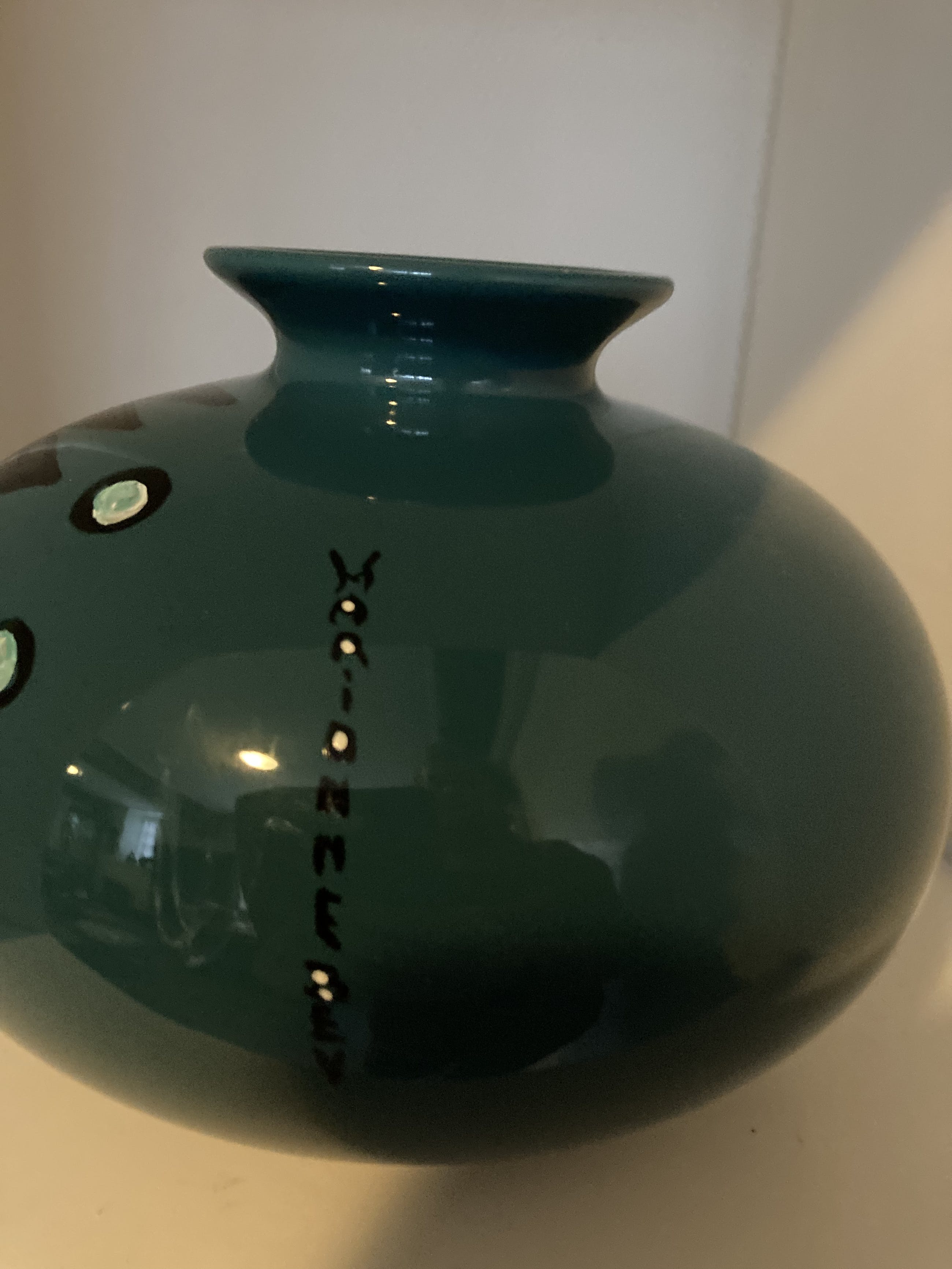 Een bijzonder keramisch vaasje van Marianne Bey Unica en gesigneerd Handbeschilderd Daarna op 140 graden gebakken Alle MijnKunst items worden aangetekend verstuurd .