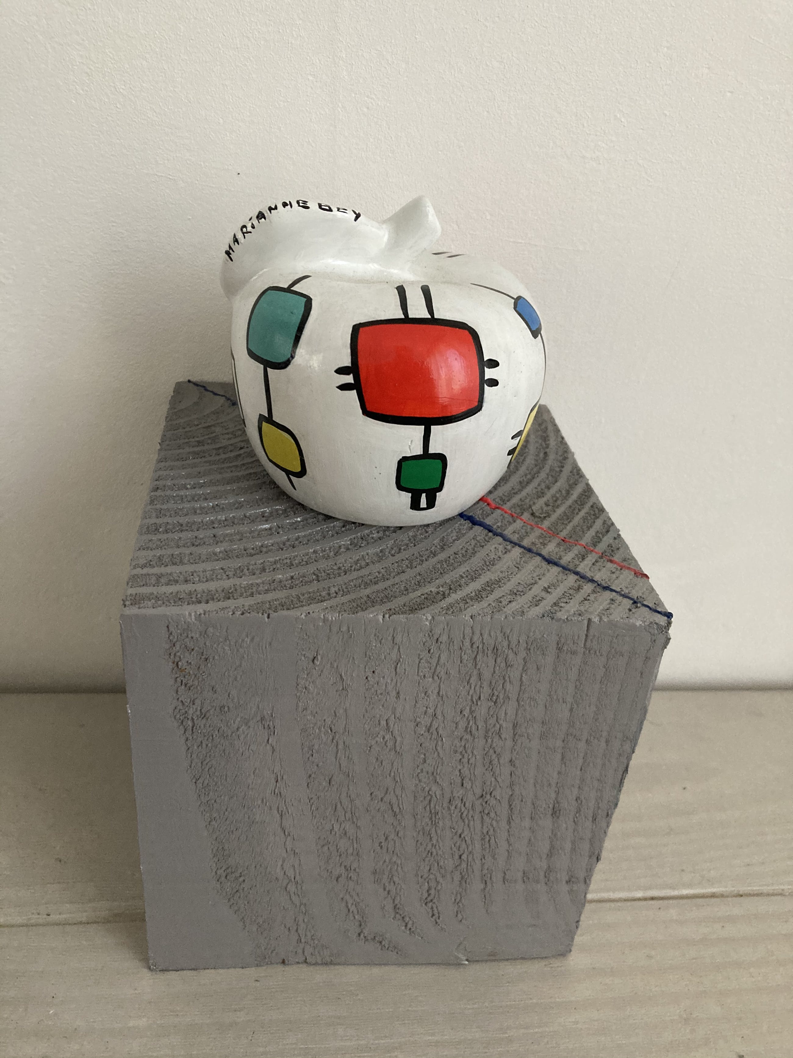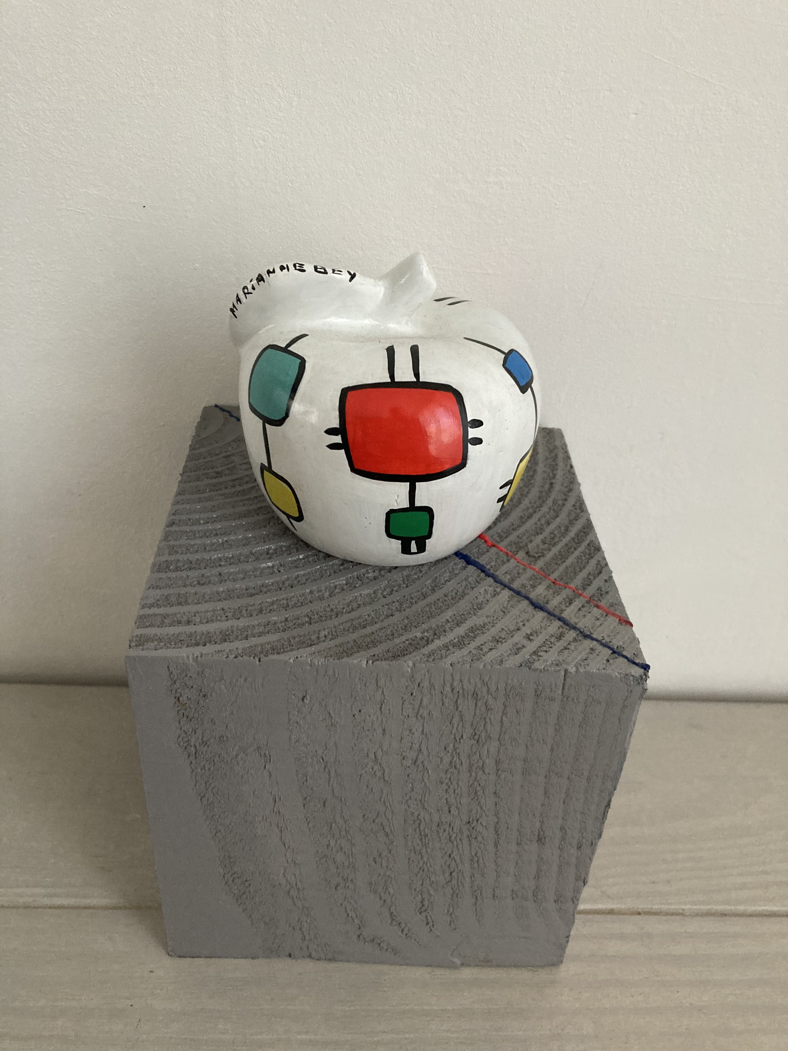 Een uniek keramisch beeld op Massief houten sokkel van Marianne Bey Unica en gesigneerd Met certificaat Alle MijnKunst items worden aangetekend verstuurd