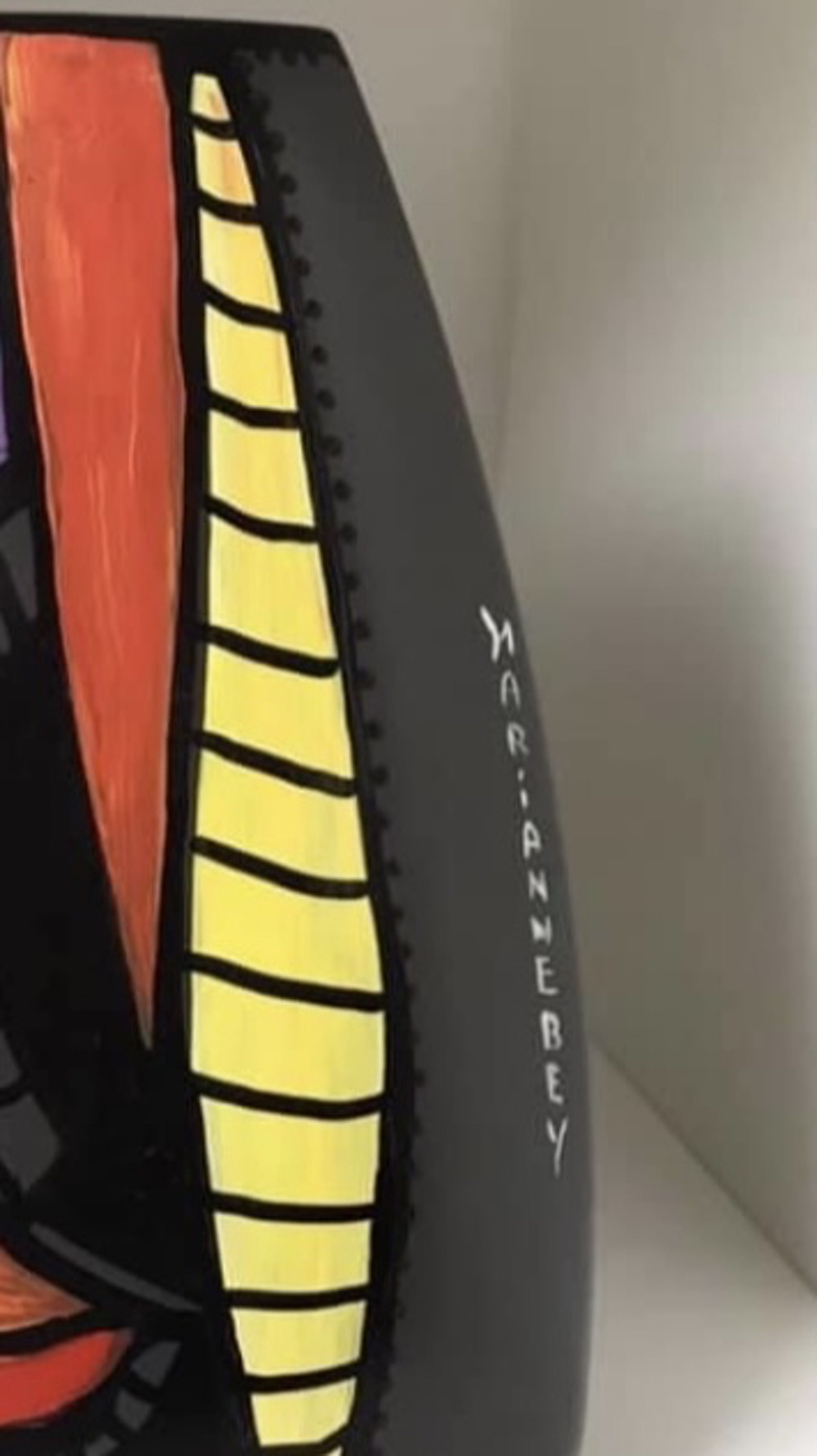 Een unieke keramische vaas van Marianne Bey Unica en gesigneerd Met certificaat . Alle MijnKunst items worden aangetekend verstuurd .