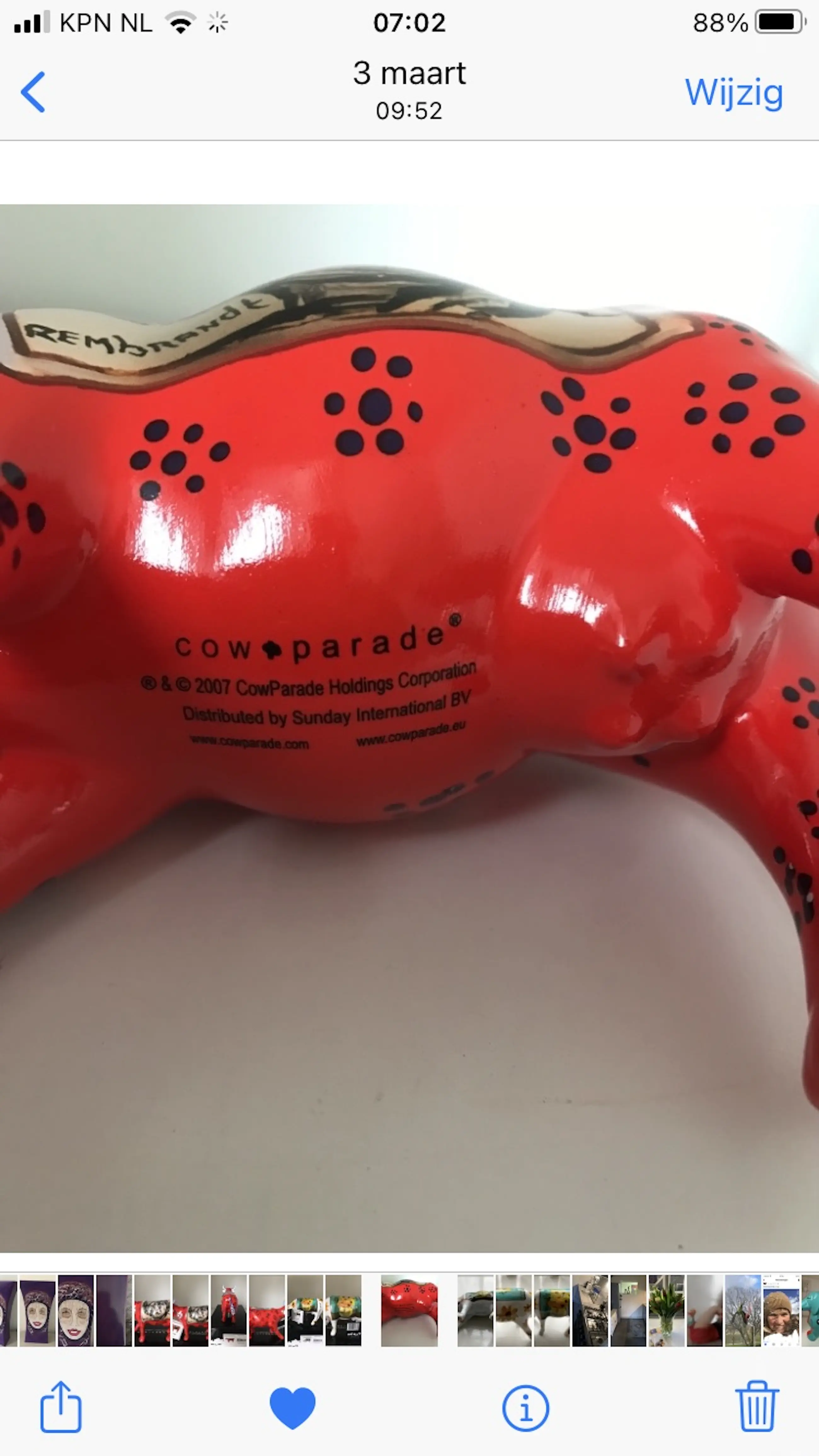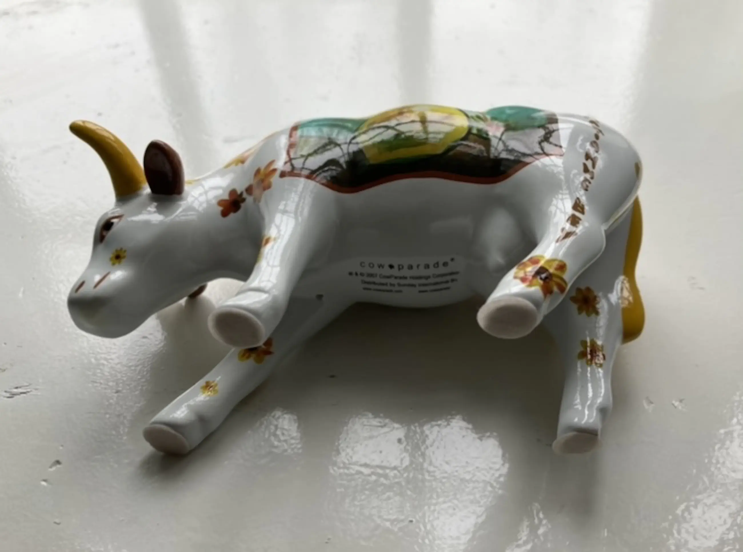 Gesigneerd op achterpoten En door Cowparade stempel onder de buikjes Beide koetjes zijn 400 gr per koetje In luxe verpakkingsdoosjes Met neklabels Allen Marianne Bey items worden aangetekend naar u verstuurd