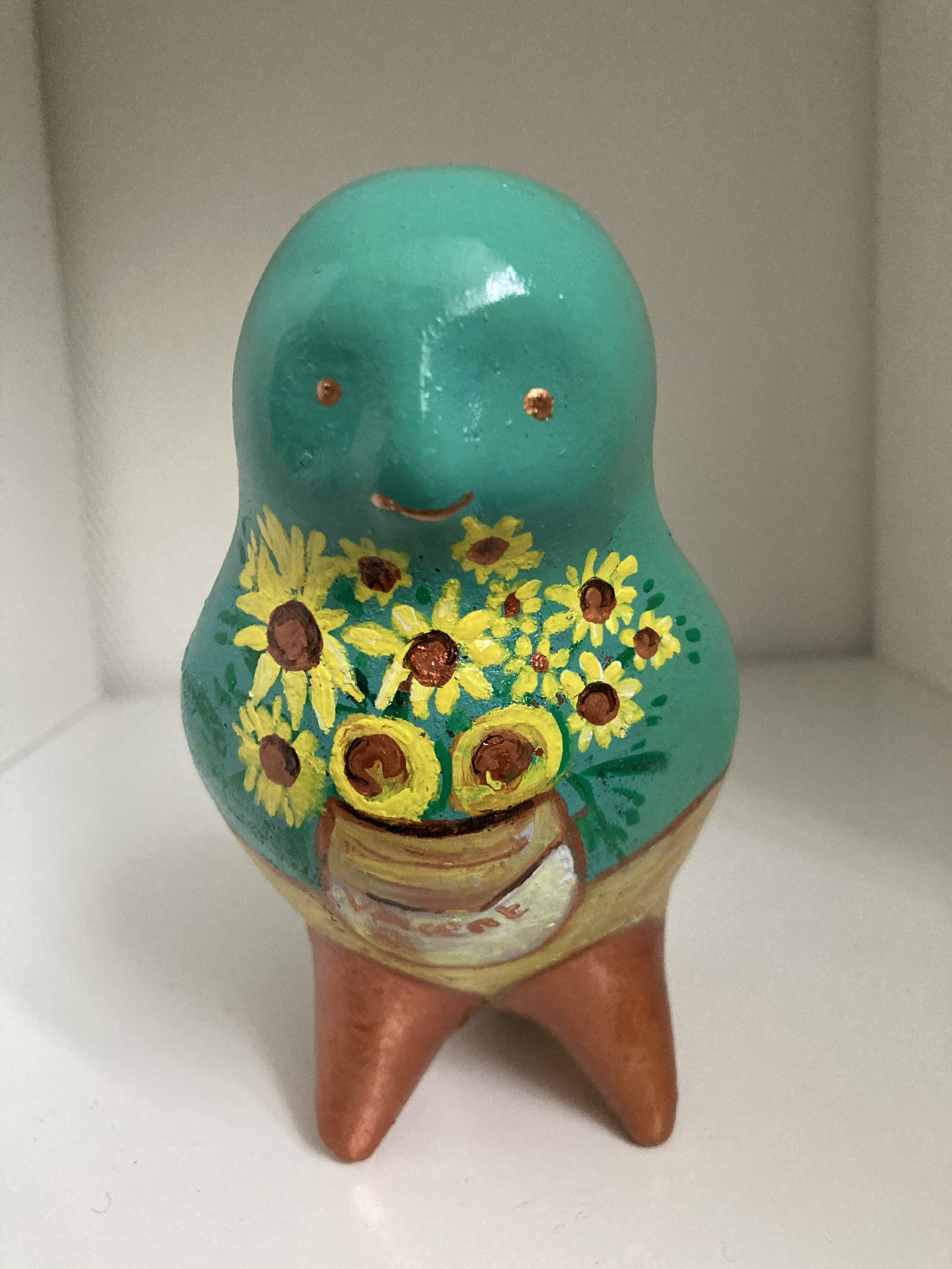 Een uniek keramisch beeldje van Marianne Bey Unica en gesigneerd Uit een collectie van 12 verschillend gestyleerde met de hand beschilderde beeldjes . Alle MijnKunst items worden aangetekend verstuurd