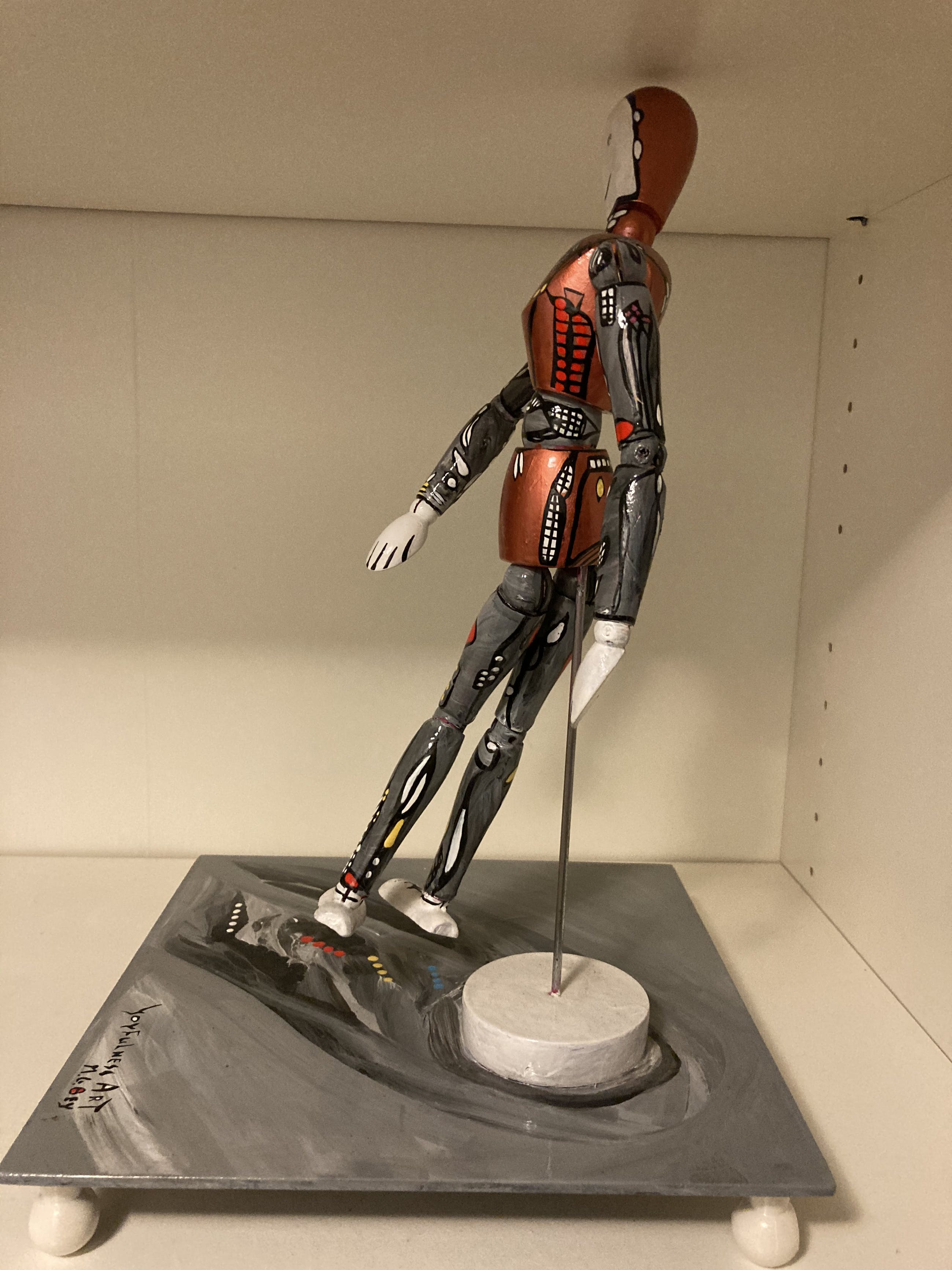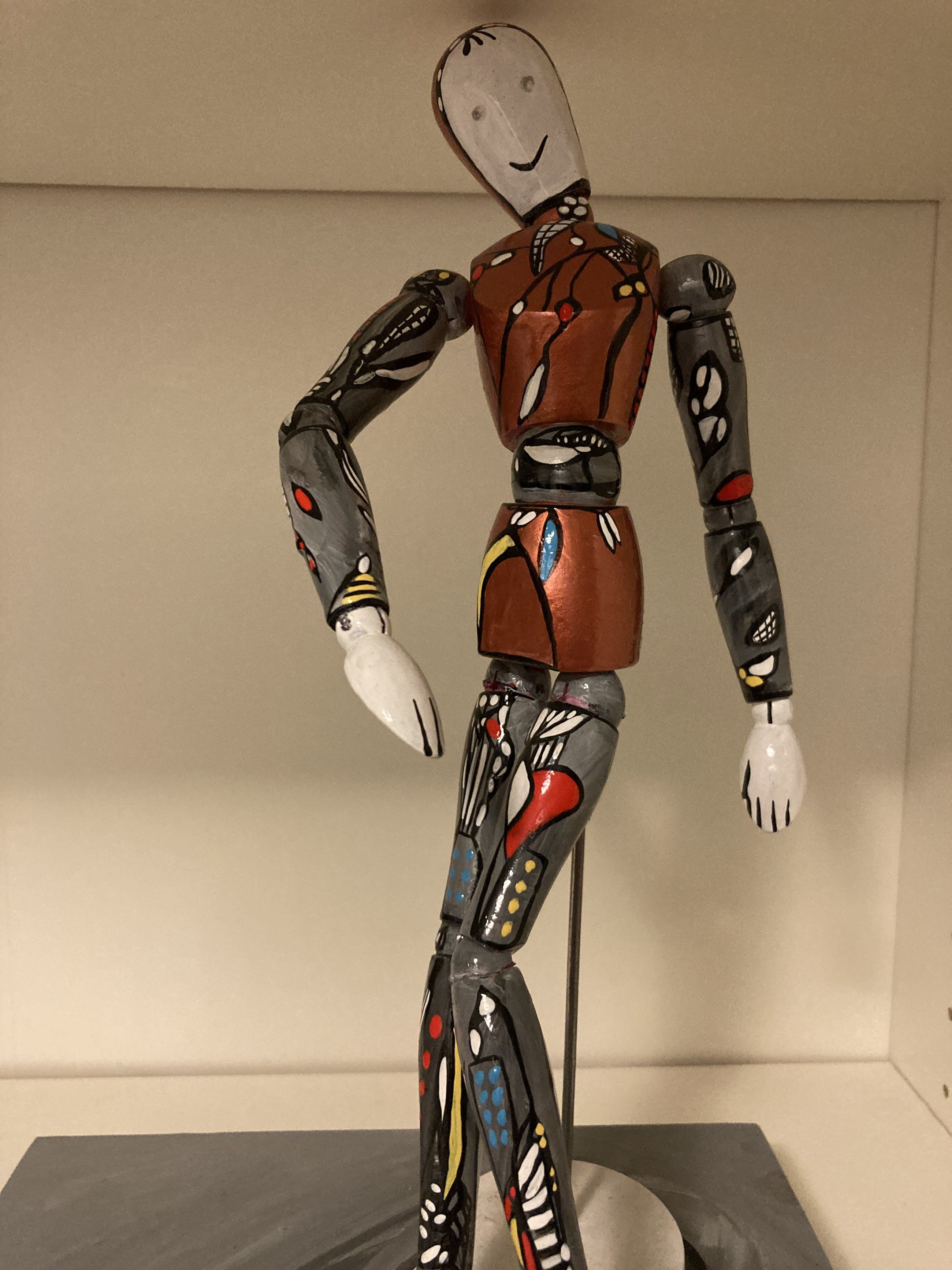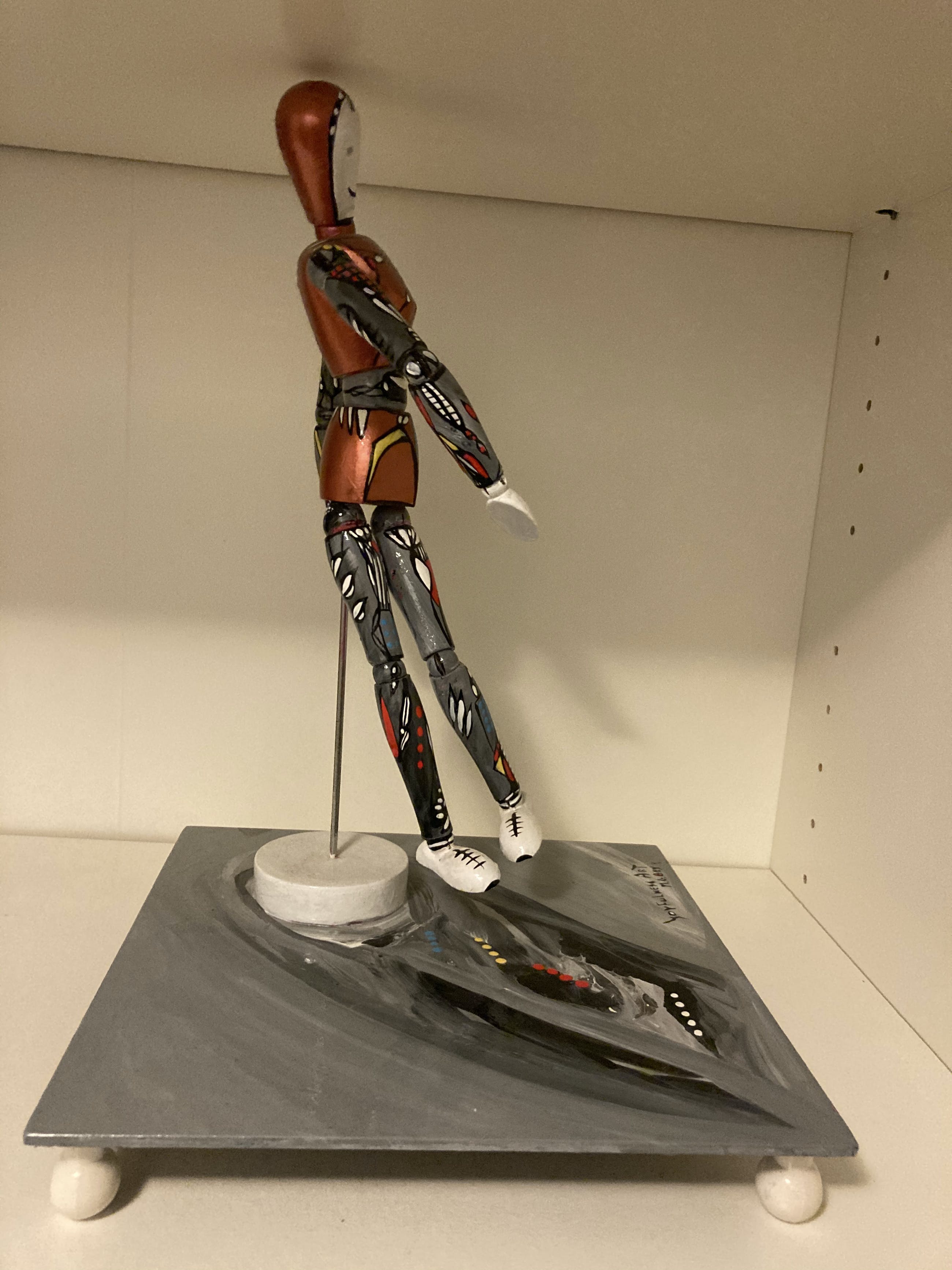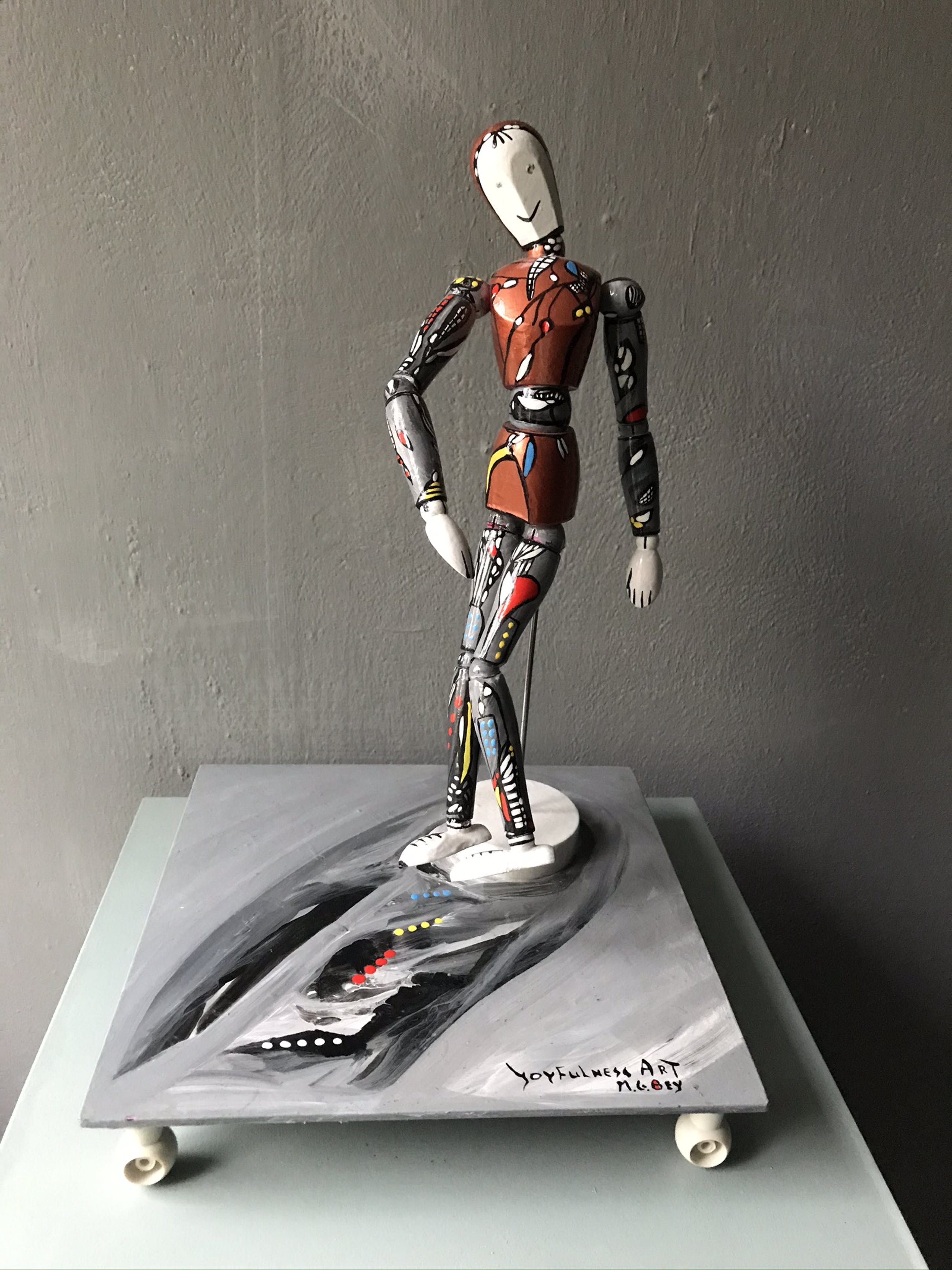 Een uniek massief houten beeld op glazen glasplaat op witte pootjes van Marianne Bey Unica . Met certificaat Alle MijnKunst items worden aangetekend verstuurd .