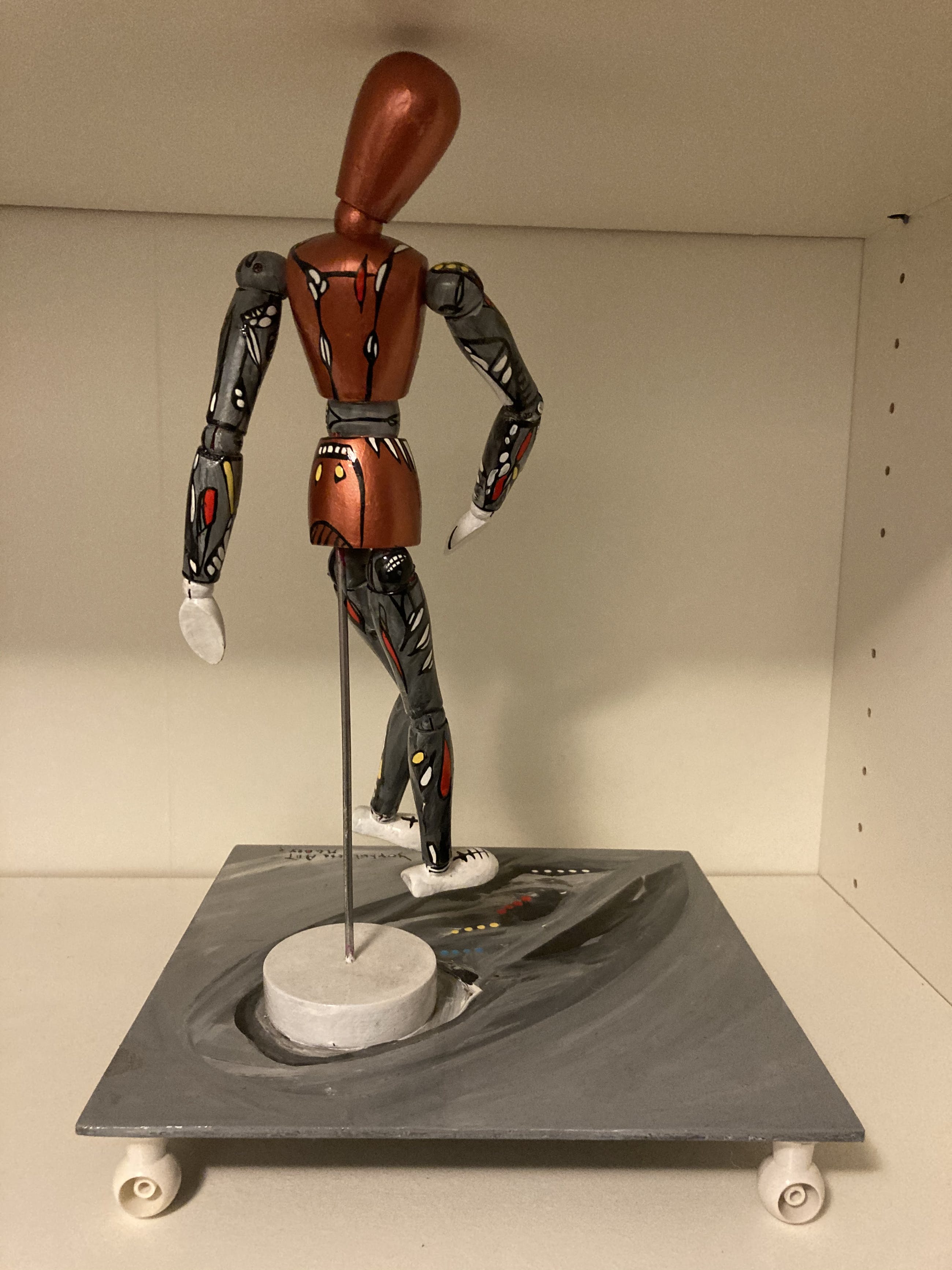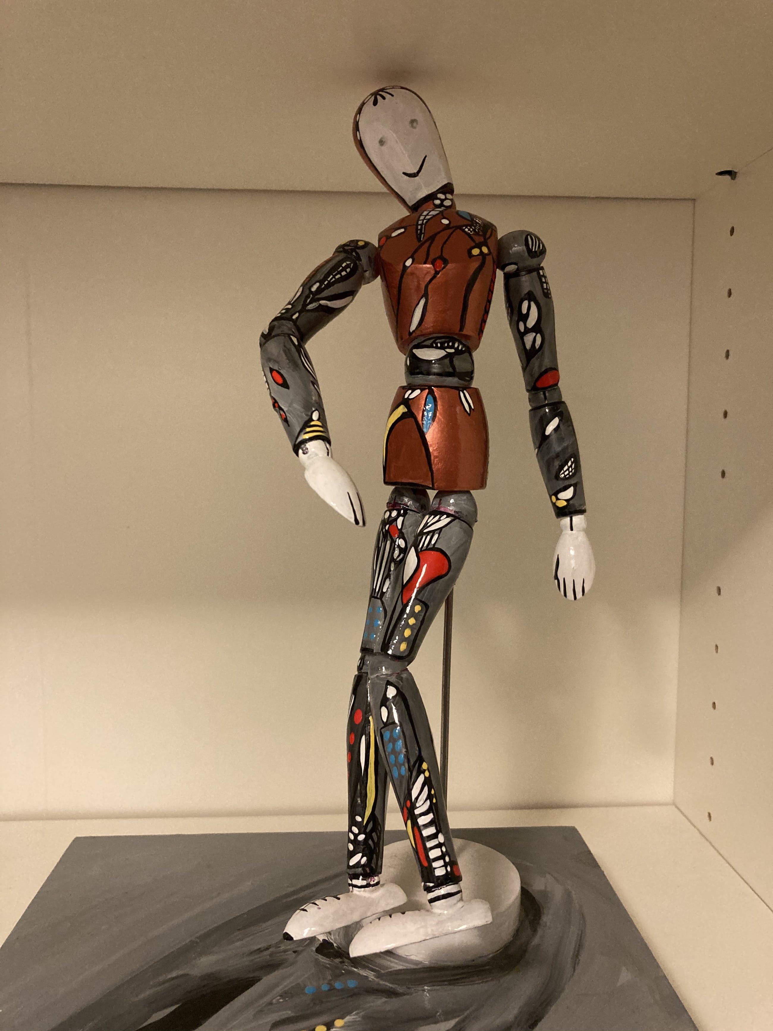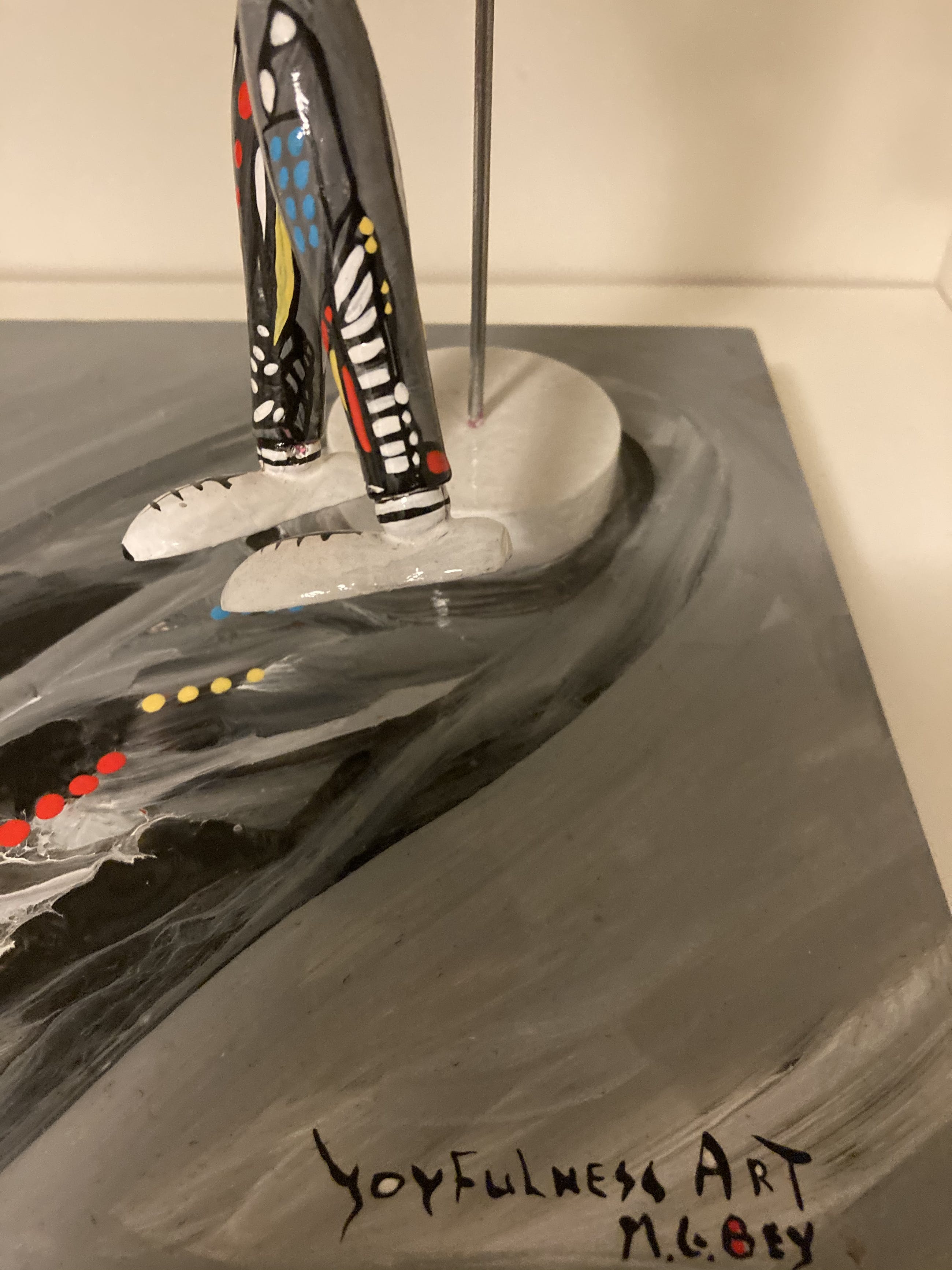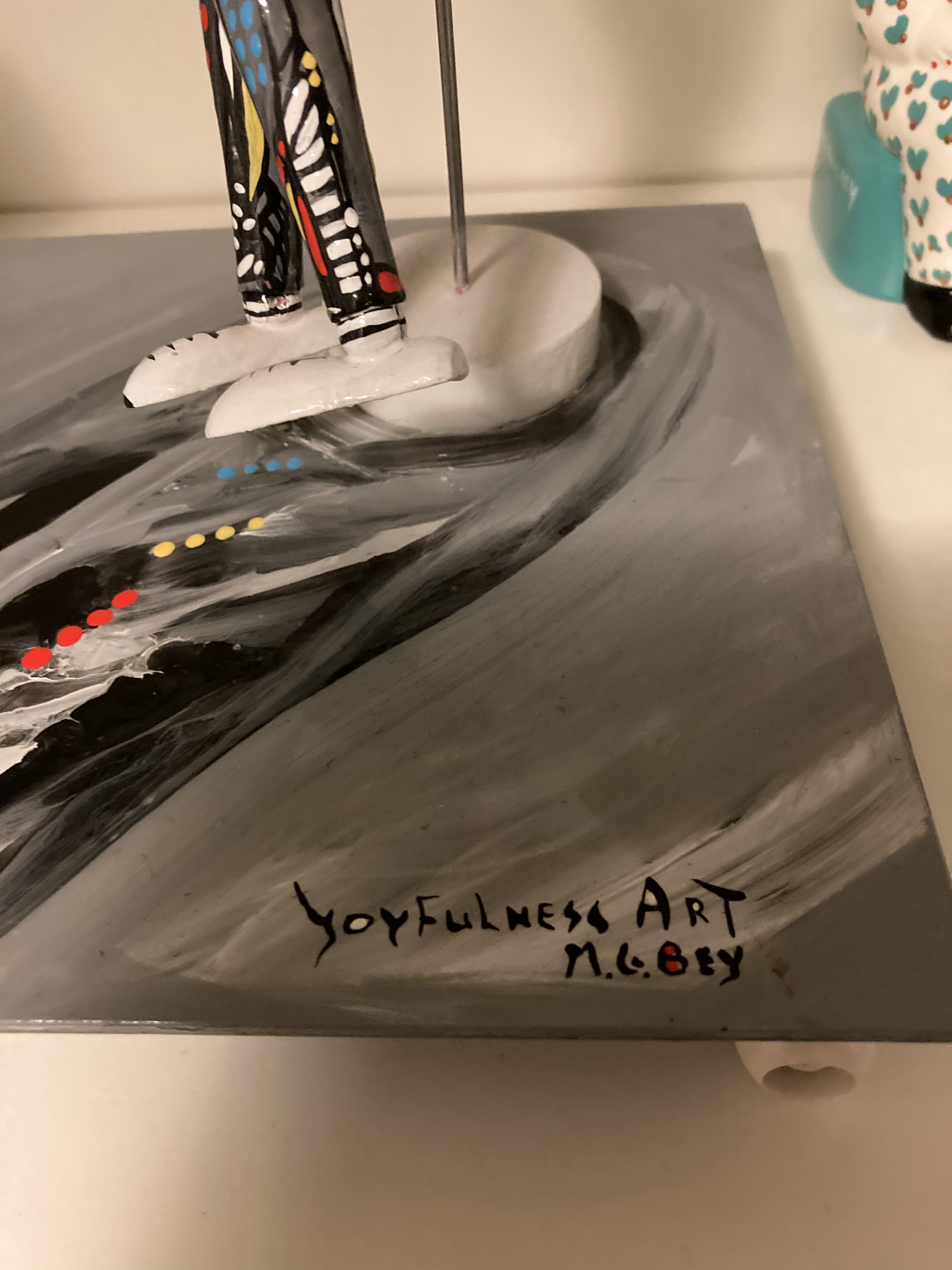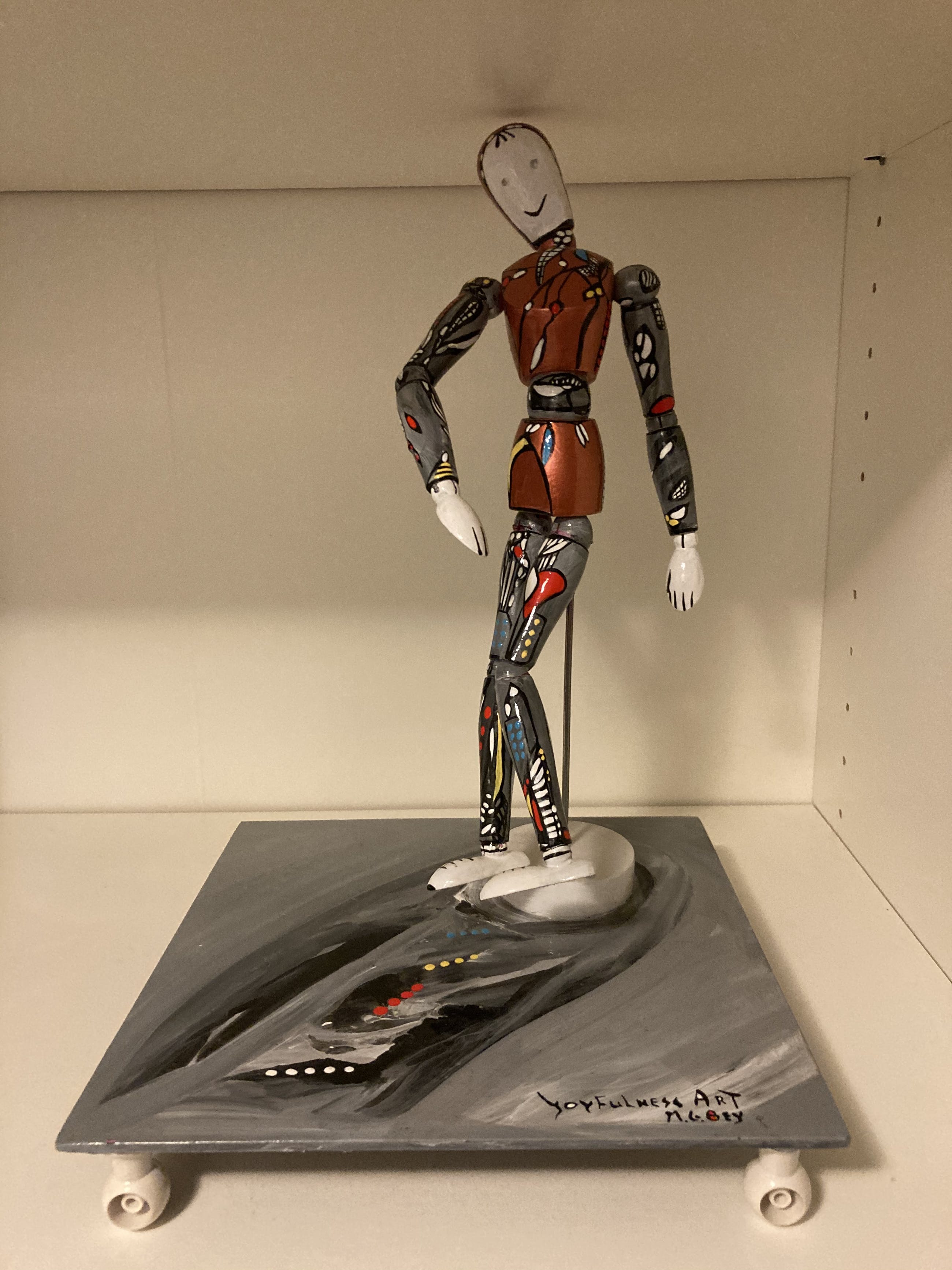 Een uniek massief houten beeld op glazen glasplaat op witte pootjes van Marianne Bey Unica . Met certificaat Alle MijnKunst items worden aangetekend verstuurd .