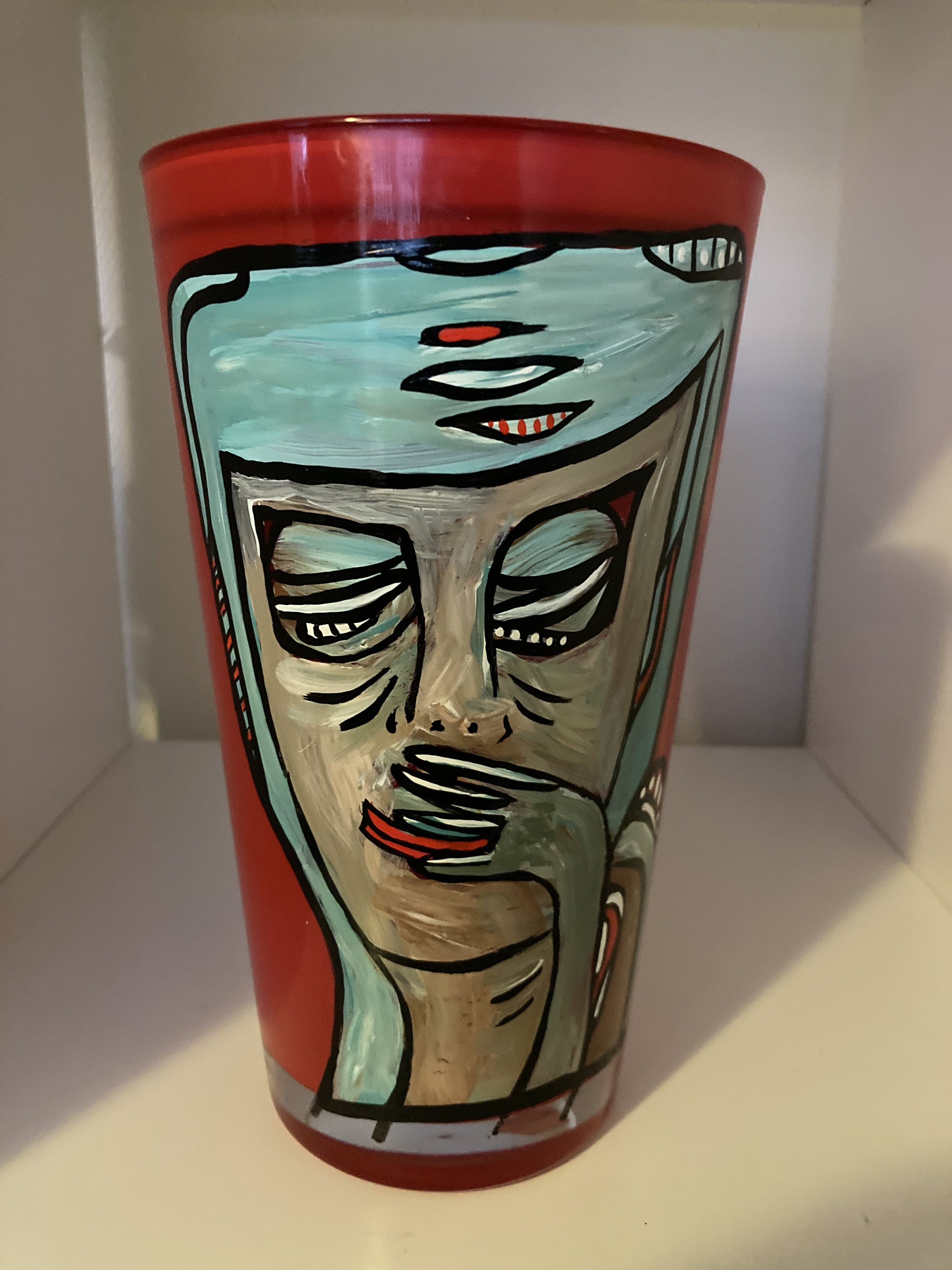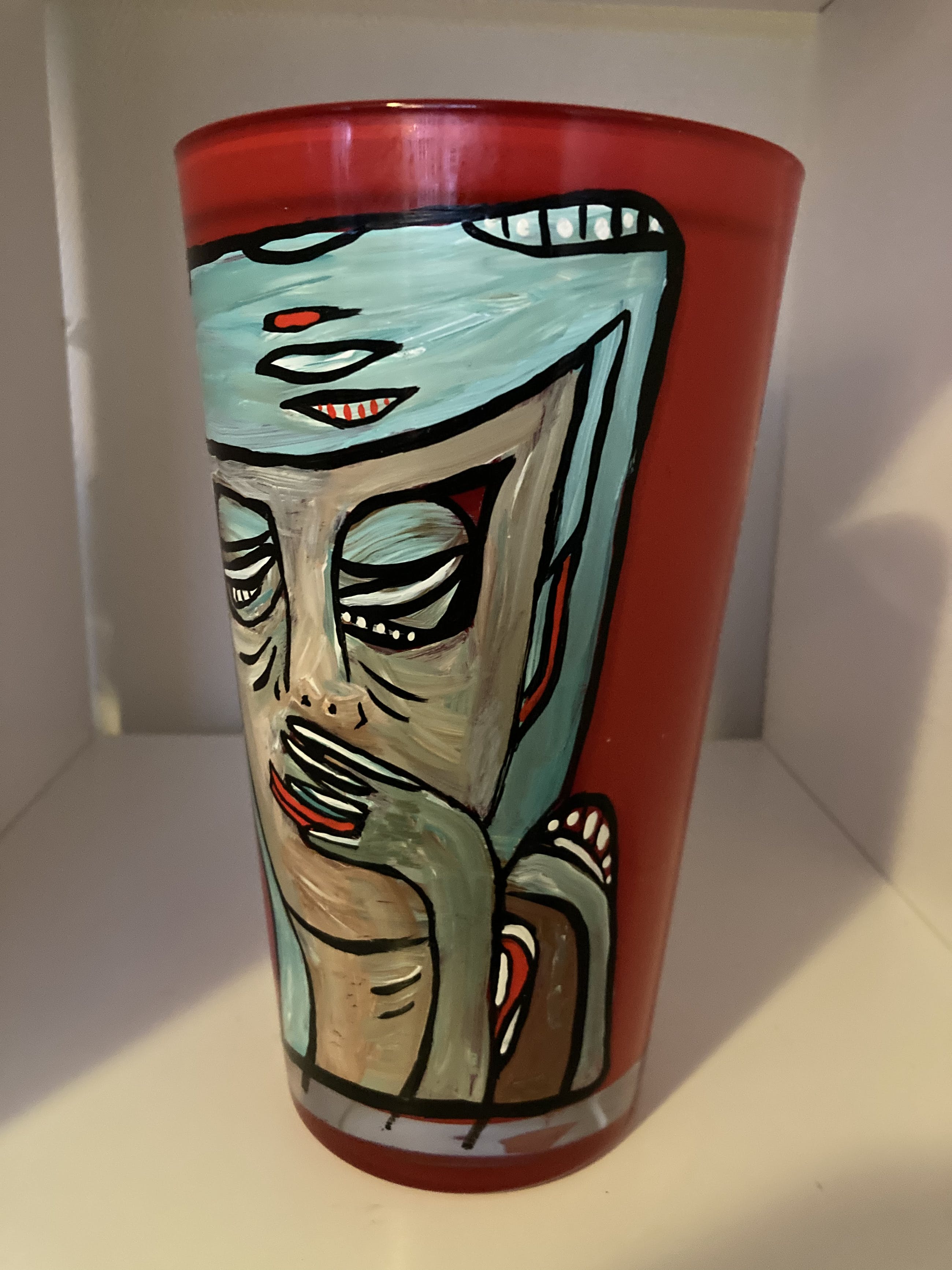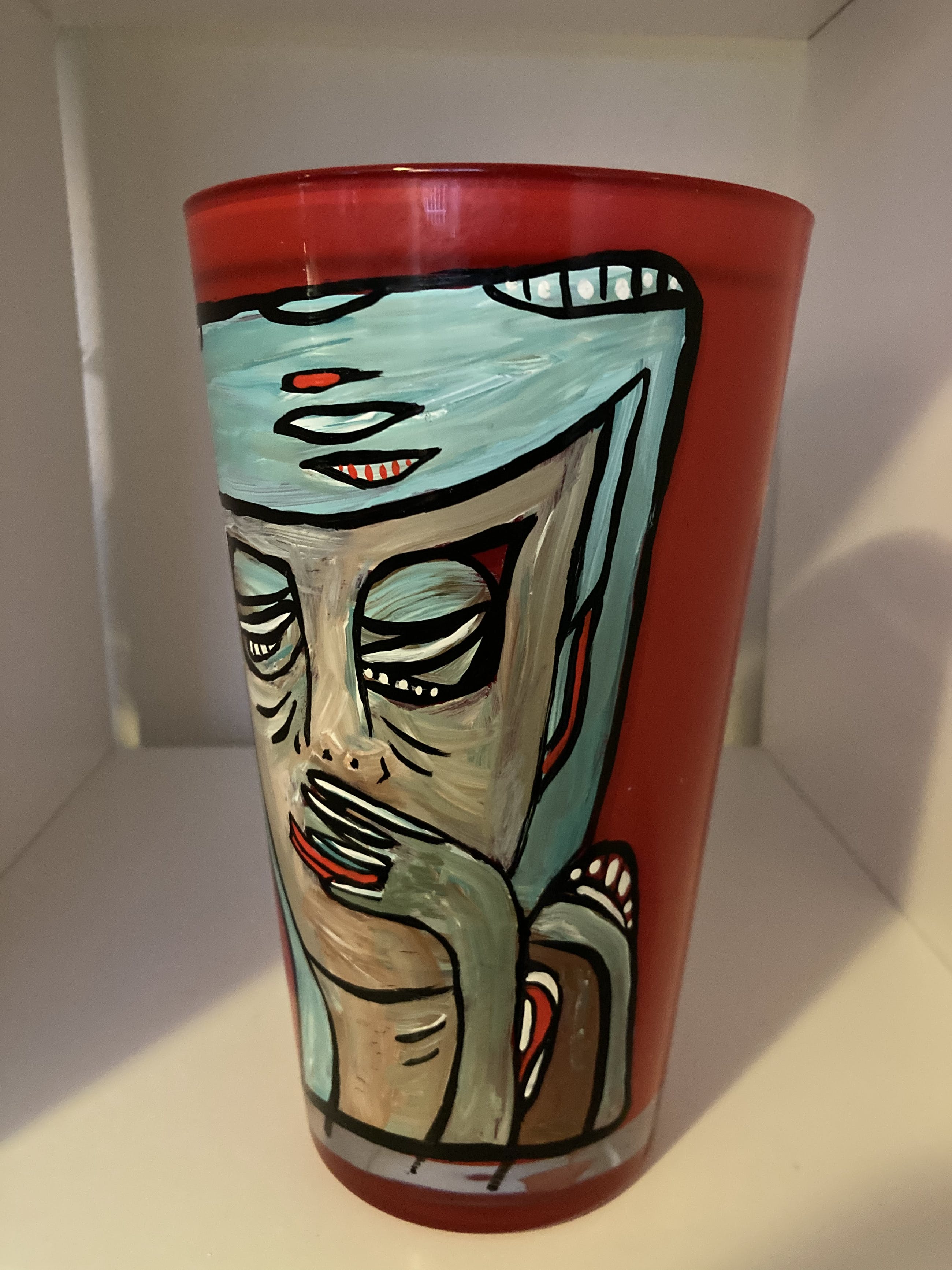 Een bijzonder & unieke vaas / glas / van Marianne Bey Handbeschilderd Daarna gebakken op 145 graden Dus vaatwasbestendig Alle MijnKunst items worden aangetekend verstuurd .