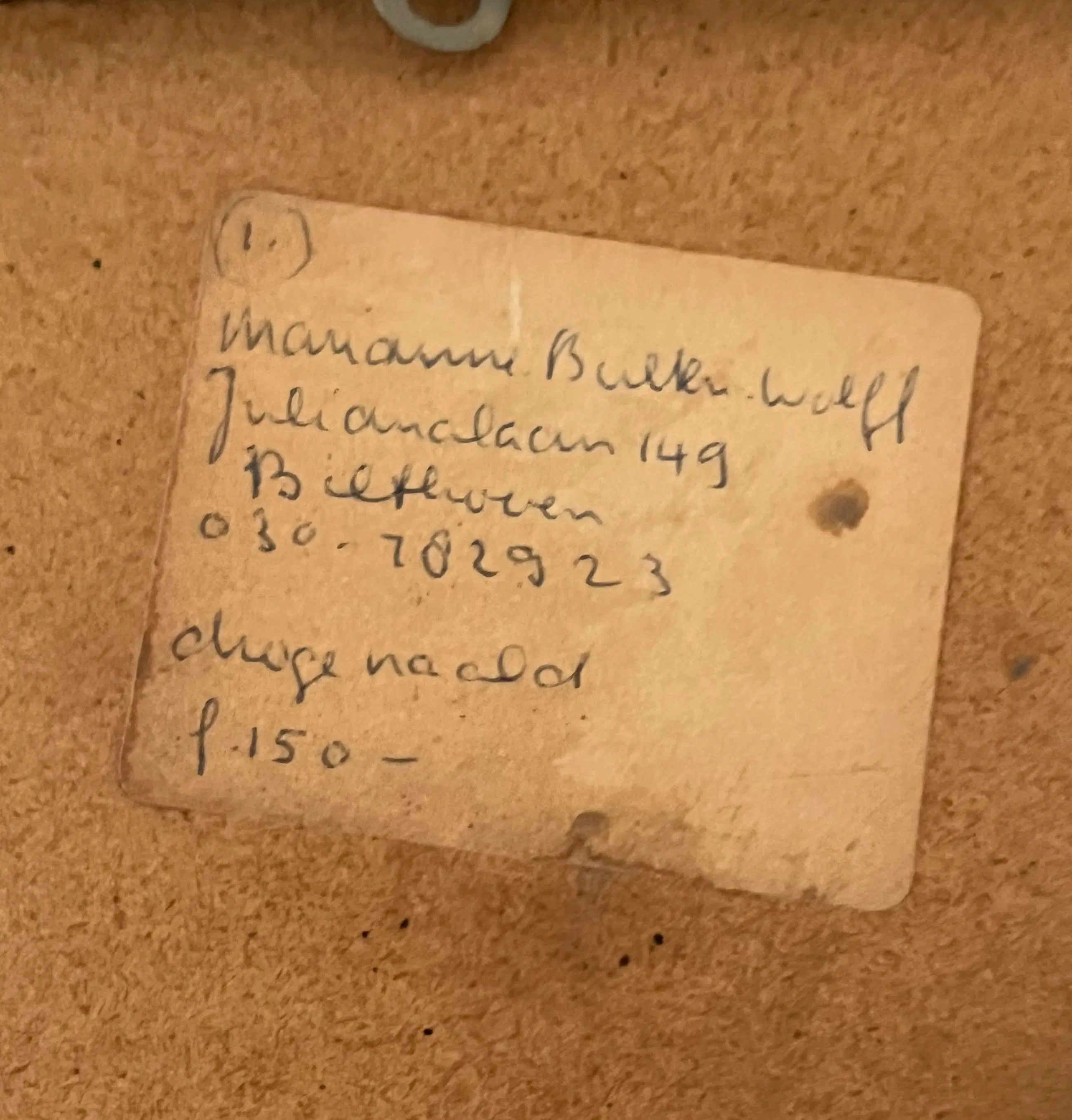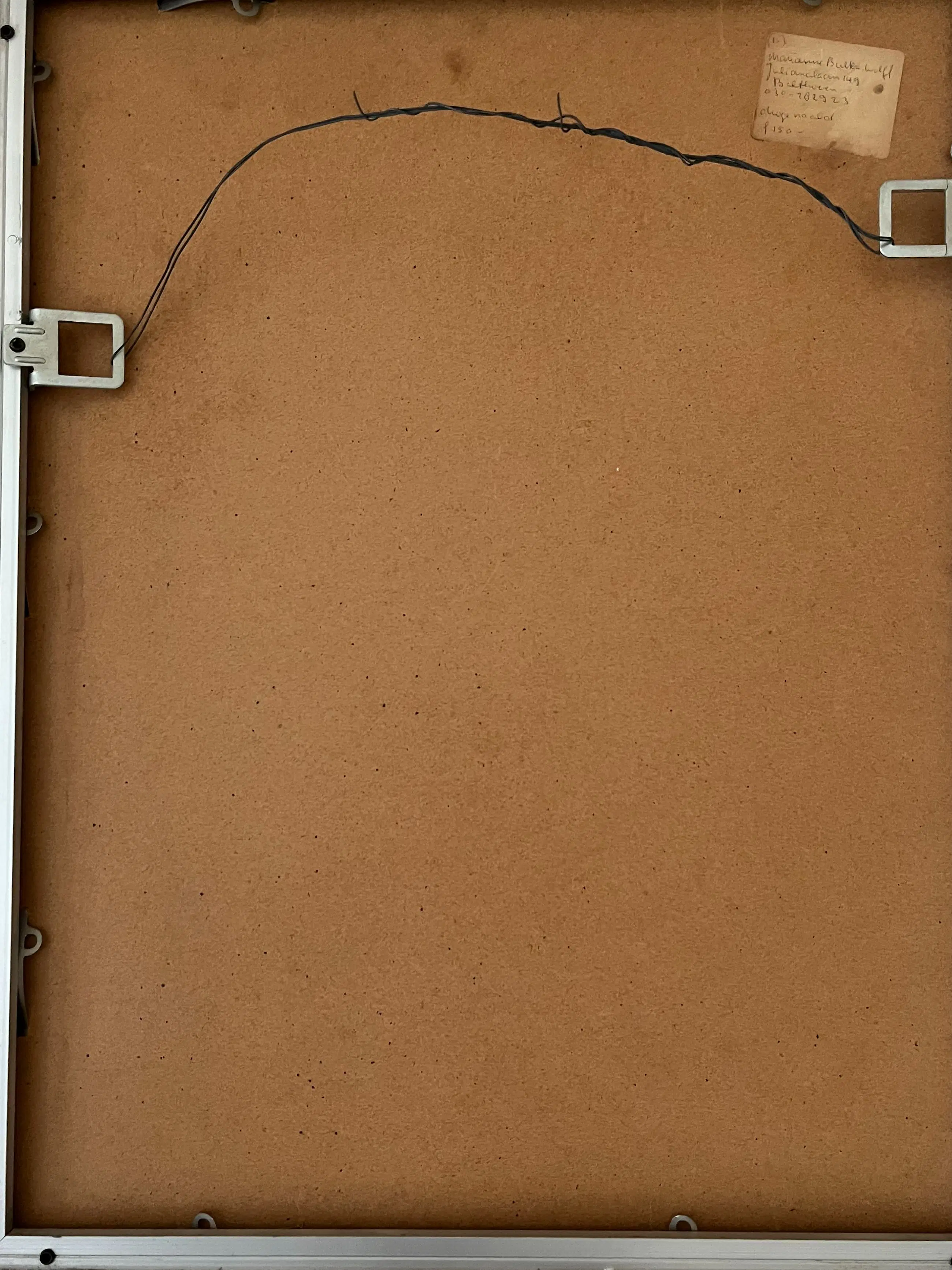 Het werk bevindt zich in de oorspronkelijke professionele lijst. Aan de onderkant zitten op het passe-partout enkele vlekken, maar absoluut niet op het kunstwerk zelf.