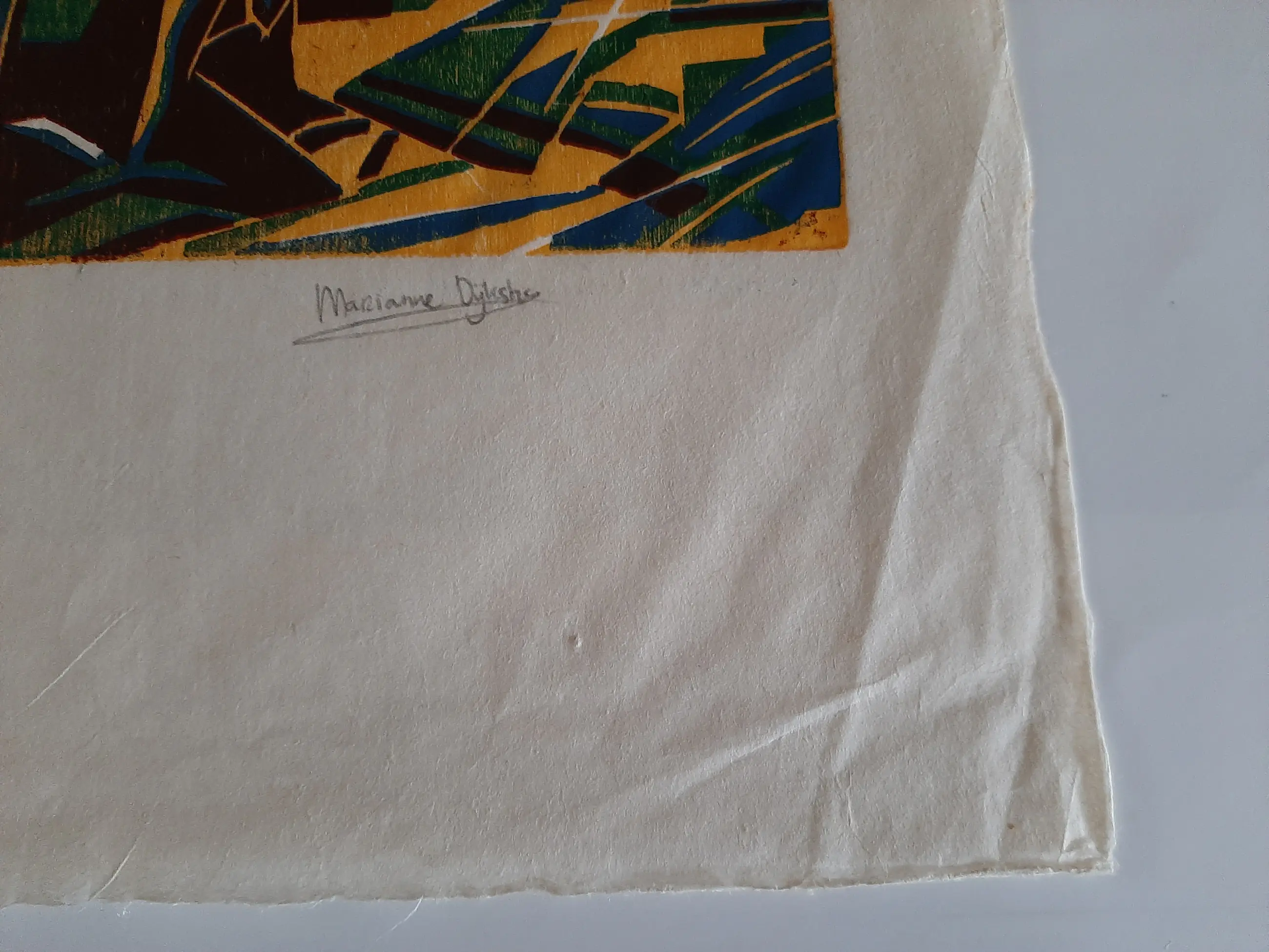 Zitten wat vouwtjes in de witte rand, valt weg bij het inlijsten.
