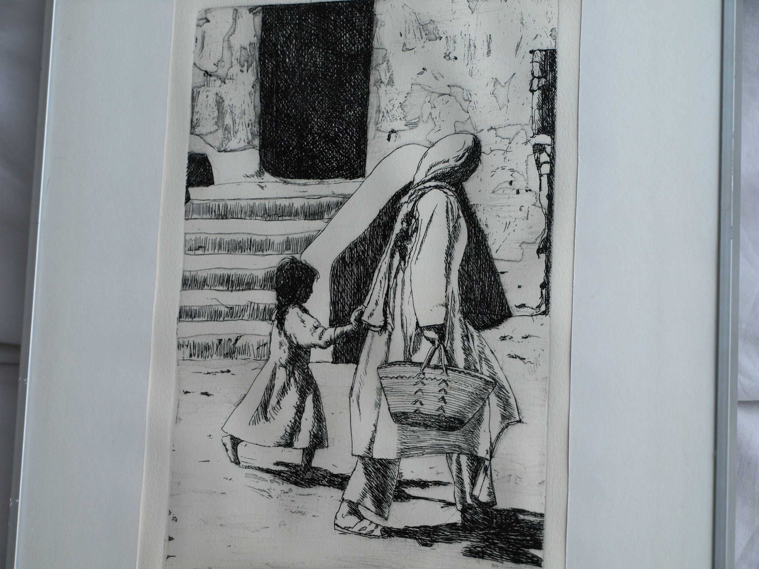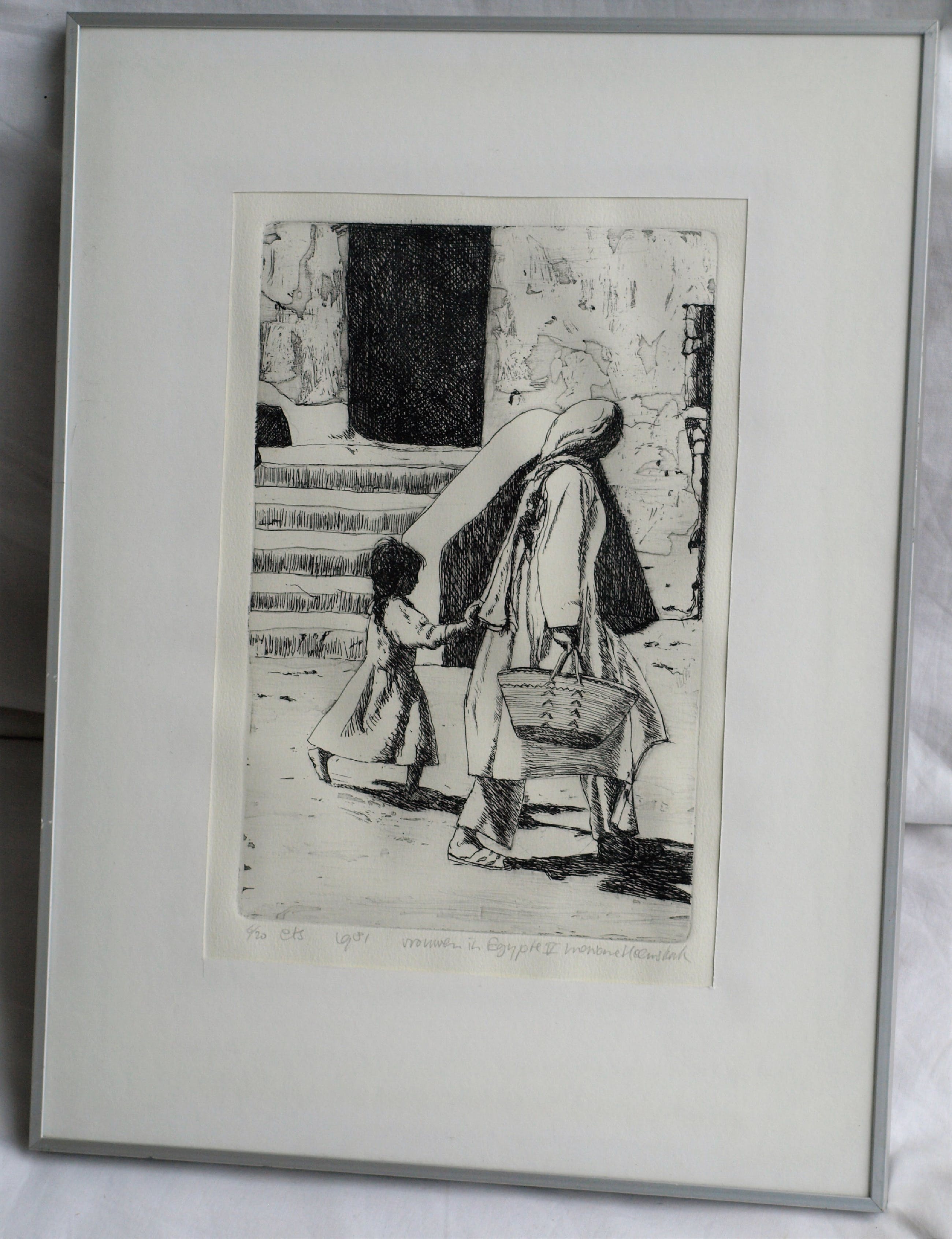 Een ingelijste ets uit 1981 van de Nederlandse kunstenares Marianne Heemskerk (1944).