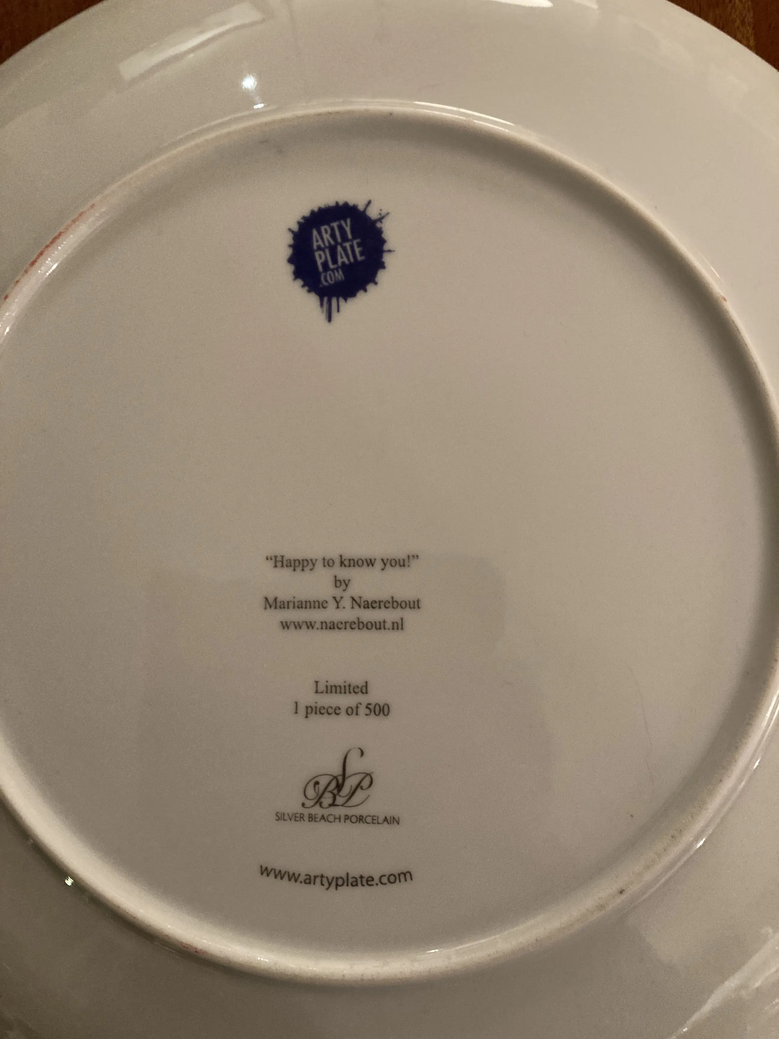 4 Onderzetborden uit de serie 'Taste of Art' Limited pieces 500 Op onderkant borden : "Happy to know you!" by Marianne Y.Naerebout De borden zijn alle 4 gelijk.