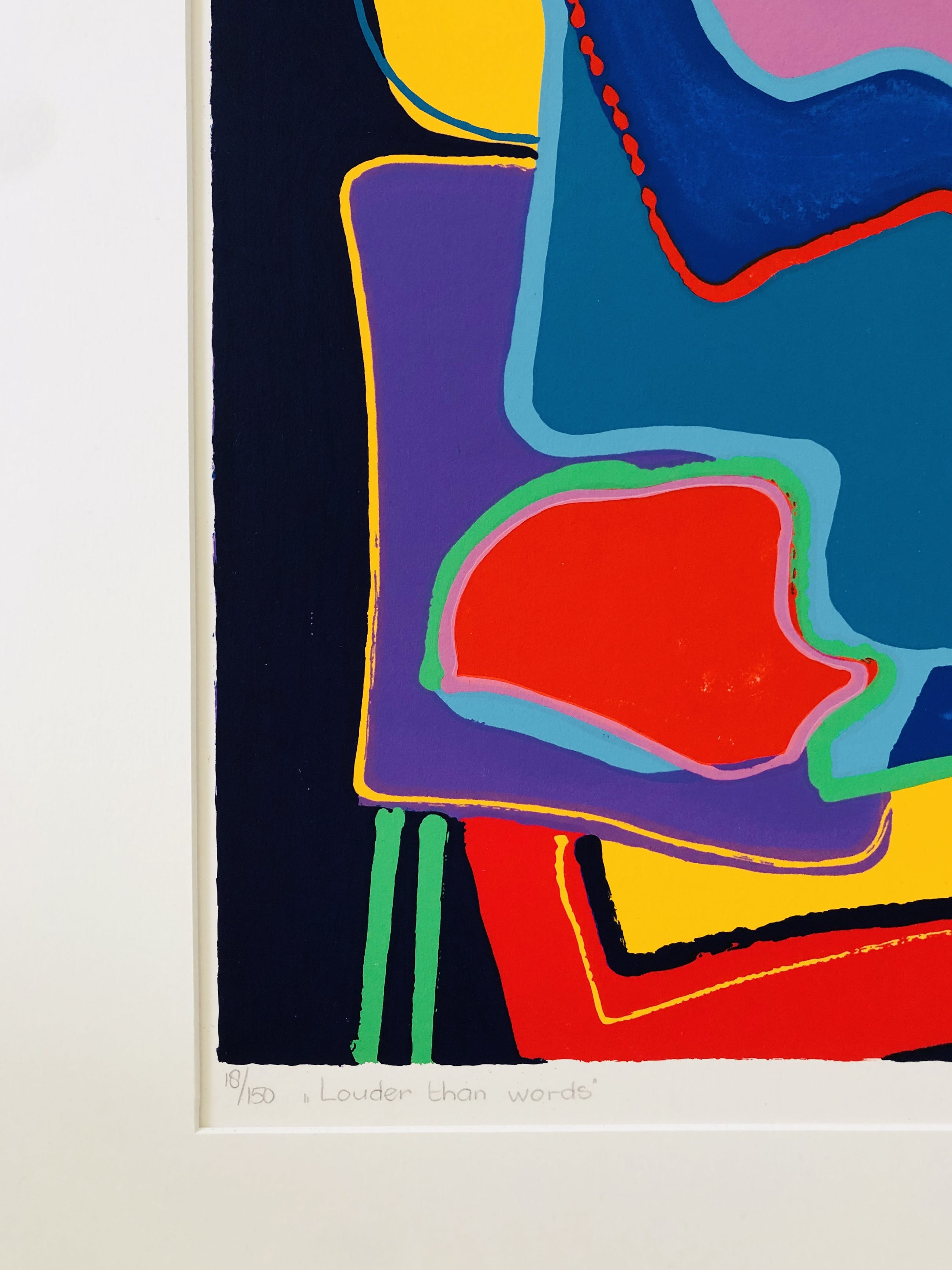 LOUDER THAN WORDS - originele, handgesigneerde zeefdruk van internationale kunstenaar Marianne Naerebout - gedrukt op zwaar, geschept papier - handgenummerd 18 van een gelimiteerde oplage van 150 - geleverd met passe-partout.
