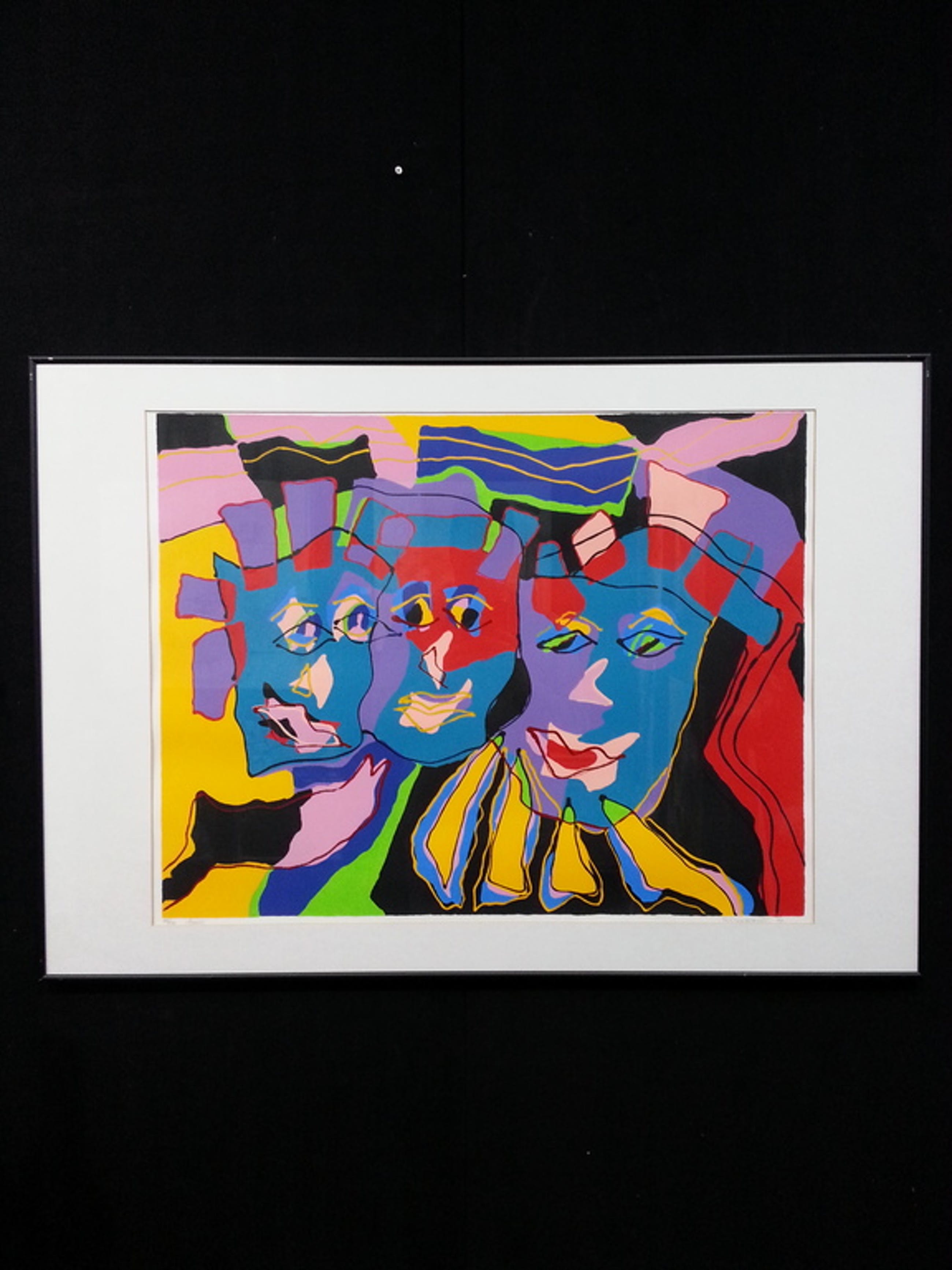 Titel: “ Faces “ Jaartal: 1996 Afmetingen beeld: h.58 cm x b. 75 cm (Lijst: 70 cm x 100 cm) Gesigneerd: Ja met potlood Oplage: 78/150 Ingelijst: Ja Materiaal: Zeefdruk op papier Conditie: Nieuwstaat Ophalen: U kunt het werk ophalen in de galerie Van Bellen Art in Willemstad of Brielle.