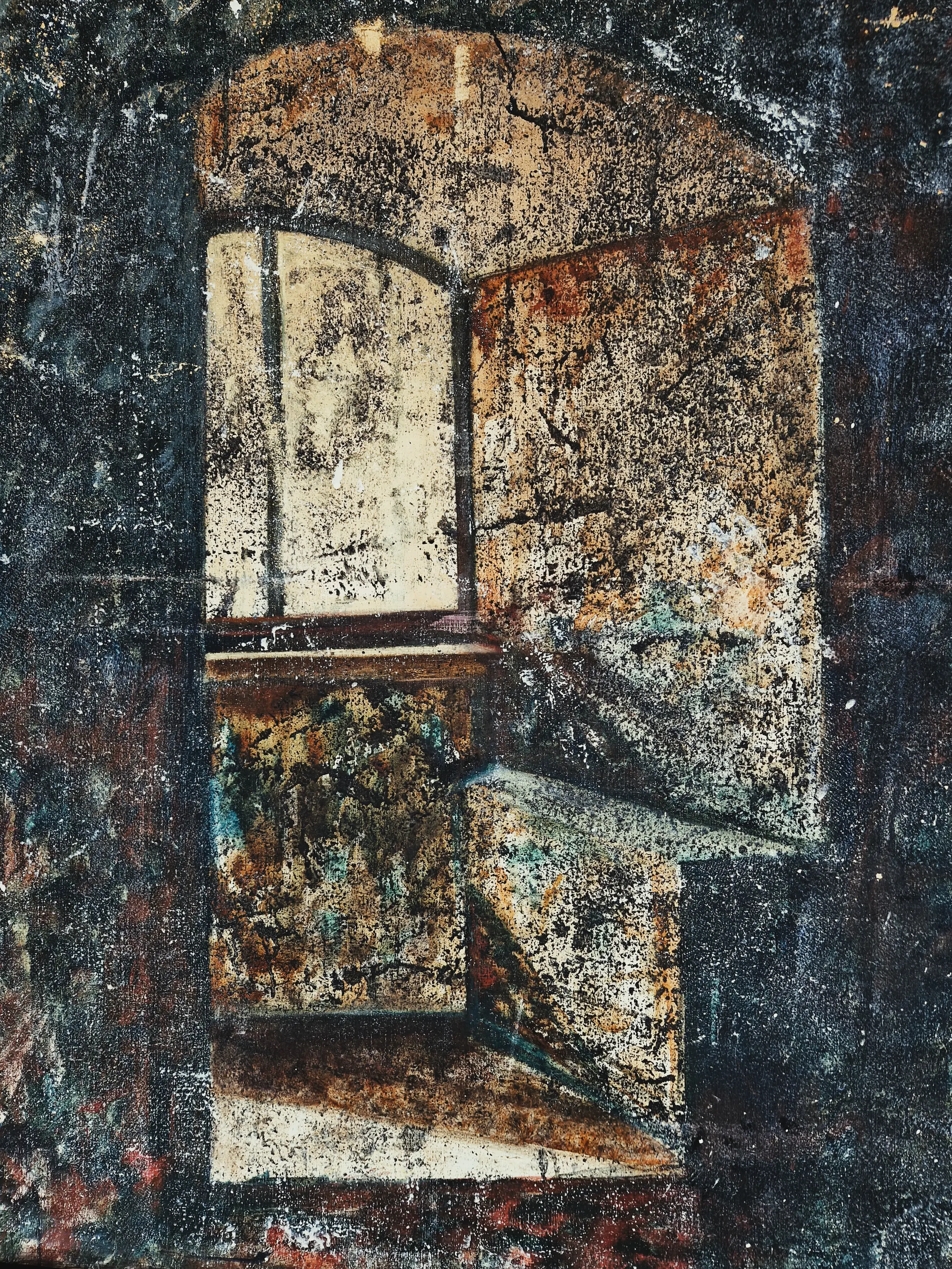 Her paintings show the columns of a portal, or the faint memory of the mysterious darkness of an open door.