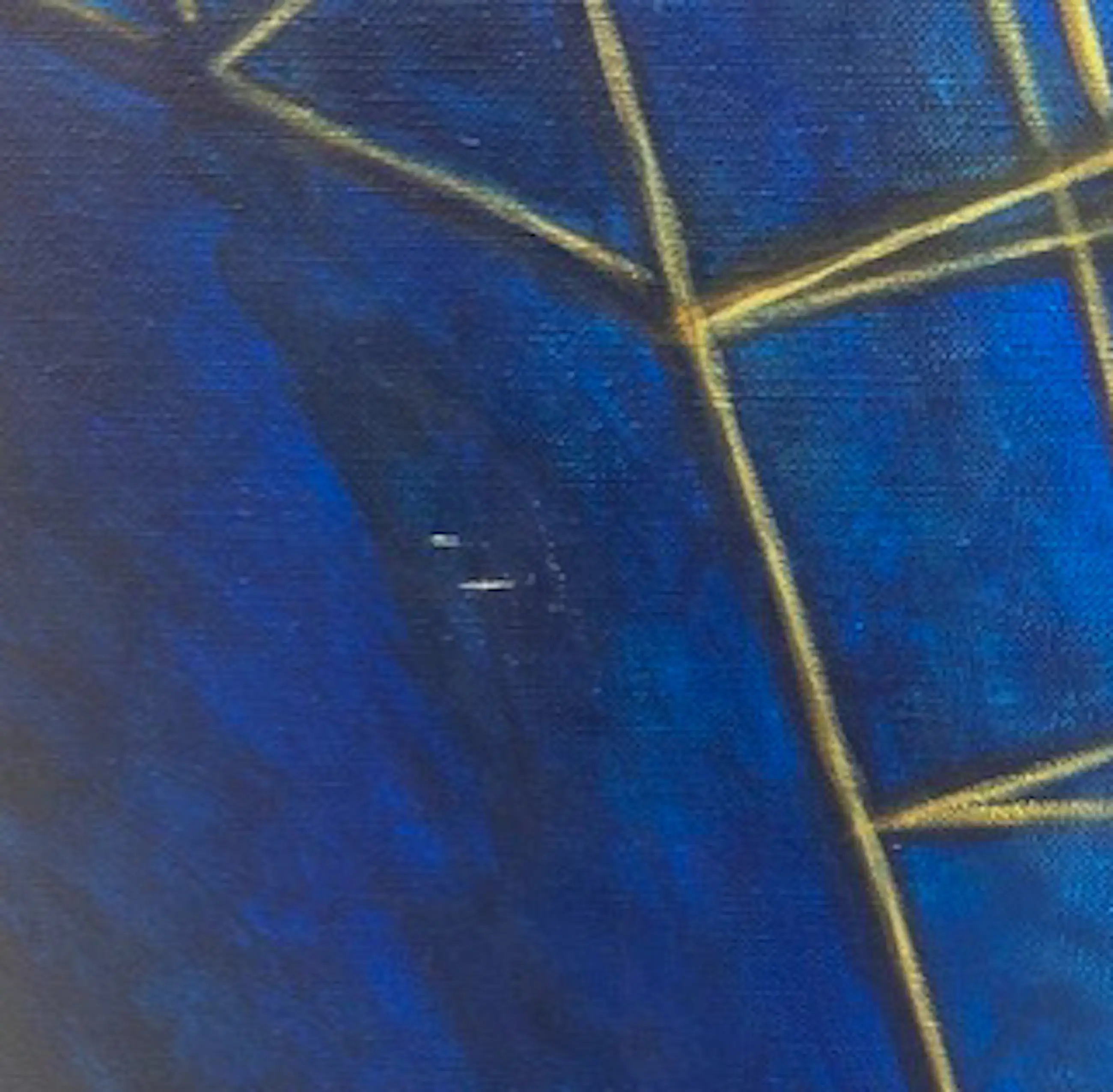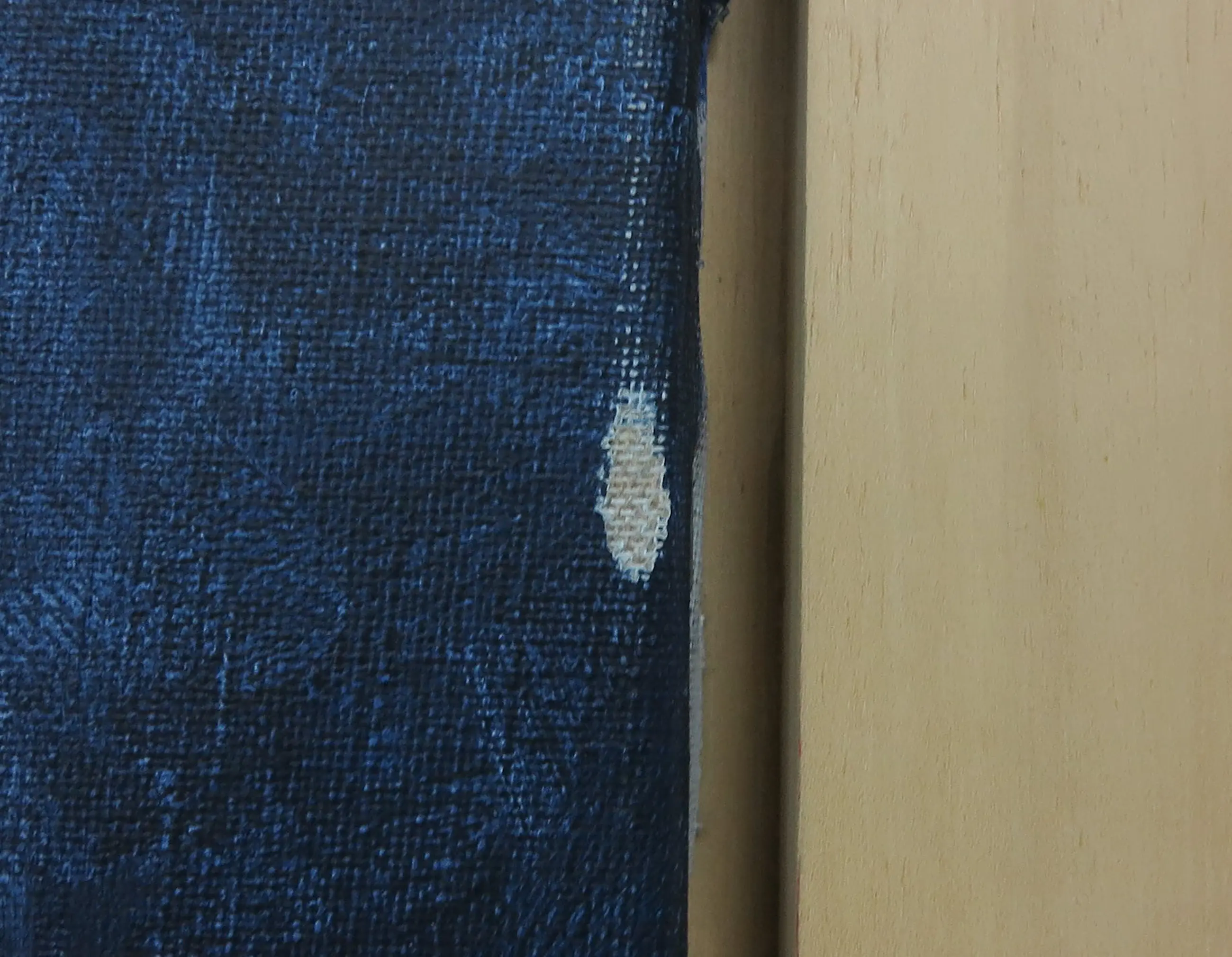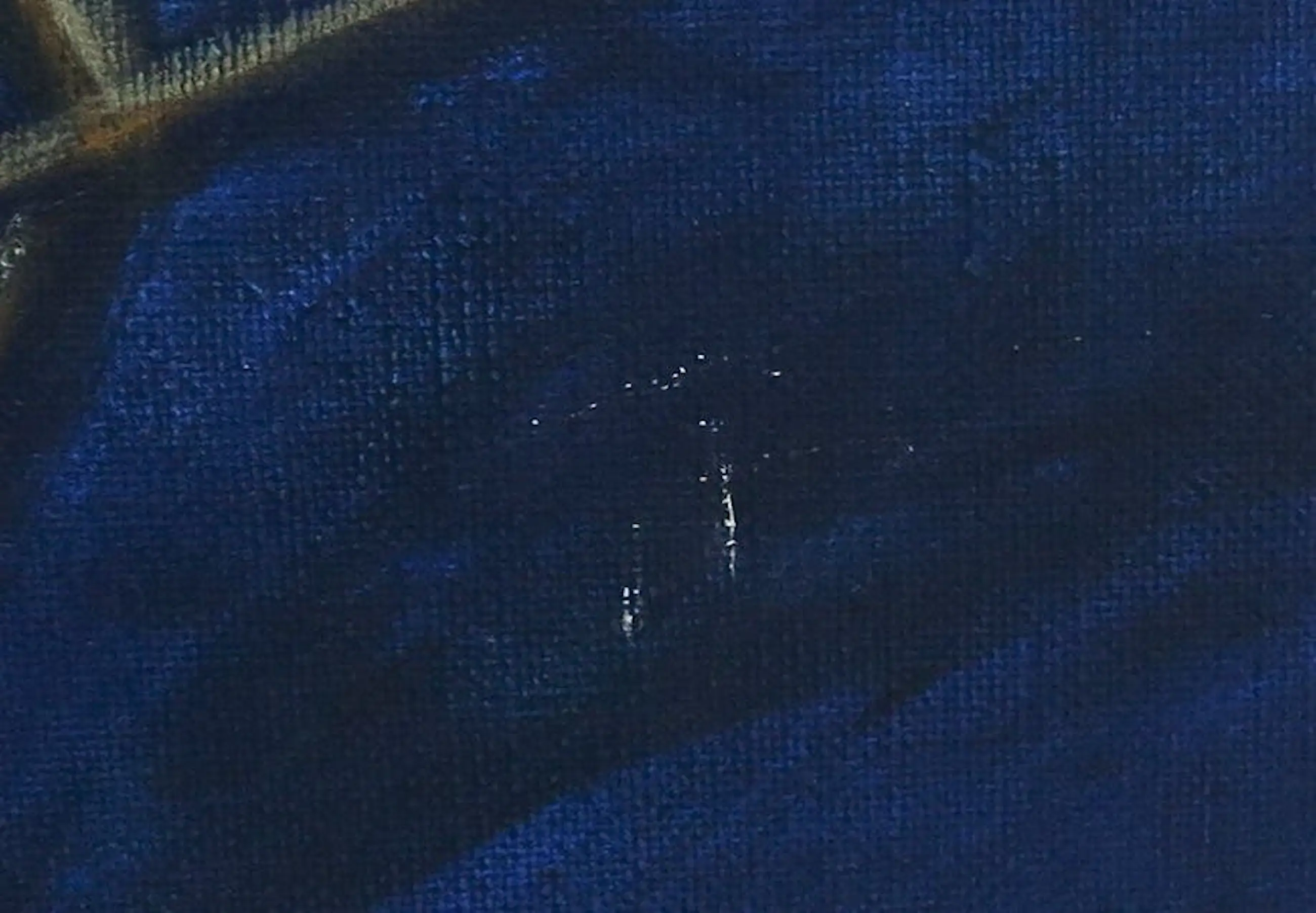 | Er is op enkele plekken wat oppervlakteschade zichtbaar, met name langs de randen van het doek. (zie detailfoto's) | |