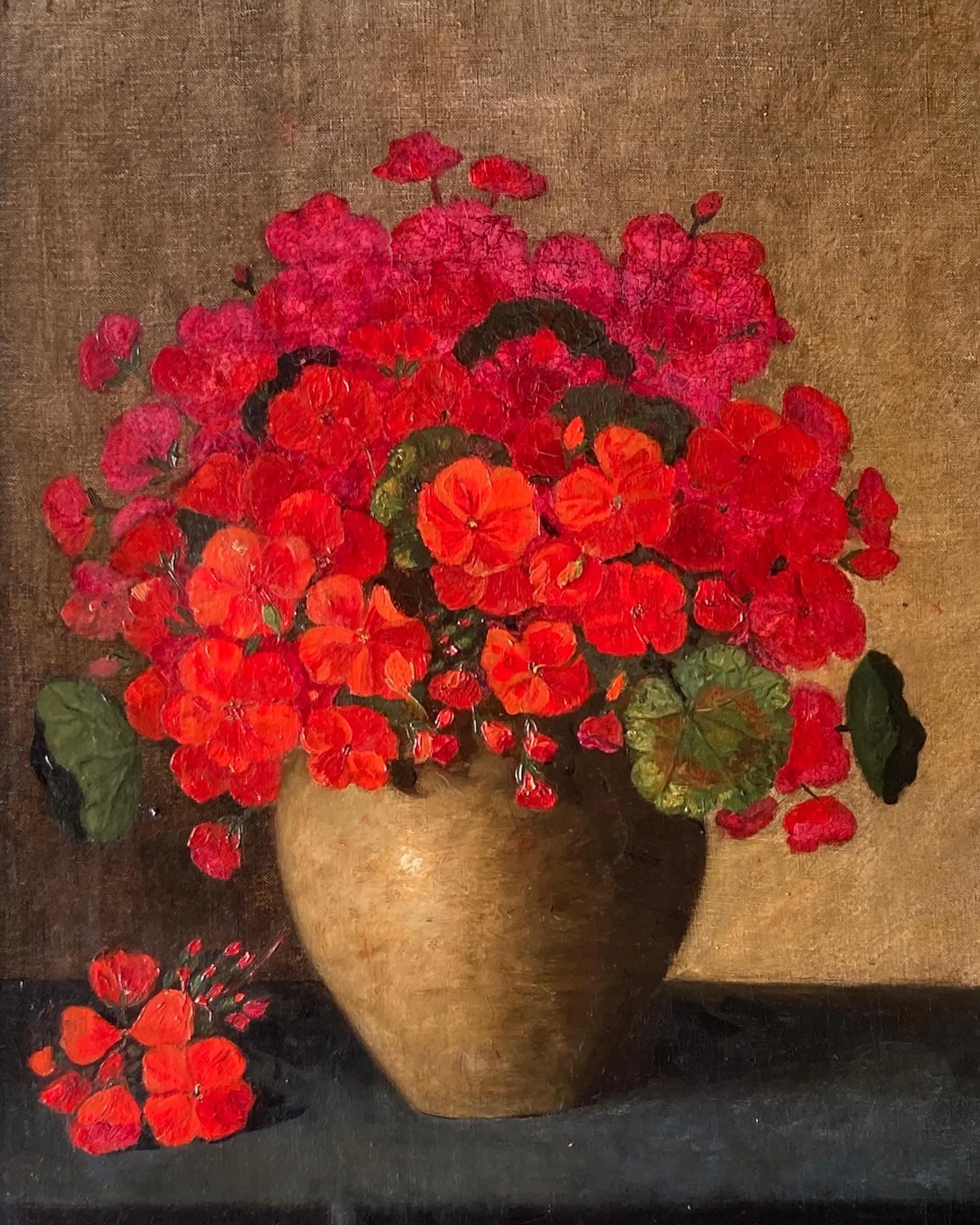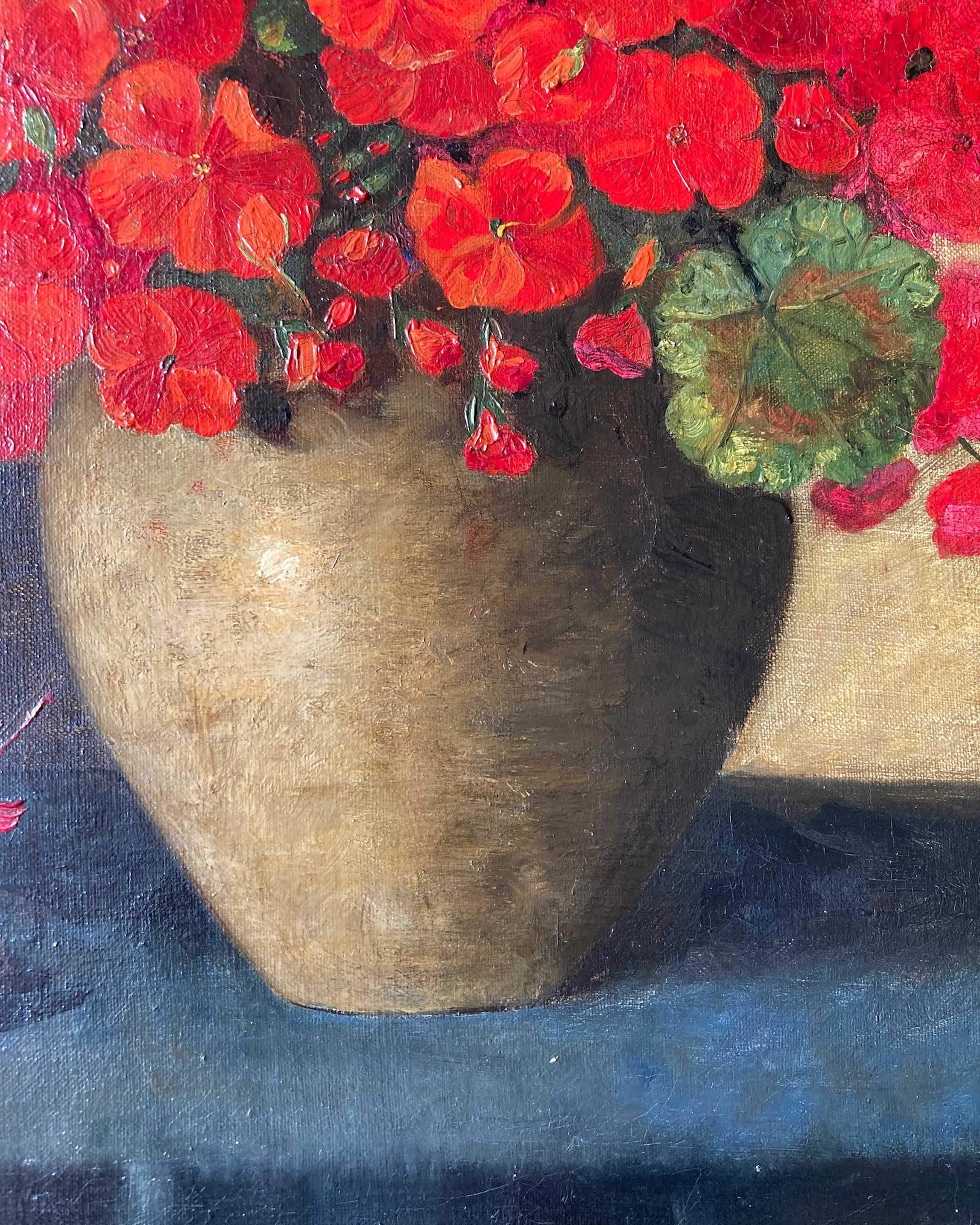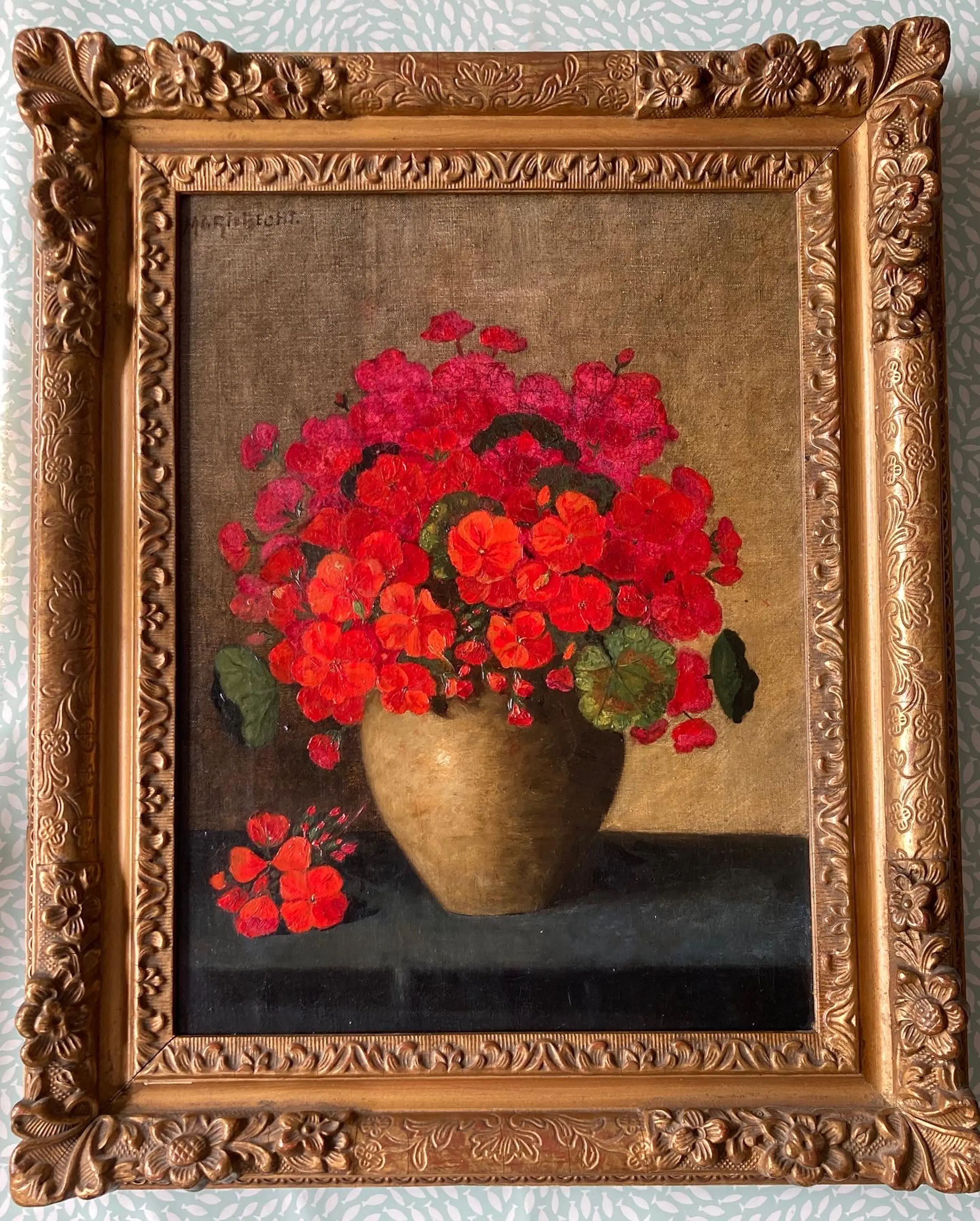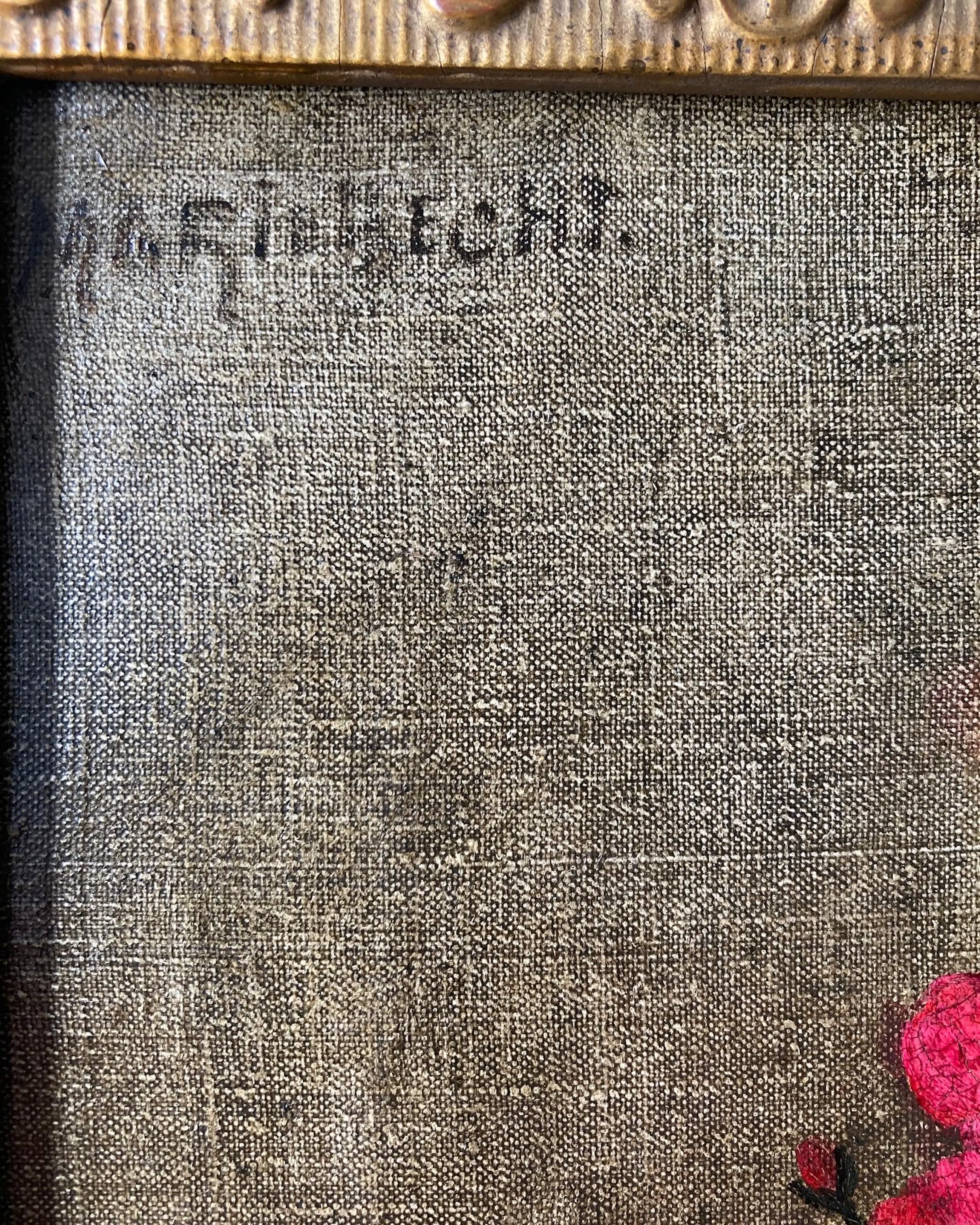 olieverf op doek en prachtig originele lijst . Woonde en werkte in Den Haag en Voorburg, onderwerpen bloemstilleven, vruchtenstilleven en portret.