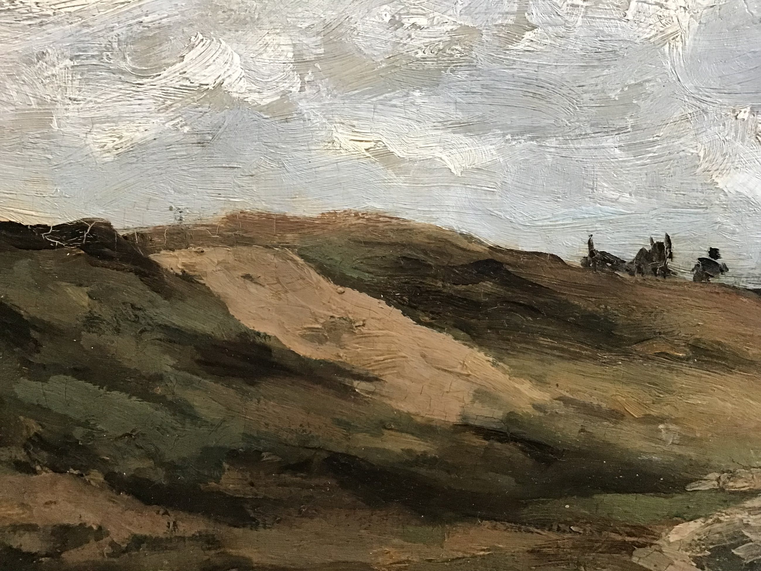 | Marouflé, papier op paneel. Was niet helemaal goed verlijmd, is gerestaureerd. | |||||||||||