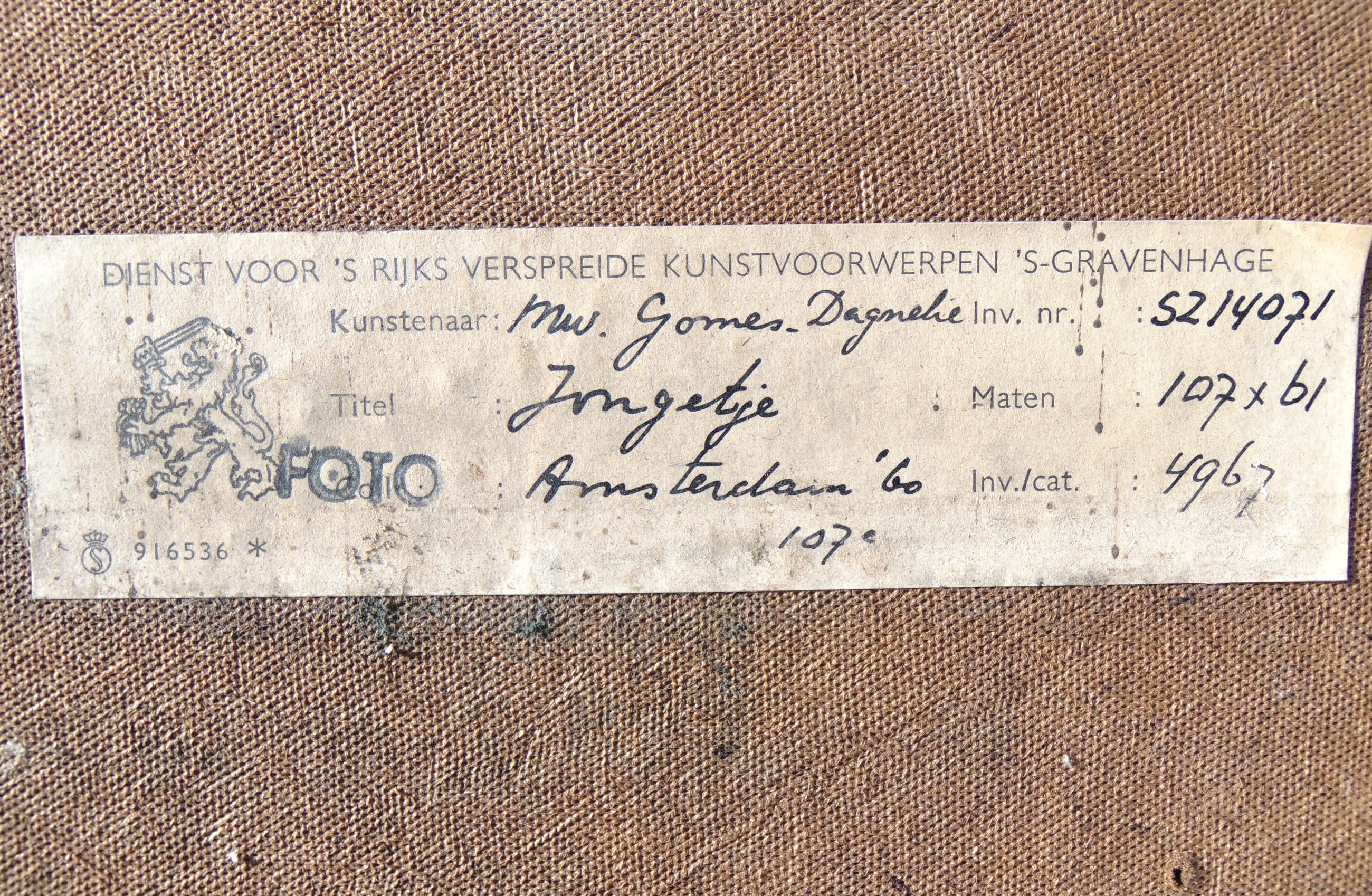 Dit werk is rechtsonder gesigneerd. Het werk is niet ingelijst.