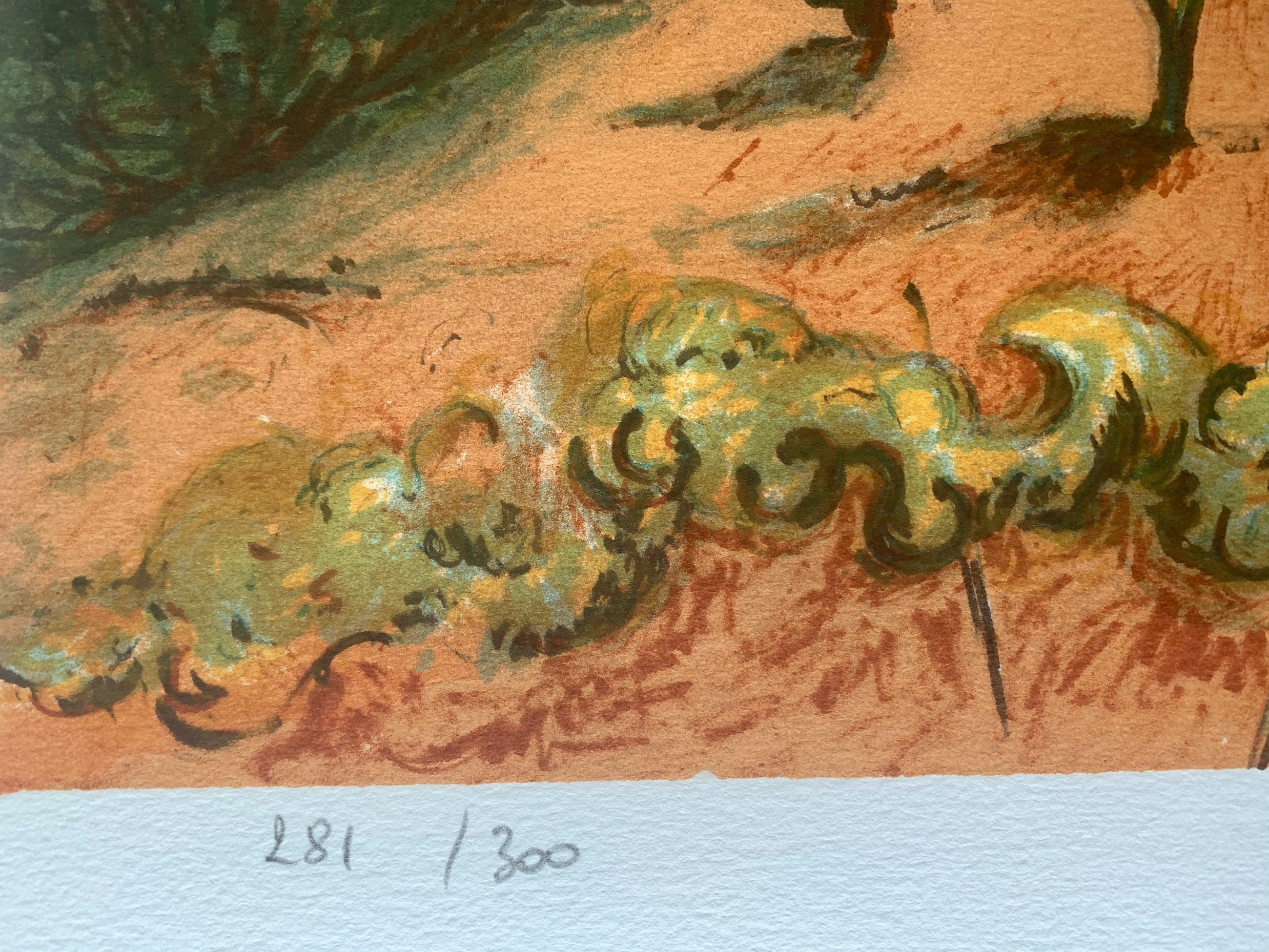 Conditie: uitstekend. Editie: 300 ex. Nummer 281. Nummers op de foto kunnen afwijken. Papiersoort: Arches. Afmetingen: Afbeelding: 45 x 64 cm. Wordt verzekerd verzonden in een stevige kartonnen koker. Gecombineerde zending mogelijk t/m 4 lithografieën.