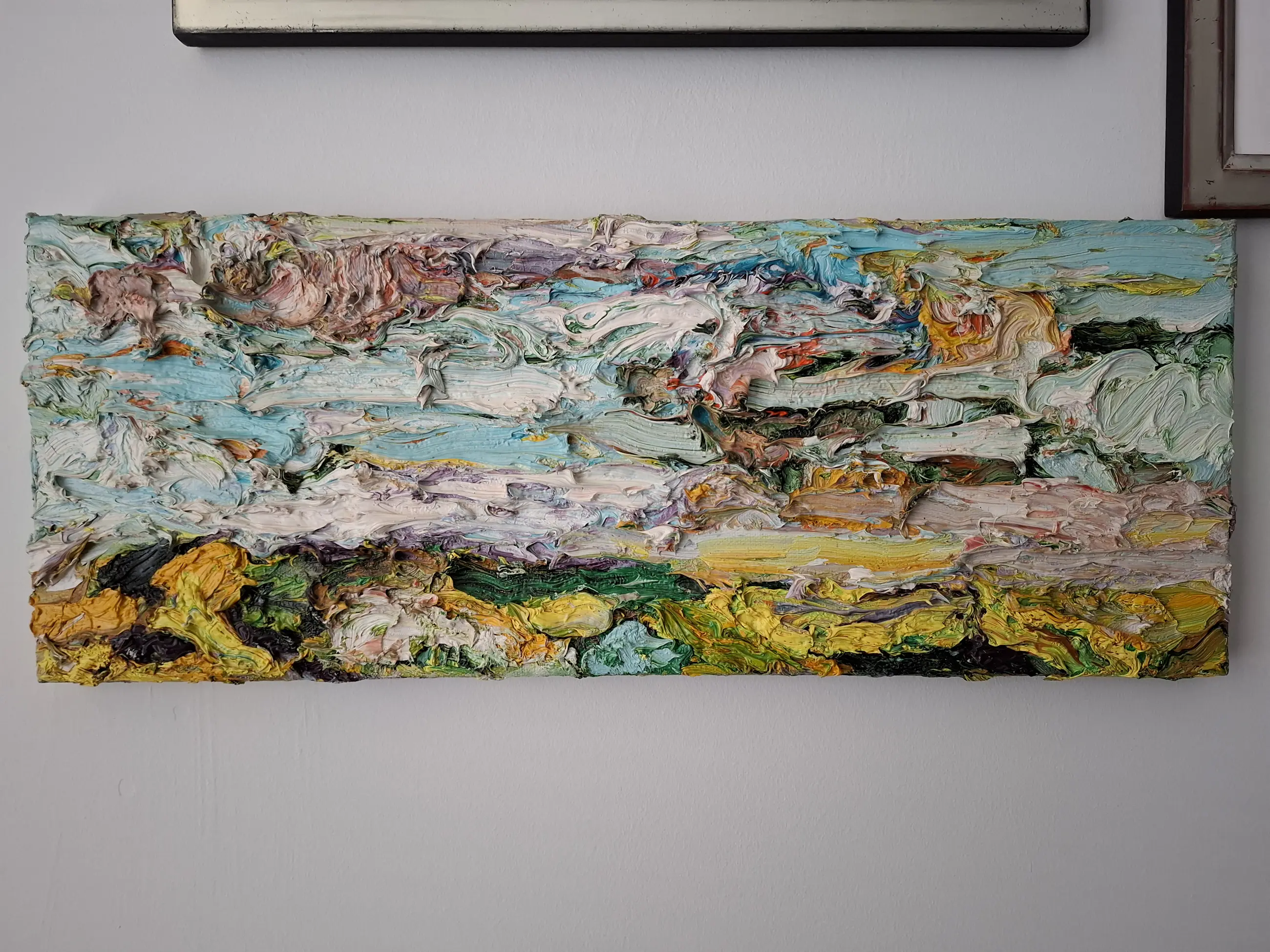 Marie José Robben (1959) 'Longitudinaal III' olieverf op doek 25 x 66 cm gesigneerd in verso