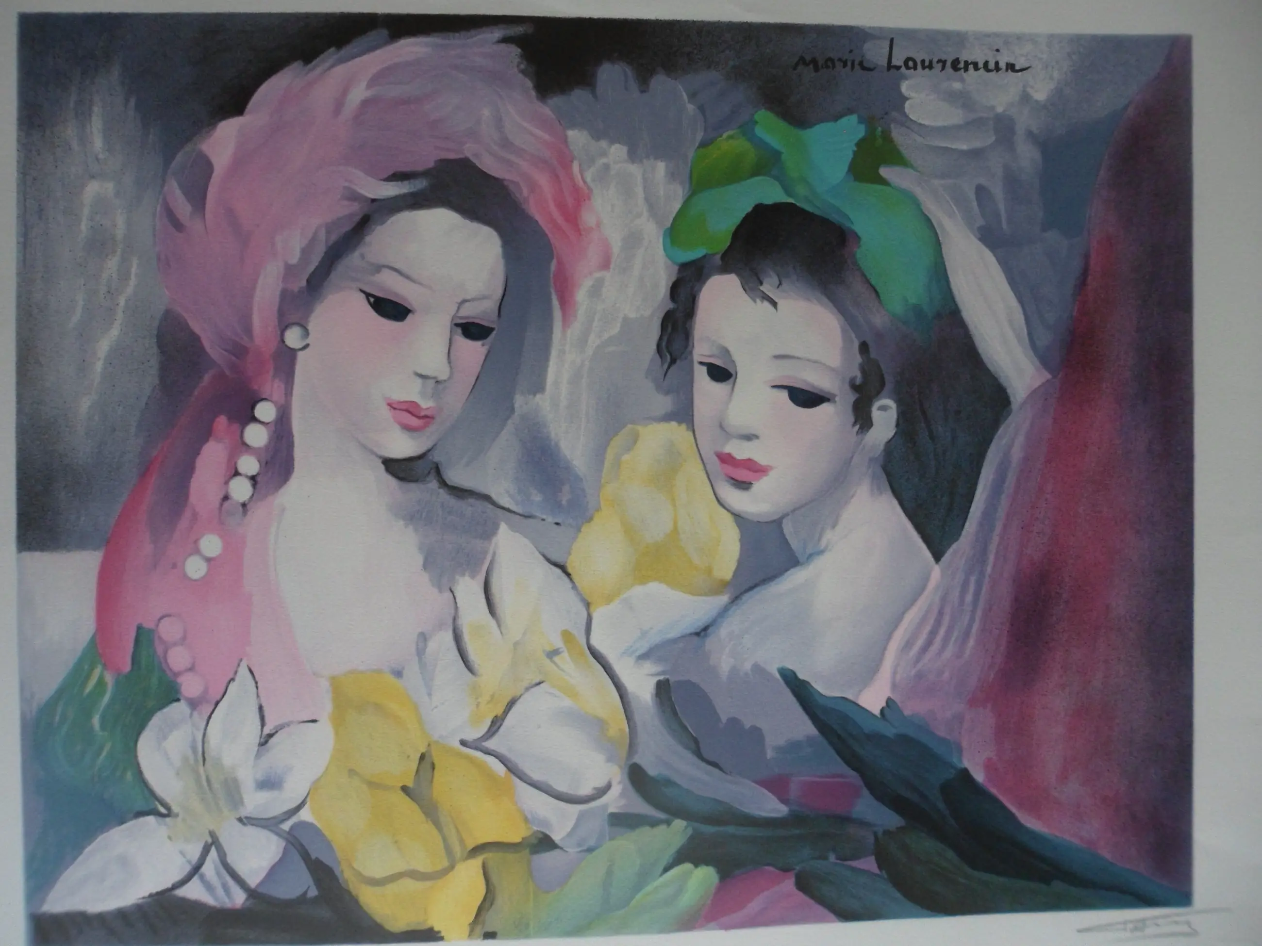 Postuum uitgebrachte, geautoriseerde uitgave. Marie Laurencin gaf de rechten op haar werk als een donatie aan een goed doel (Les Orphelins d'Auteuil), die in 1991 een aantal litho's uitbracht. Inclusief blindstempels en signatuur van de rechthebbende partij.