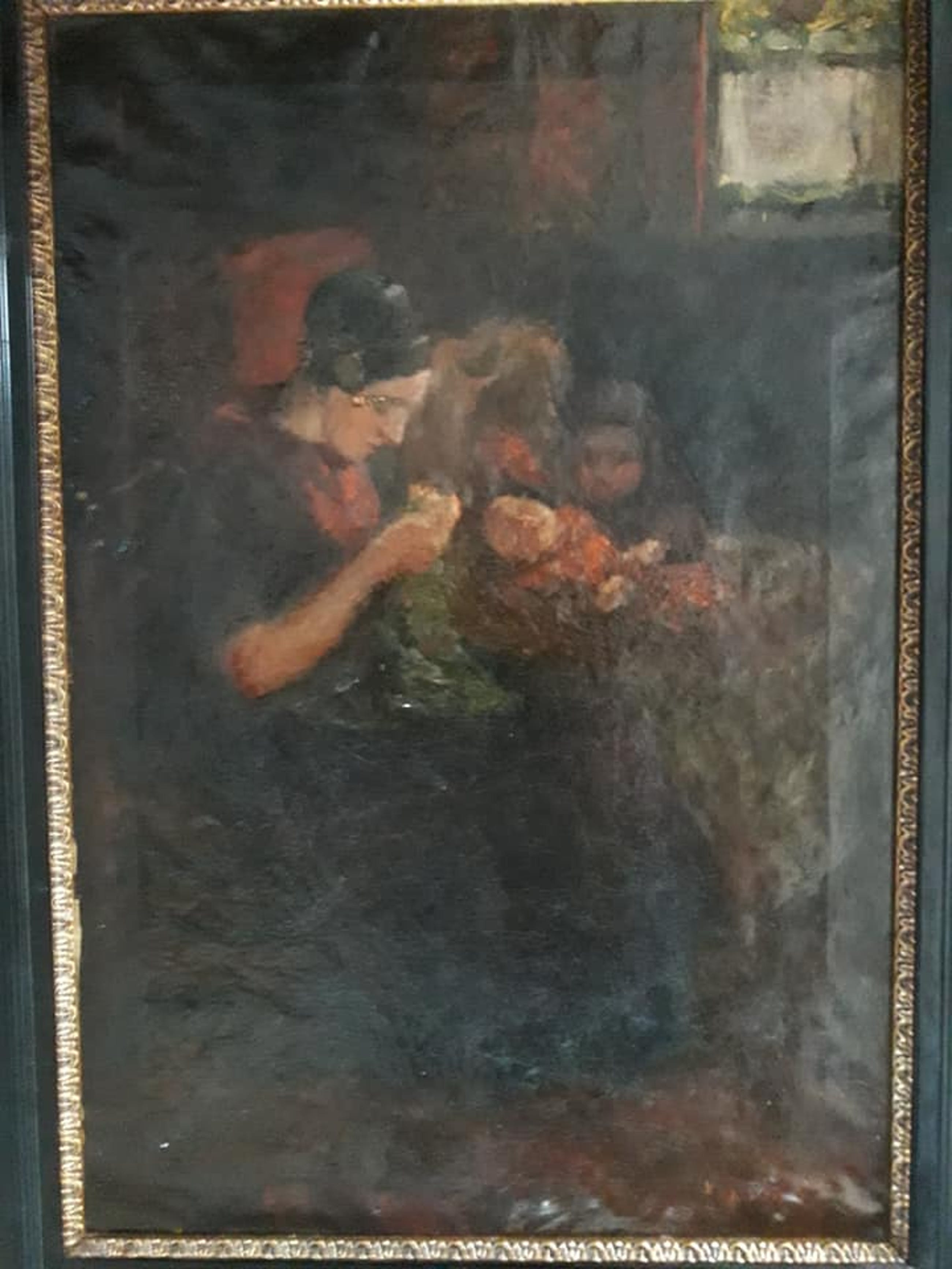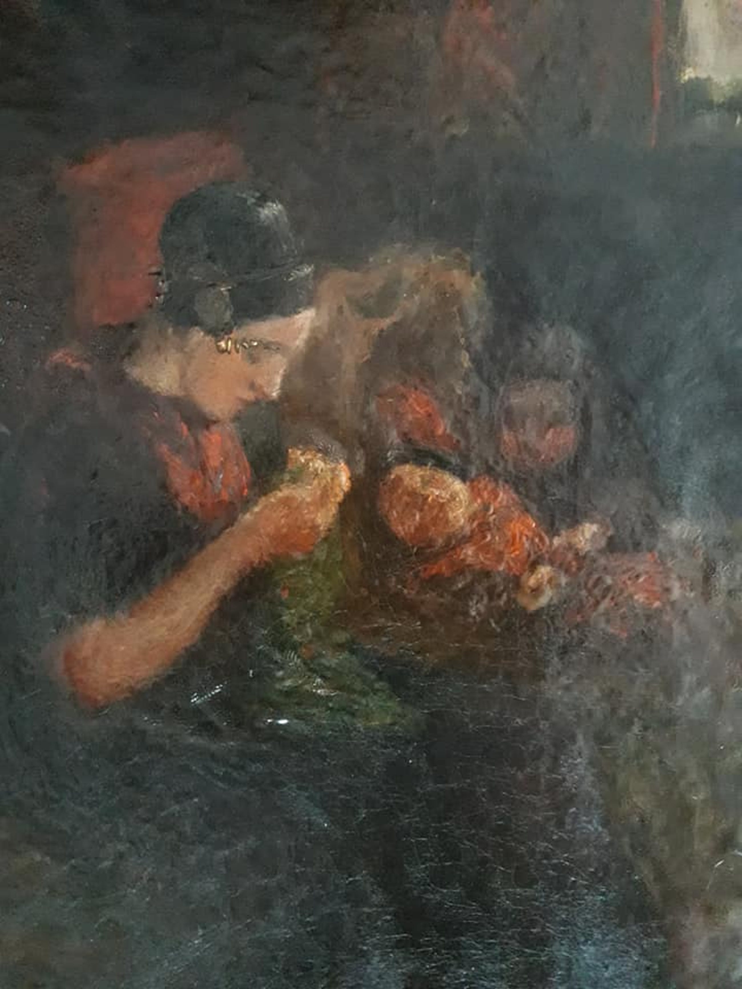 Het schilderij is erg donker. moet zeker schoongemaakt worden. De vernis zit er ook niet overal heel erg mooi op.