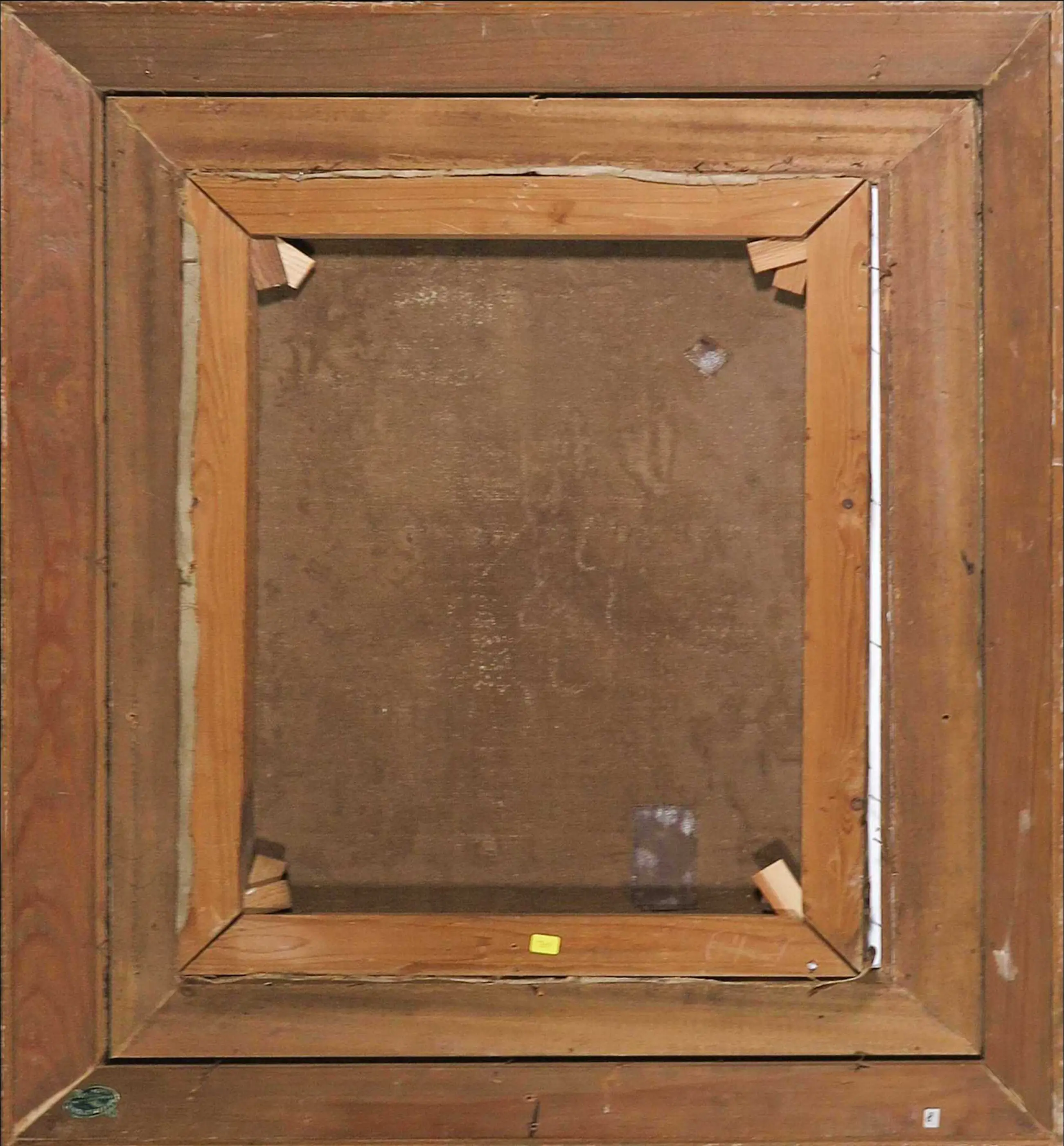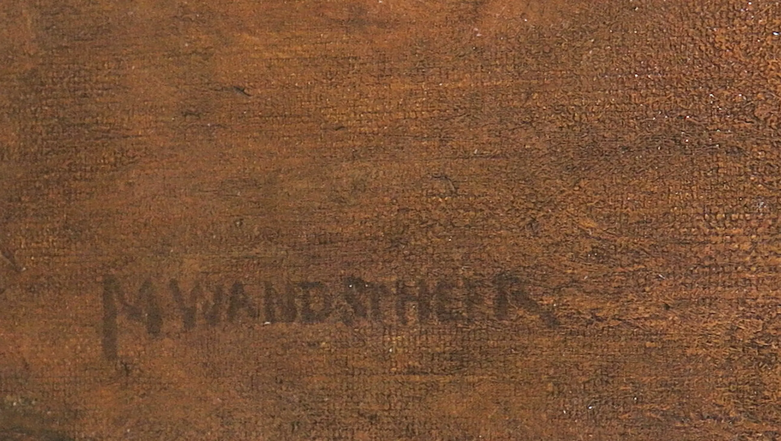 | Op een plek is een retouche aangebracht waardoor er een licht verdikking van de verf is ontstaan. Daarnaast is er een krasje te zien links van de voorstelling. (Zie foto's) | |