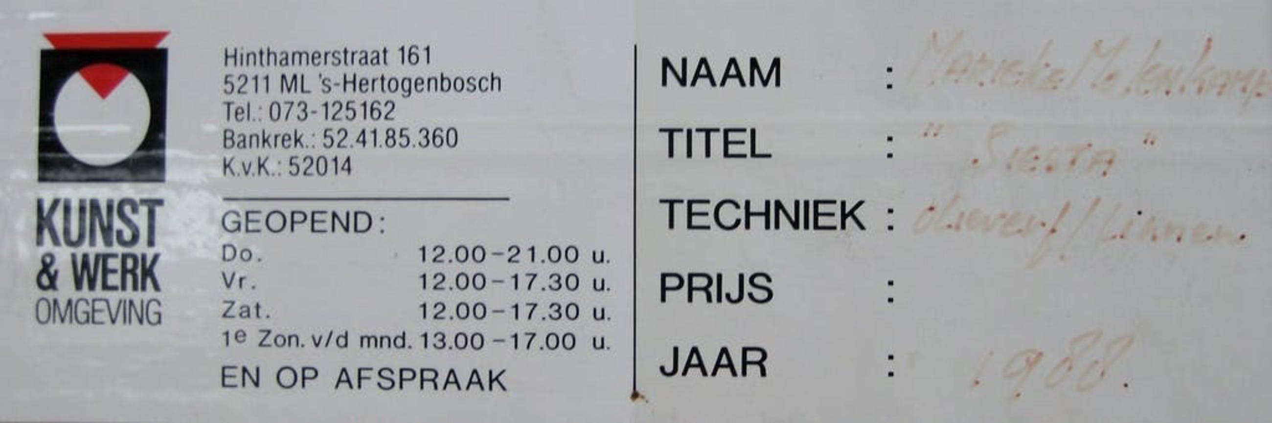 Oorspronkelijk aangekocht bij een galerie.