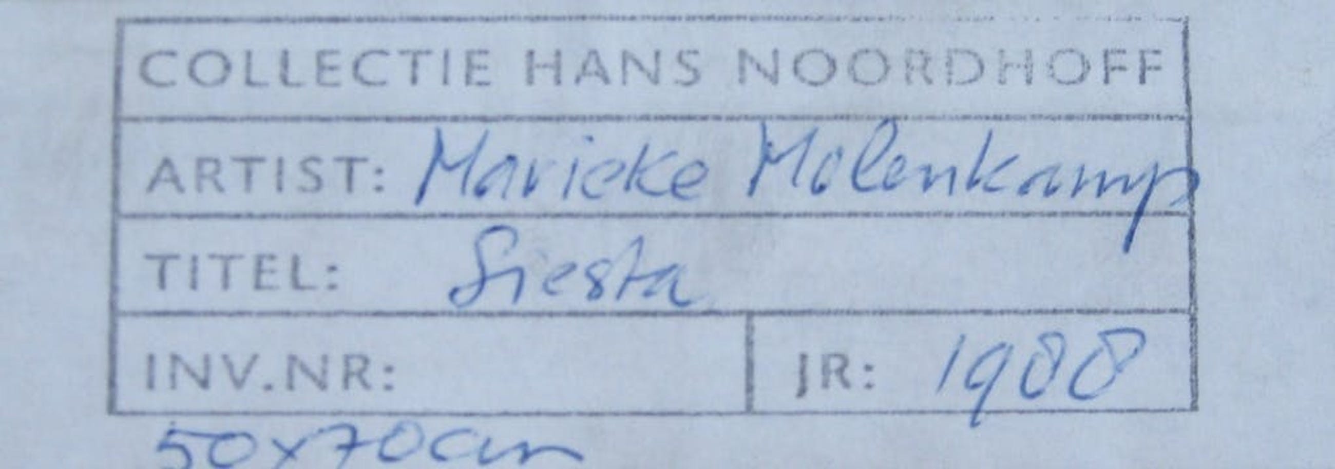 Dit werk is afkomstig uit een privé kunstcollectie, de naam van de voormalige eigenaar staat op het label aan de achterzijde