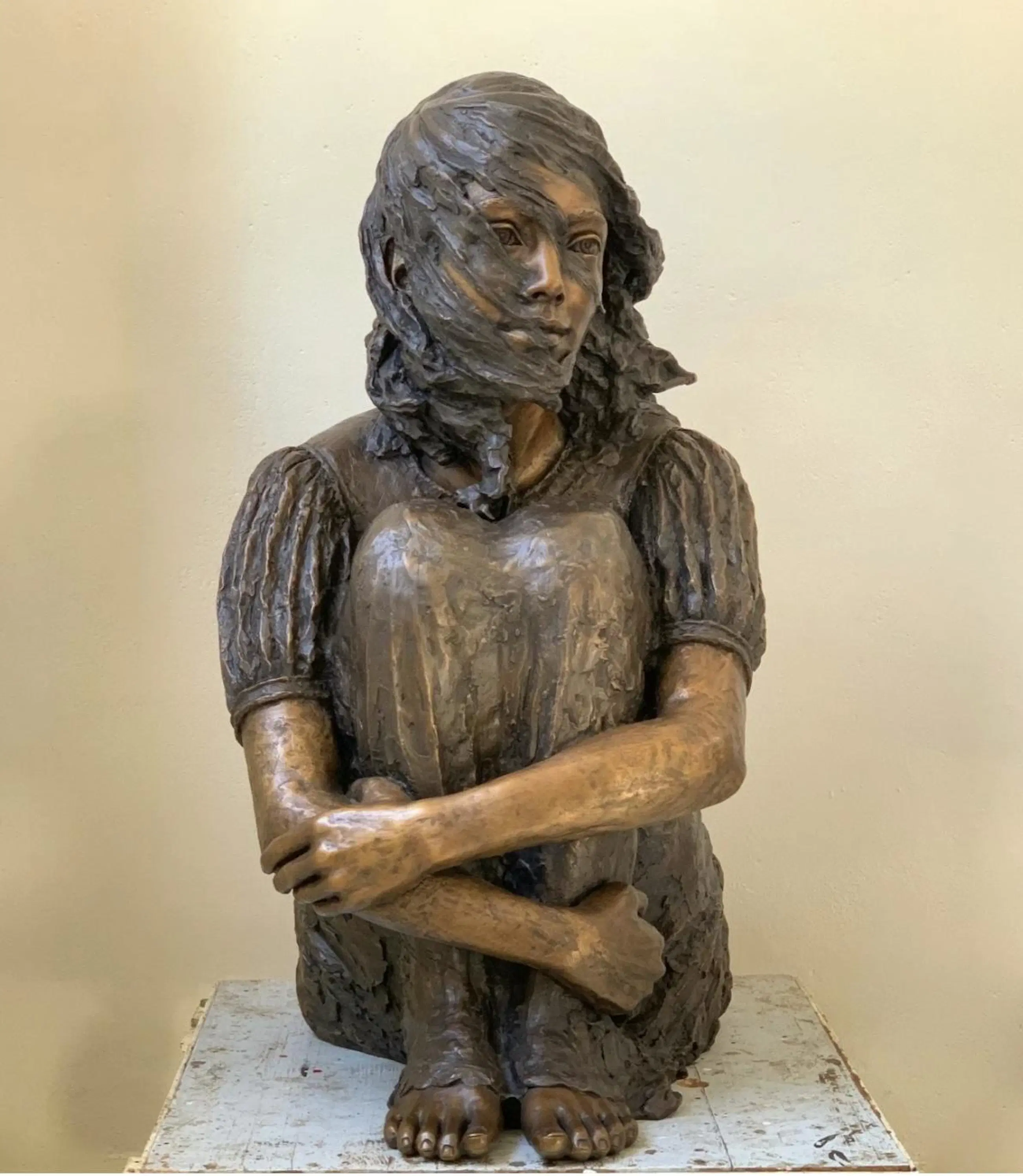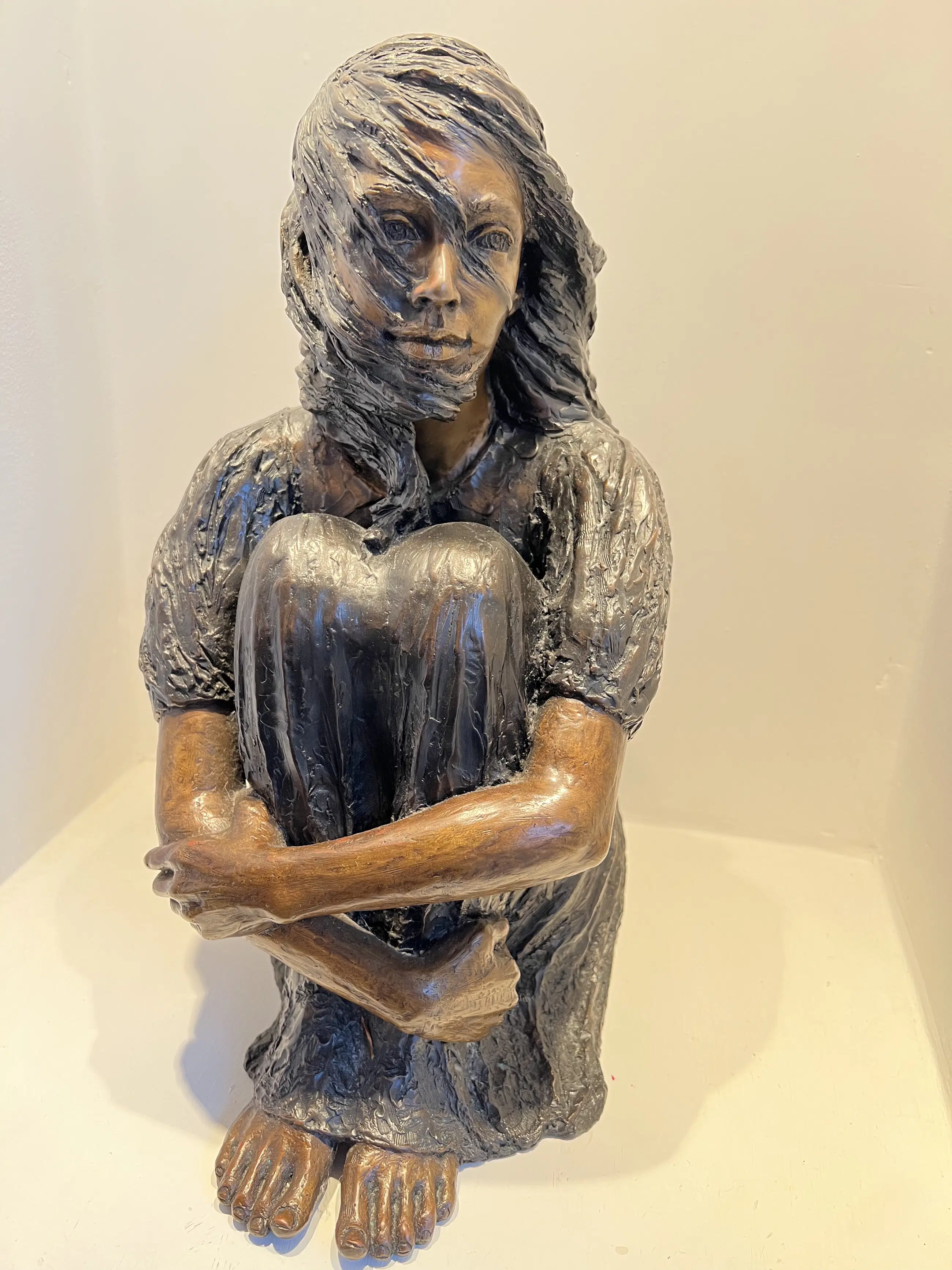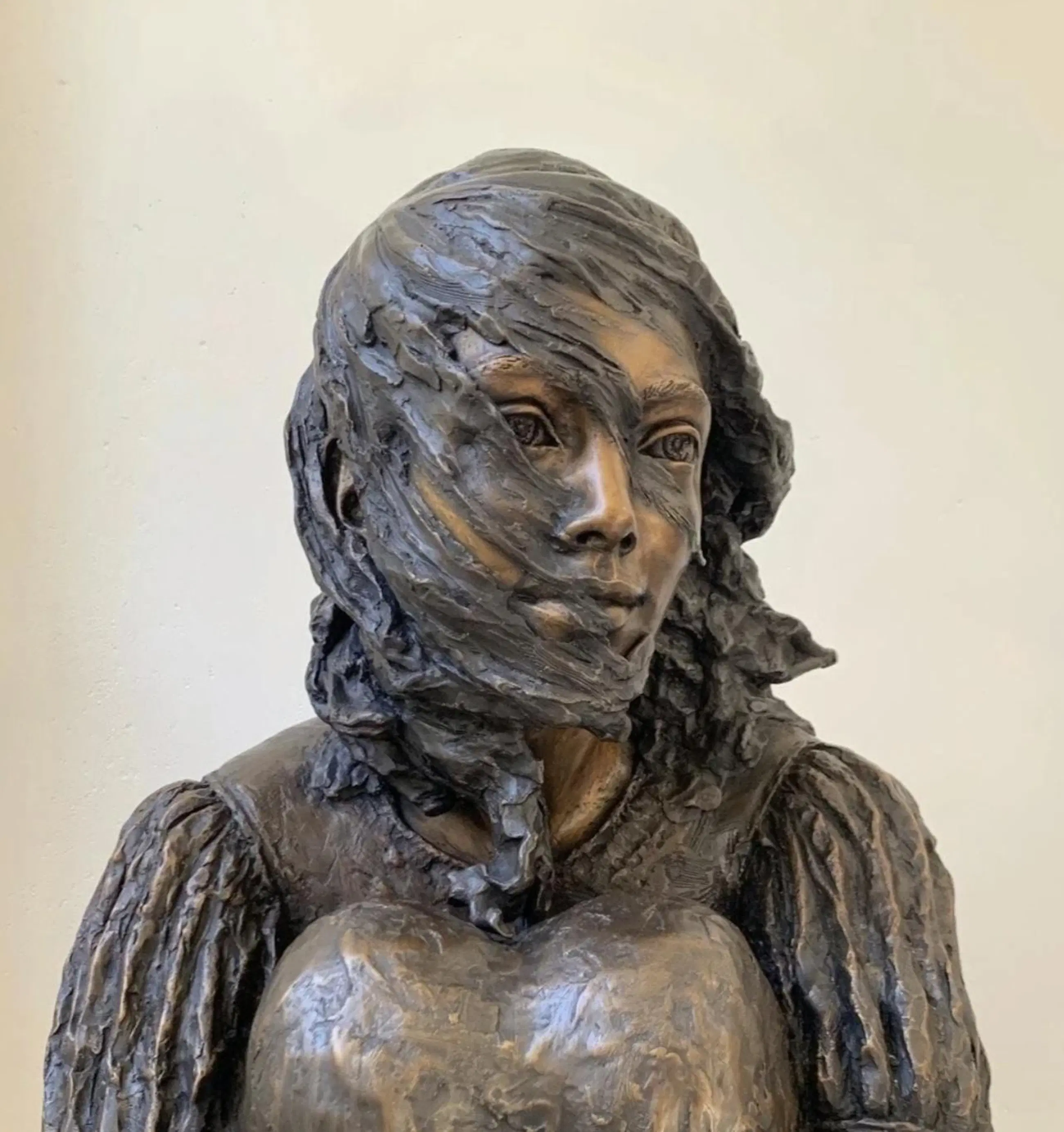 Dit beeld heb ik gekocht in 2024 bij kunsthuis "Walker Bay Modern Art" in Hermanus (Zuid-Afrika). Wat me opvalt is de blik in haar ogen. De oneindigheid waarmee je hiernaar kunt kijken.