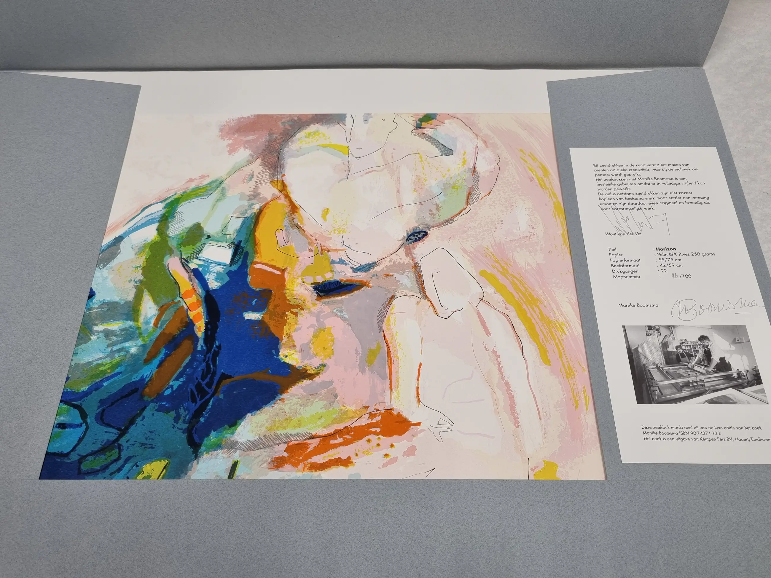 Voorzien van originele bewaarmap en boek boordevol met de kleurrijke kunstwerken van Marijke Boomsma.