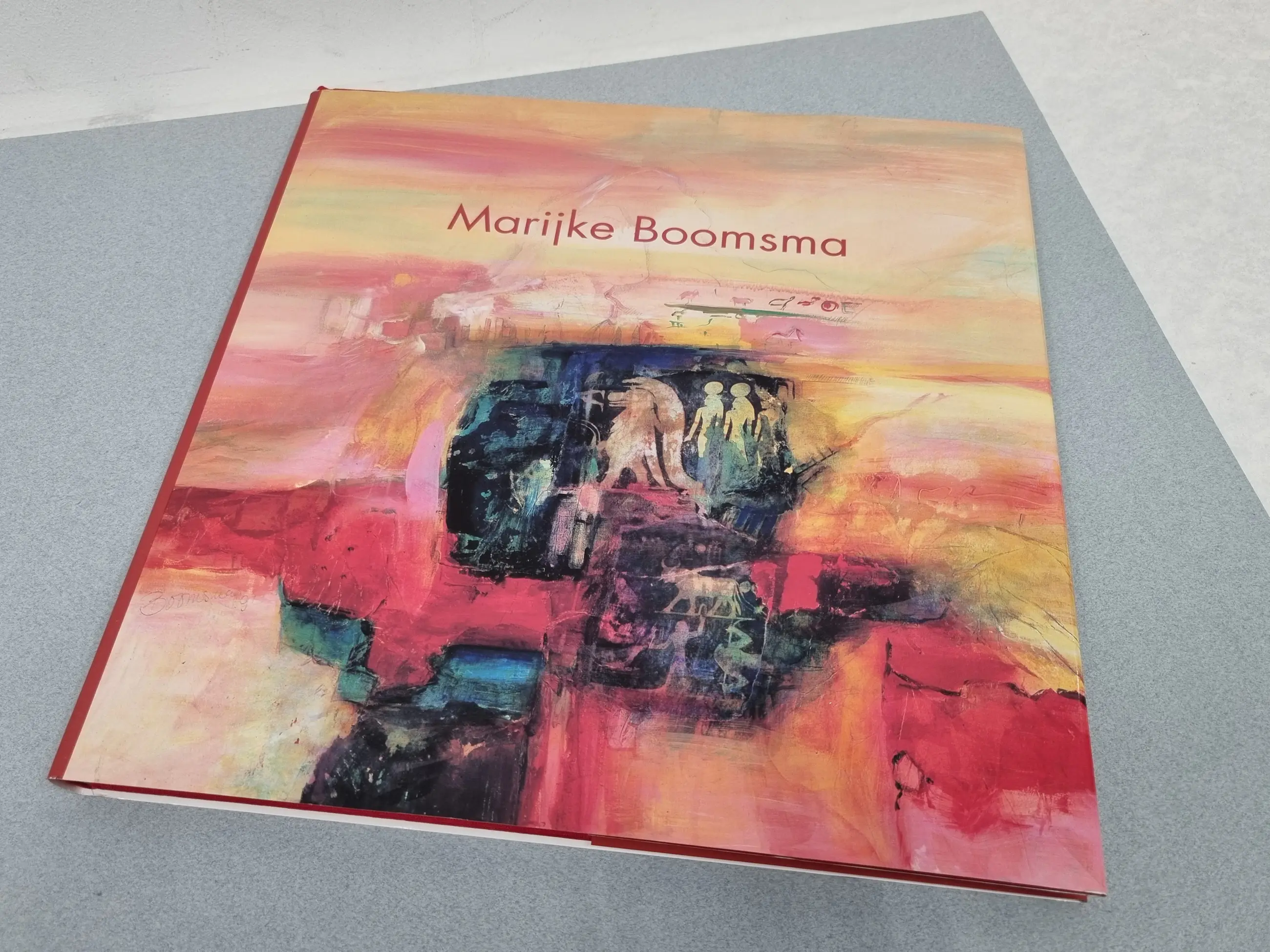 Marijke Boomsma (29-04-1946, Zeist - 13-10-1992, Den Haag) schilderde landschappen en figuurstukken in een lyrisch expressionistische stijl, waarin droom en werkelijkheid over elkaar heen schuiven. De onderwerpen voor haar schilderijen vond Marijke Boomsma veelal tijdens haar reizen in het buitenland. In haar schetsboeken deed zij verslag van haar ontmoetingen met andere culturen, personen en landschappen. Deze schetsen vormden de basis voor de latere, meer uitgewerkte schilderijen. Een reis naar Egypte in 1989 is van grote invloed geweest op de ontwikkeling van haar werk. Na de confrontatie met de mystieke cultuur en het exotische Nijllandschap ontplooide ze haar intense gevoel voor kleur en vorm ten volle. Haar eigen beeldtaal combineerde ze met raadselachtige symbolen en schriftfragmenten van het oude Egypte. Deze werken tonen haar betrokkenheid met de mystiek van oude culturen waarbij zij de draad doortrekt tot nú, zodat het heden een opsomming van mystiek, lyriek en haar eigen signatuur wordt, waarin men gedachteloos kan wegdromen.