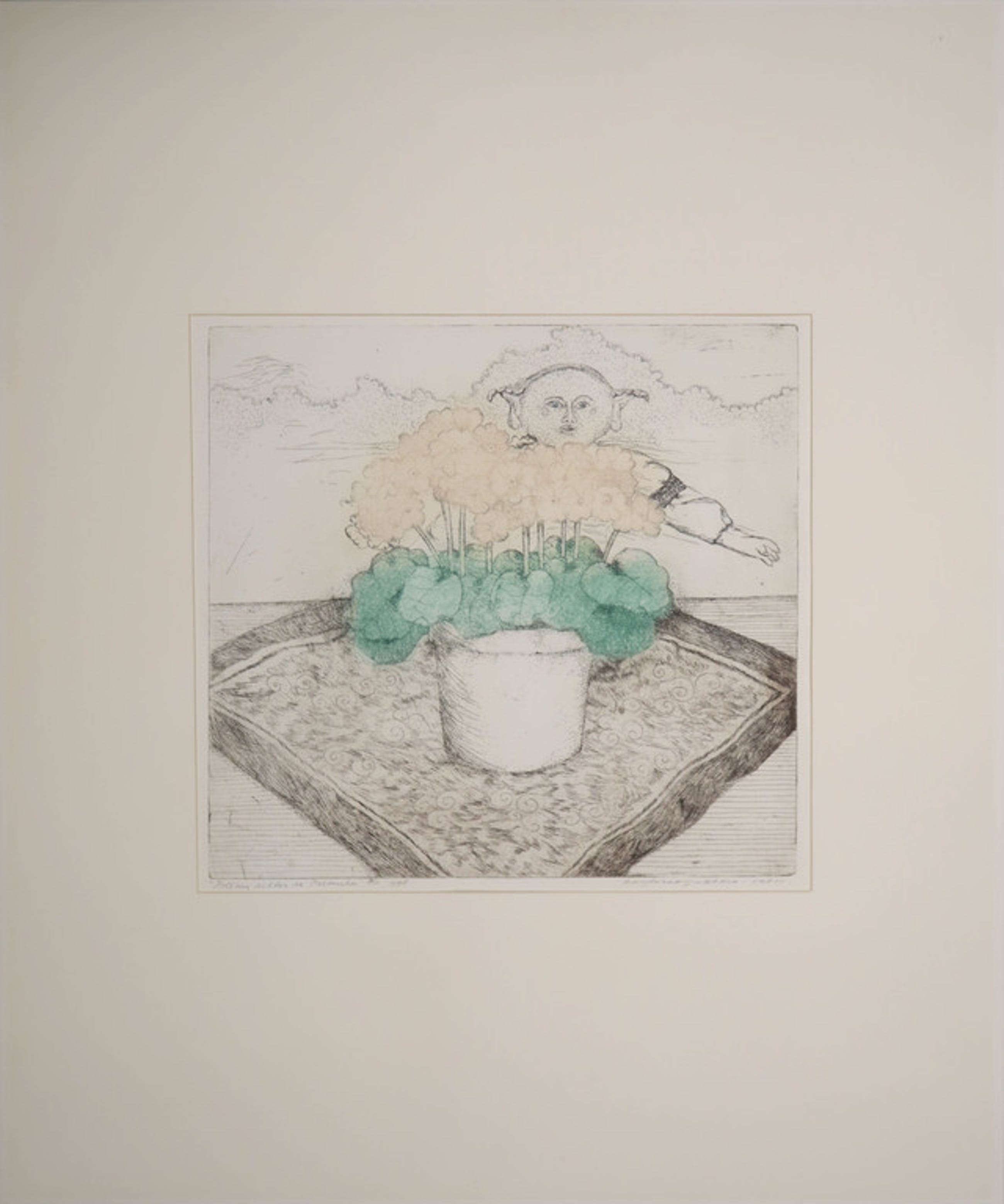 Conditie kunstwerk: Beeld in zeer goede staat. Lichte vergeling zichtbaar langs de rand van het passe-partout.