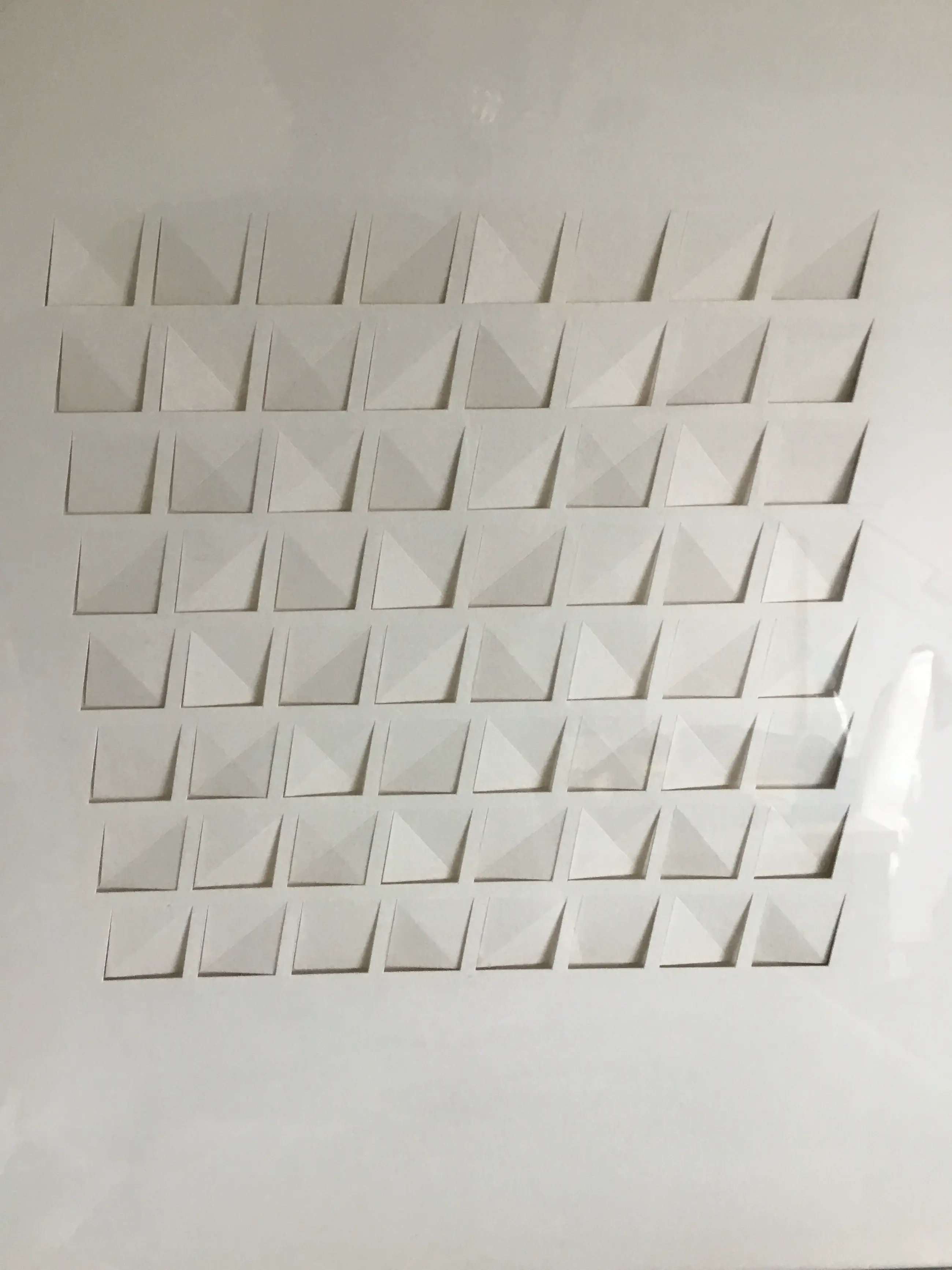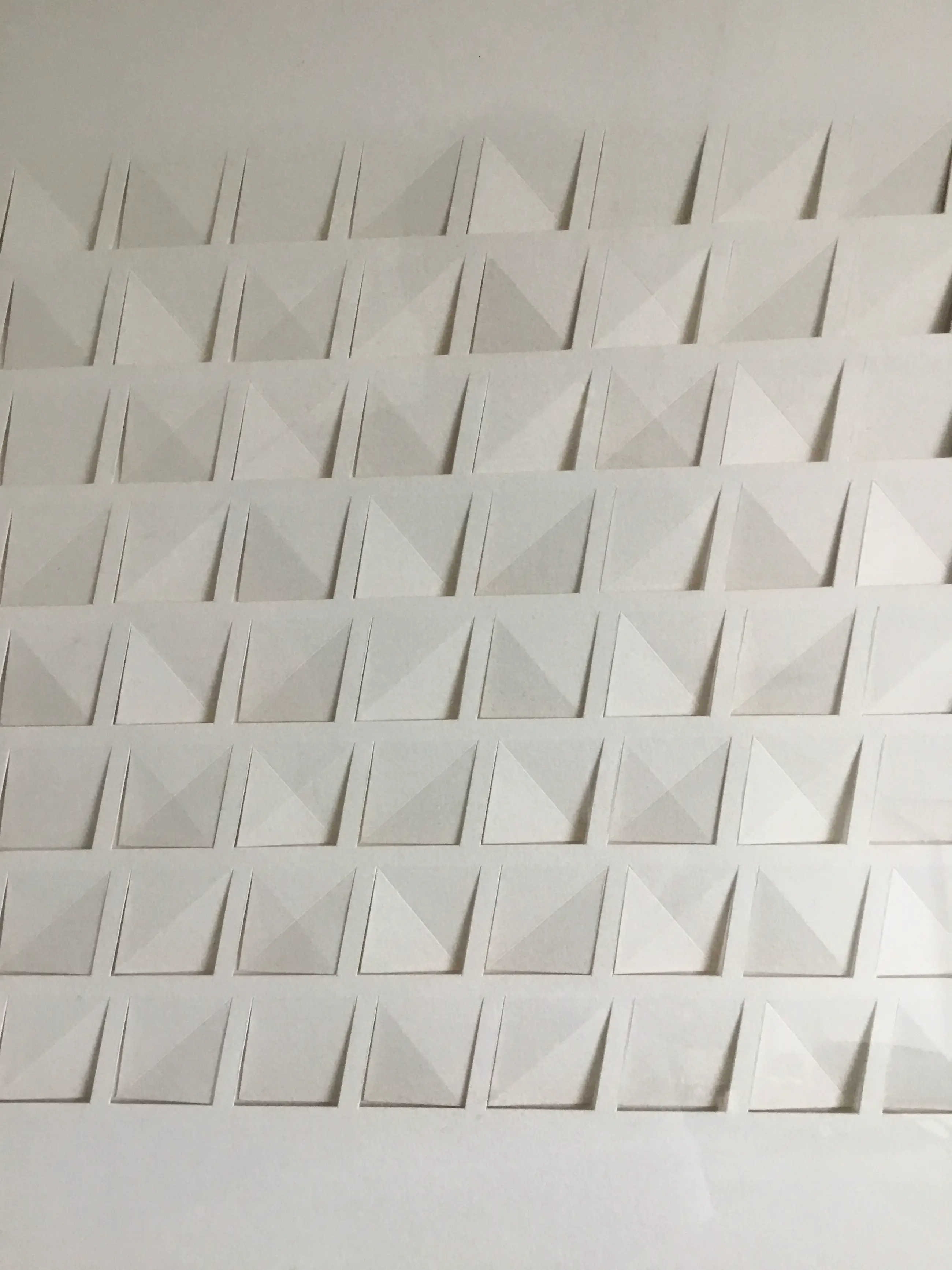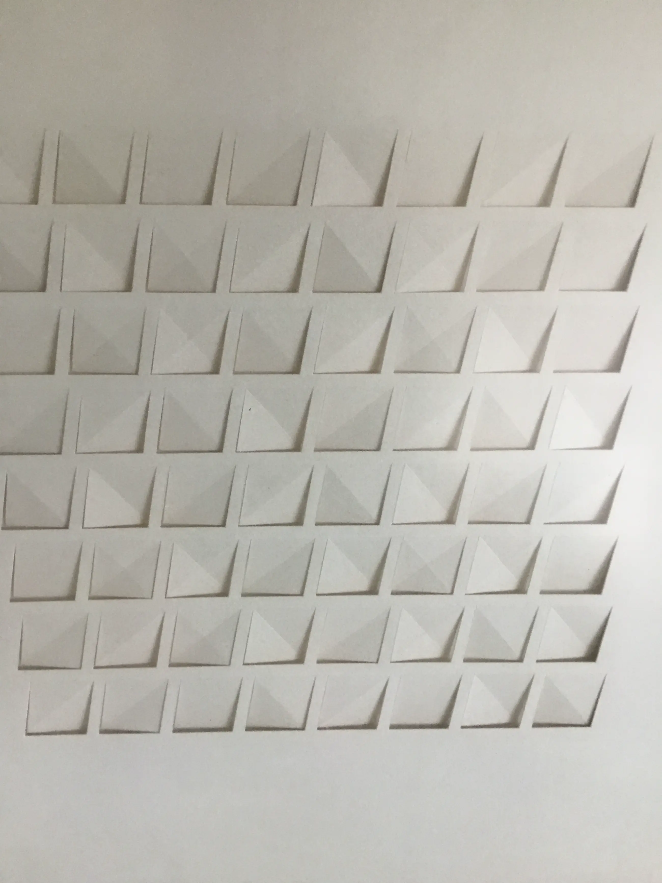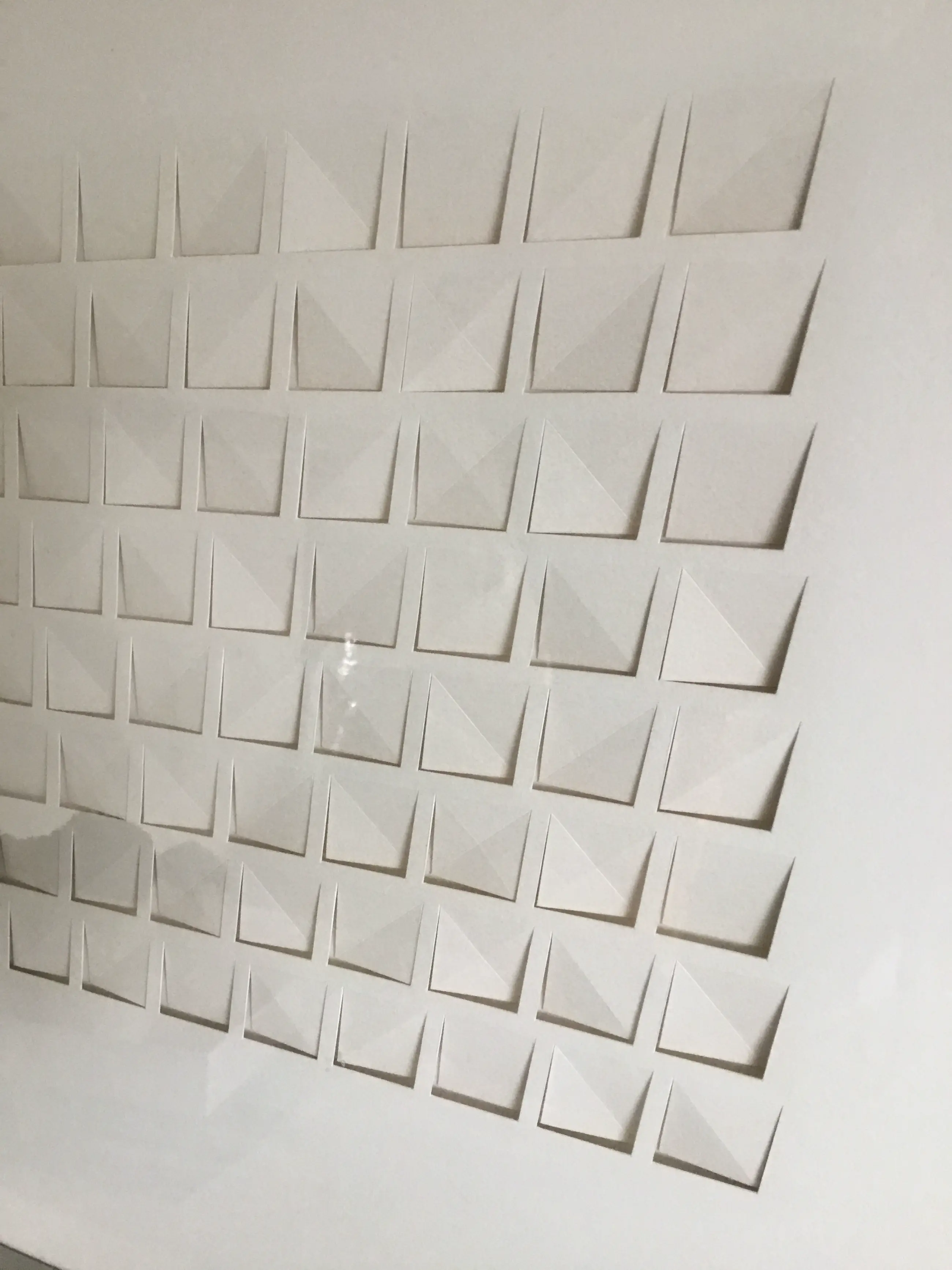 Zeer mooi minimalistische vouw en snij kunst van Marijke van Epen. Afhankelijk van de lichtval geeft het reliëf een andere blik op het werk. De afmeting van het werk is 25x25cm. Het werk is met potlood gesigneerd en genummerd 29/60.