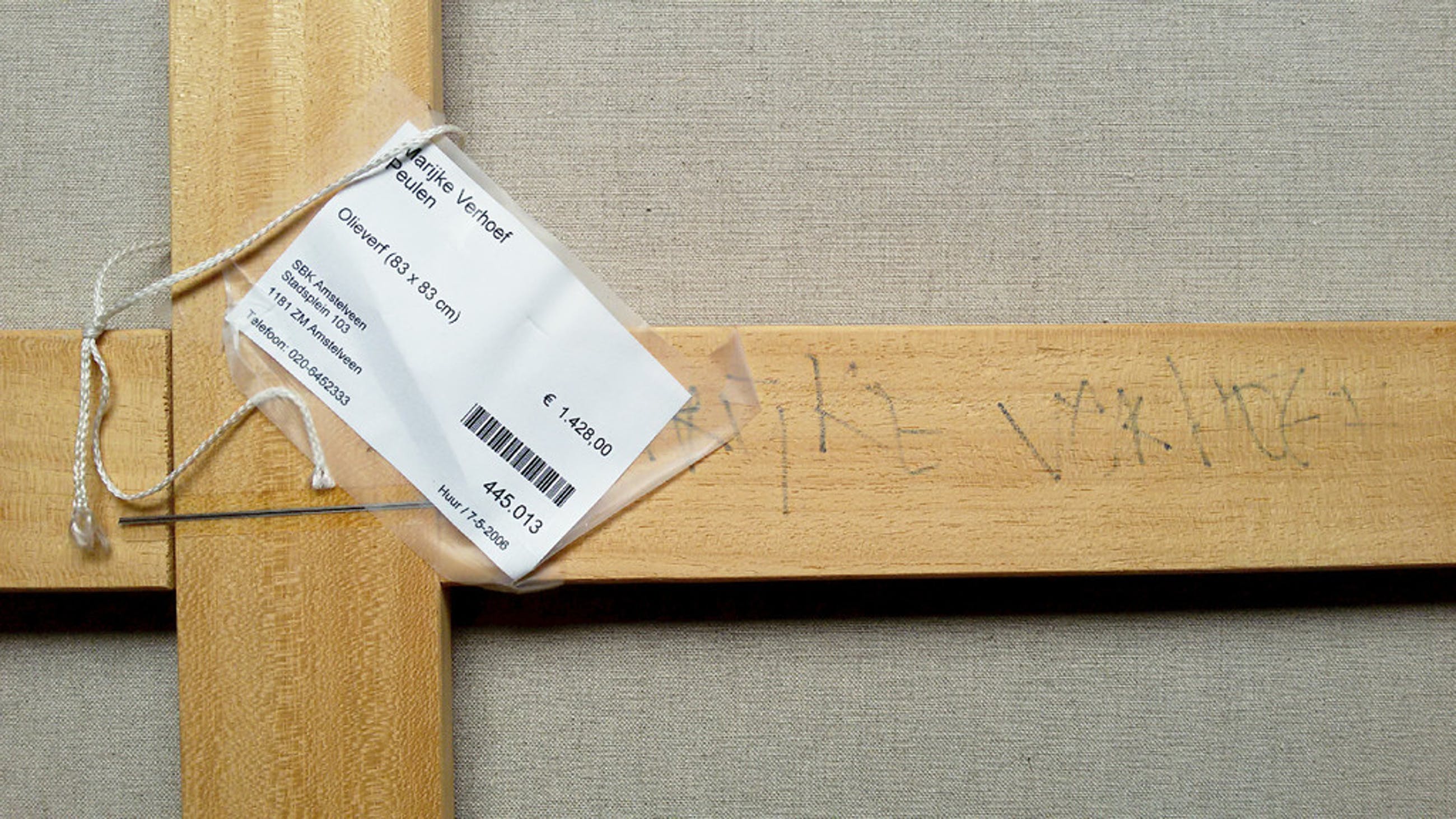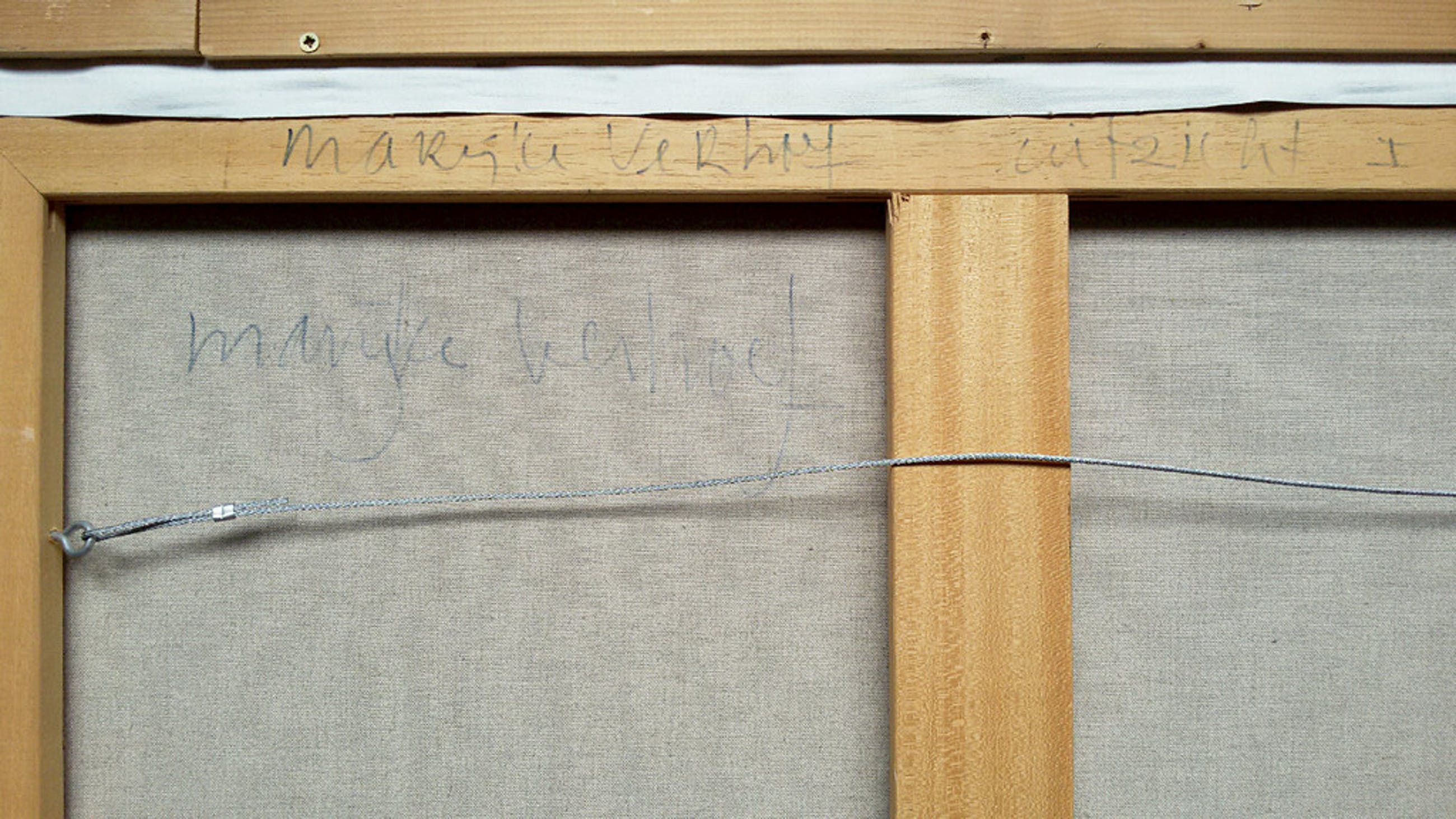 Strak, modern werk van Marijke Verhoef. Olieverf op doek in eenvoudige maar effectieve lijst, gesigneerd en getiteld in verso. Alles in uitstekende conditie. Achterop zit nog een kunstuitleen prijskaartje van 1428 euro.