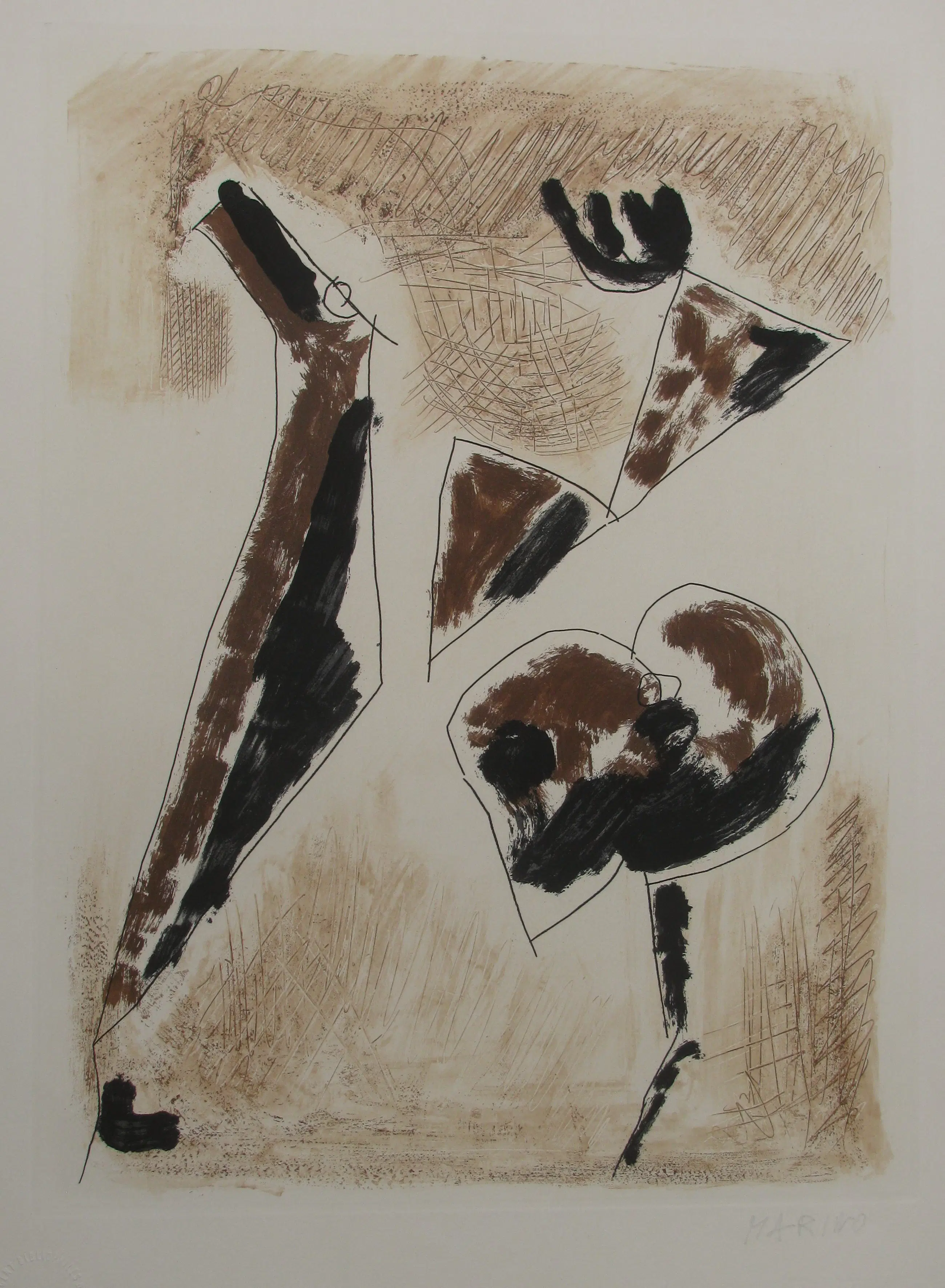 Aquatint ets, 39 x 29 cm (51 x 38 cm per vel) op RIVES geschept papier. Gesigneerd met potlood rechtsonder. Oplage van 50 exemplaren. Redencatalogus Gustalla 172 .