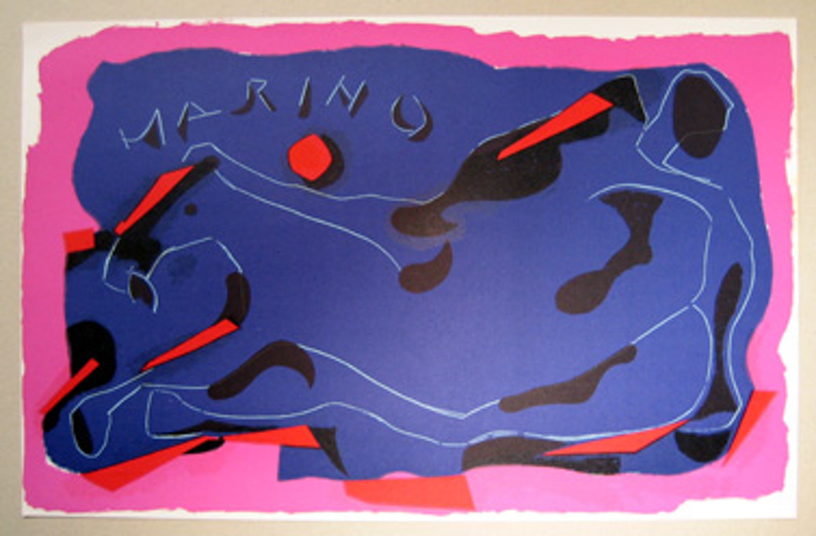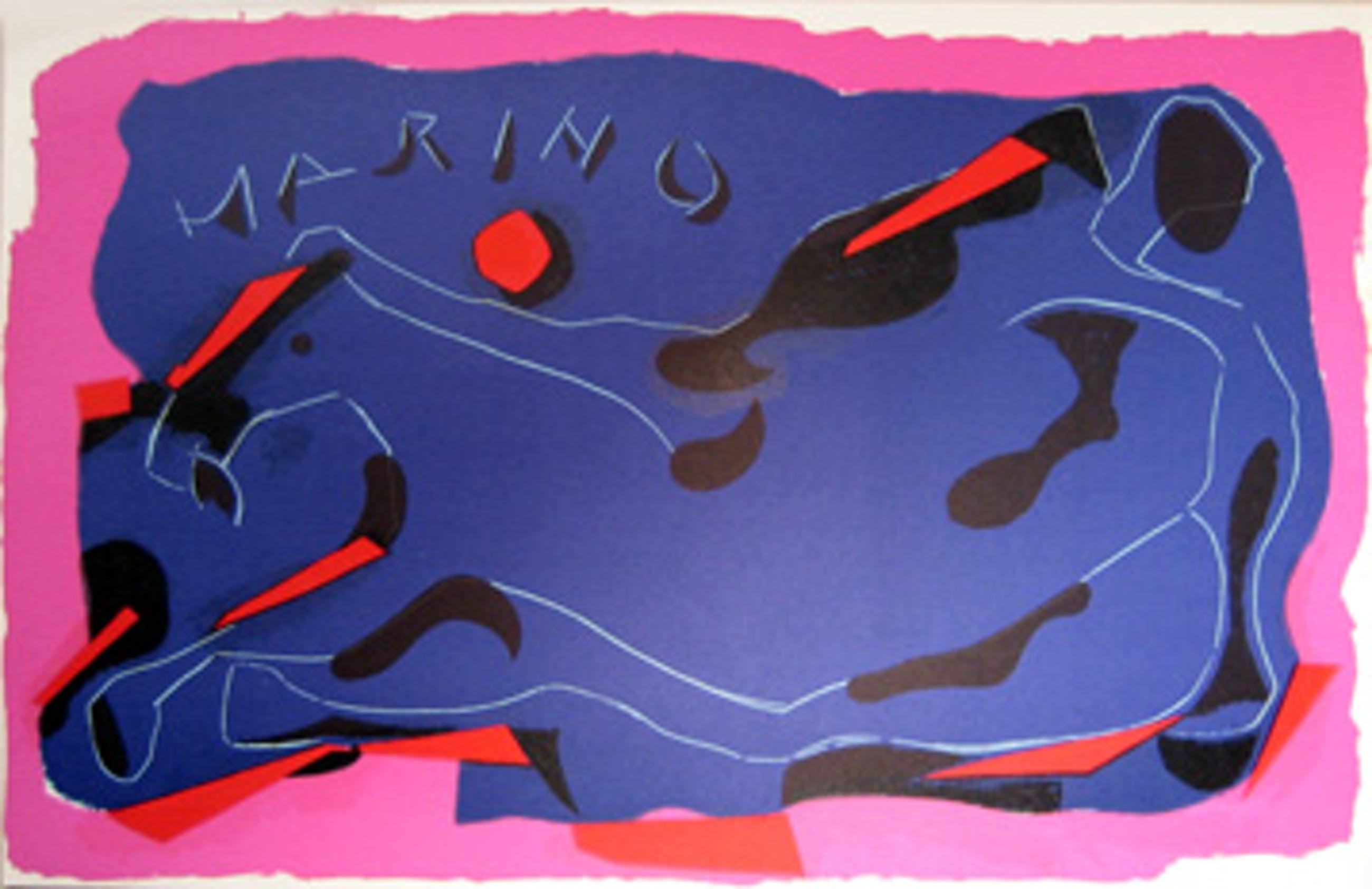 | “Cavallo”, 1974, Kleurenlitho 32,5 x 60,7 cm op 33 x 61 cm Gesigneerd als beeldelement in de litho, links boven in het beeld, Gedrukt voor de biografie van Marino Marini in reeks XX-siecle, (buiten de serie die gevouwen is opgenomen in het boek.) Dit is een ongevouwen exemplaar van de litho’. Oplage onbekend In goede staat, minimaal kleurrandje boven aan rechter zijkant. | |||||||