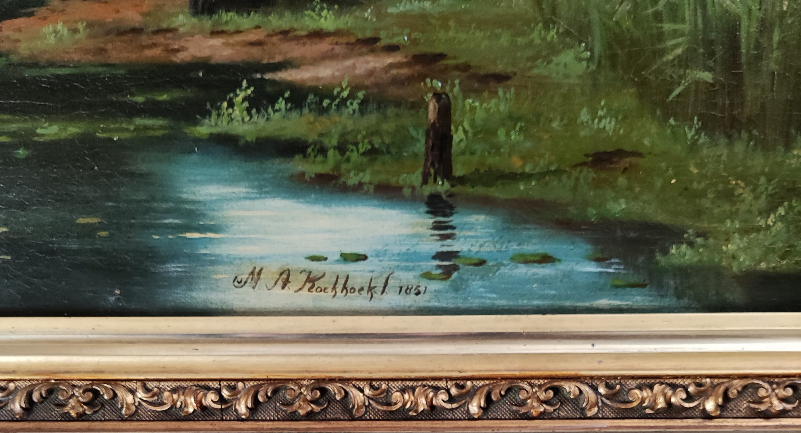Gesigneerd en gedateerd 1851 midden onder. Doekmaat 50x68 cm. Lijstmaat 74x91,5 cm. Lijst heeft gebruikssporen. Marinus
