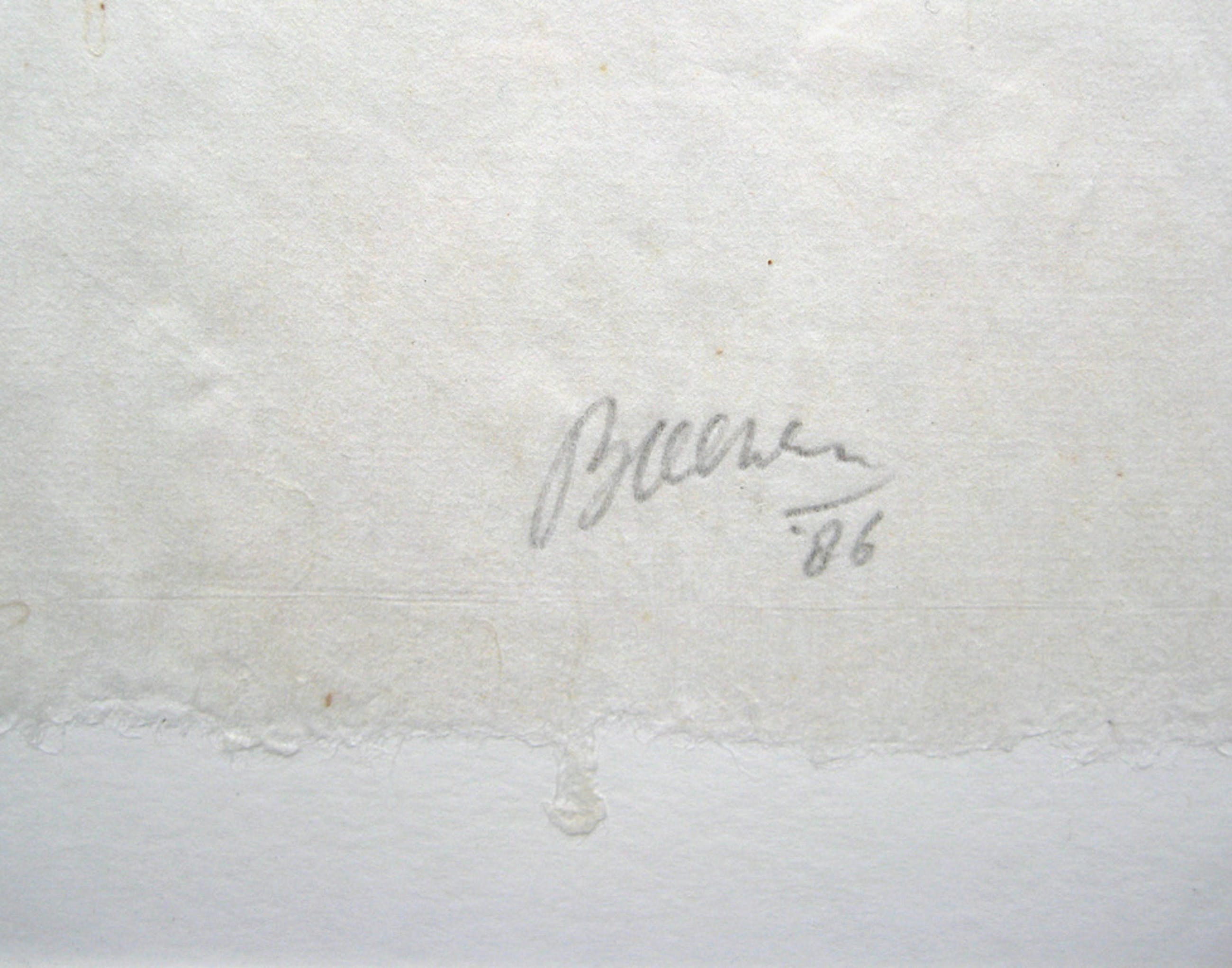 Zeefdruk 70 x 103 cm, ingelijst achter glas, midden onder in potlood gesigneerd Boezem 86, rechtsonder in potlood 4/40, collectie KPN Kunst en Vormgeving.