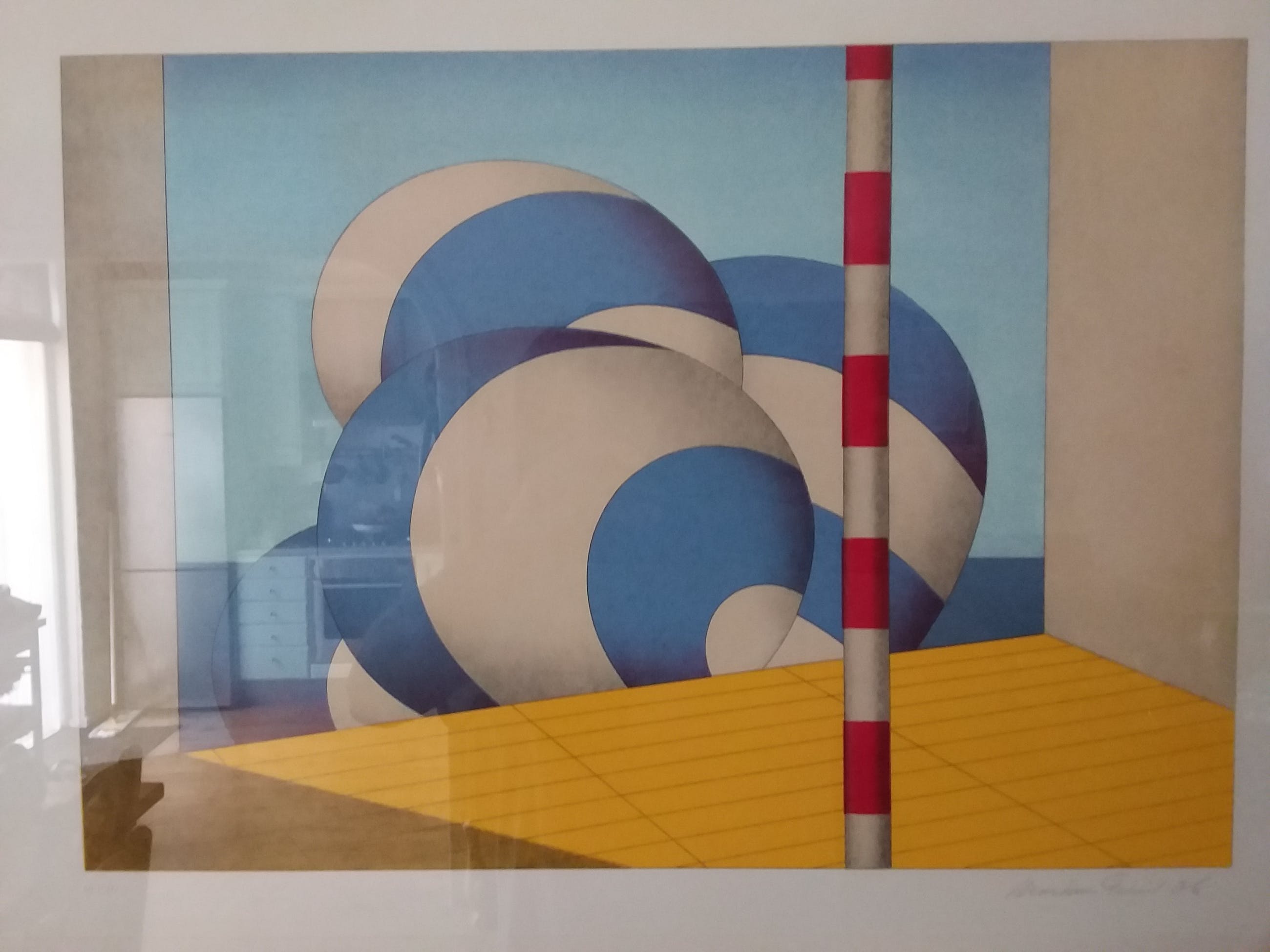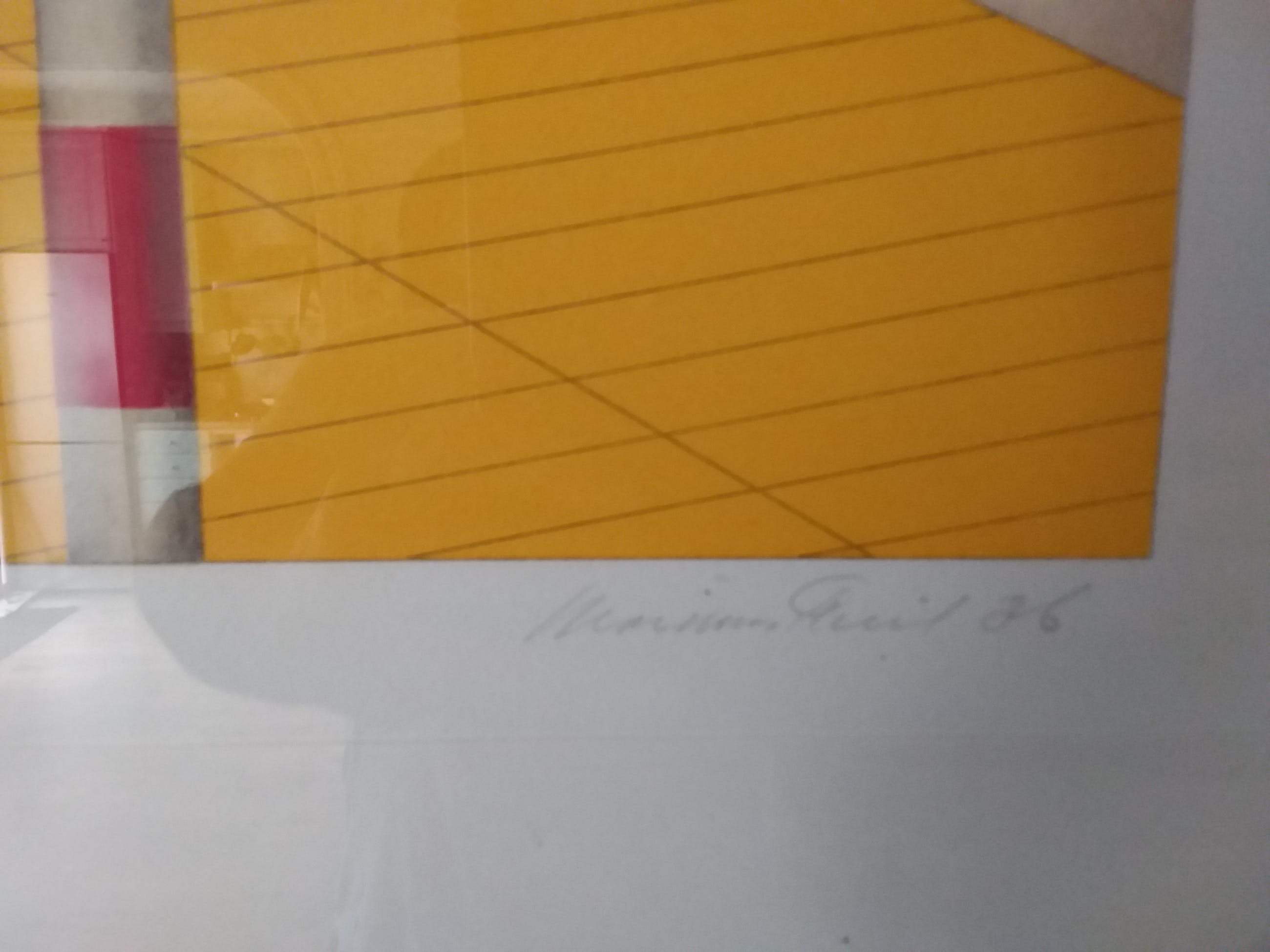 De vormen zijn herkenbaar - flatgebouwen, trappen, een tram, een paaltje - en worden minutieus uitgevoerd in grote composities met strenge vormen en heldere, overwegend primaire kleuren. Het werk verwijst duidelijk naar de zichtbare wereld om ons heen, ondanks sterke abstraheringen.