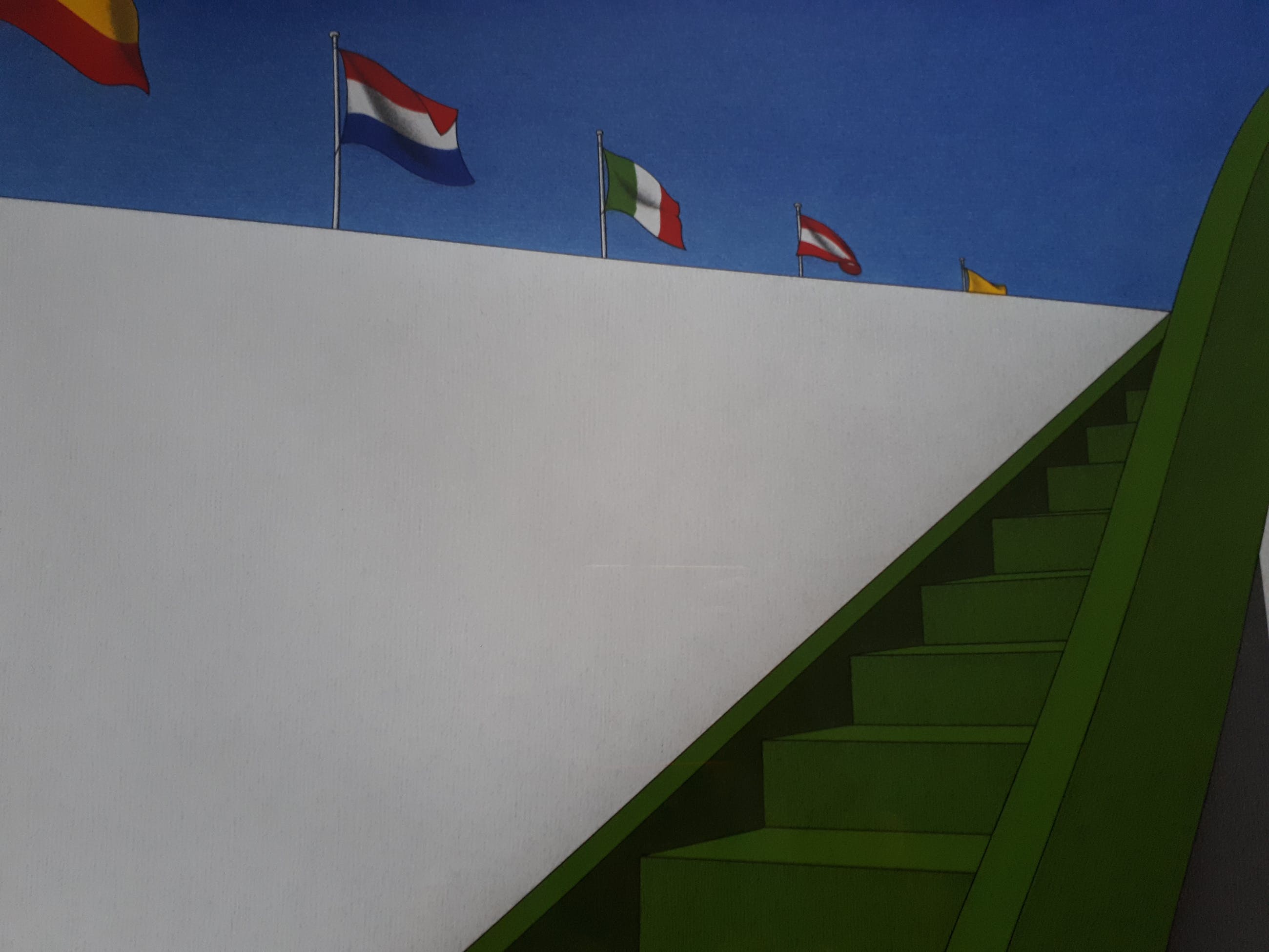 De zeefdruk is mooi en professioneel ingelijst (met zeer lichte gebruikerssporen). De zeefdruk is in zeer goede staat.