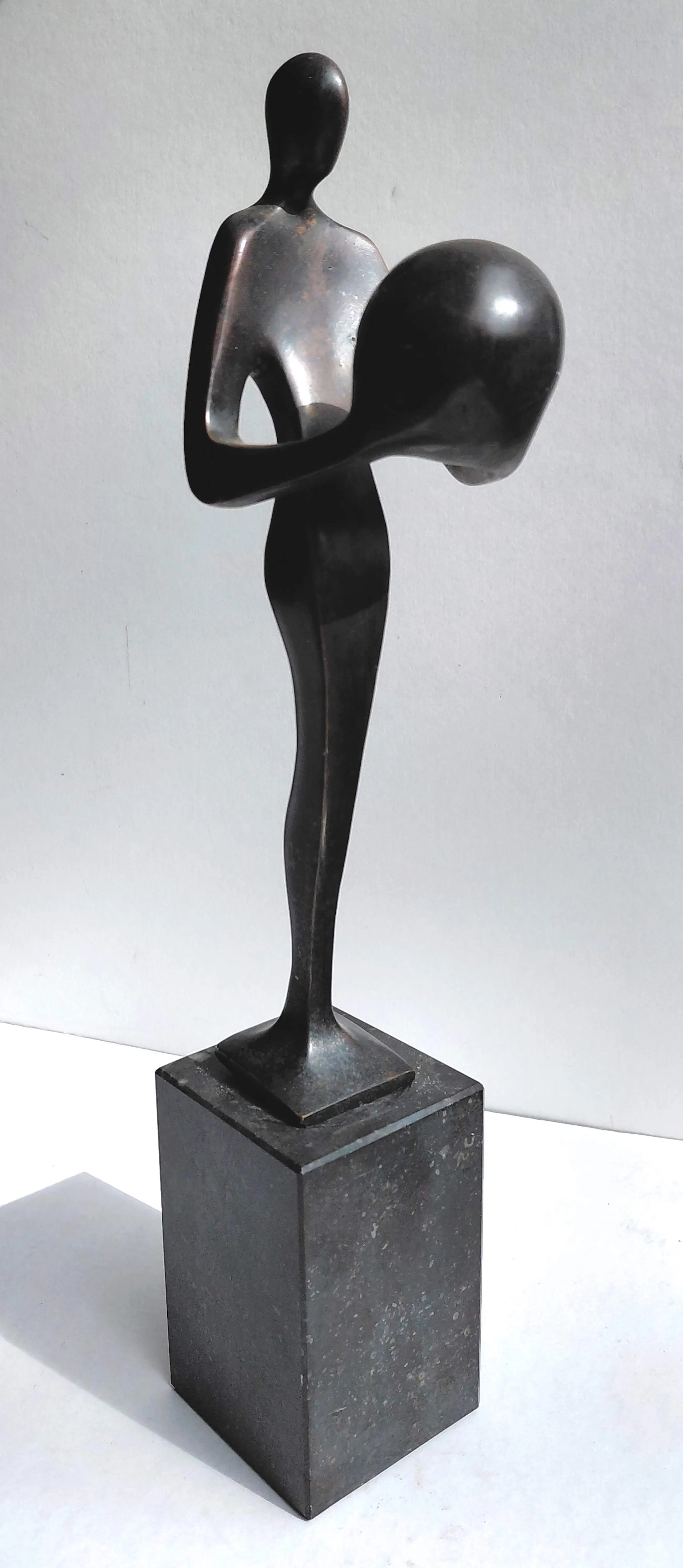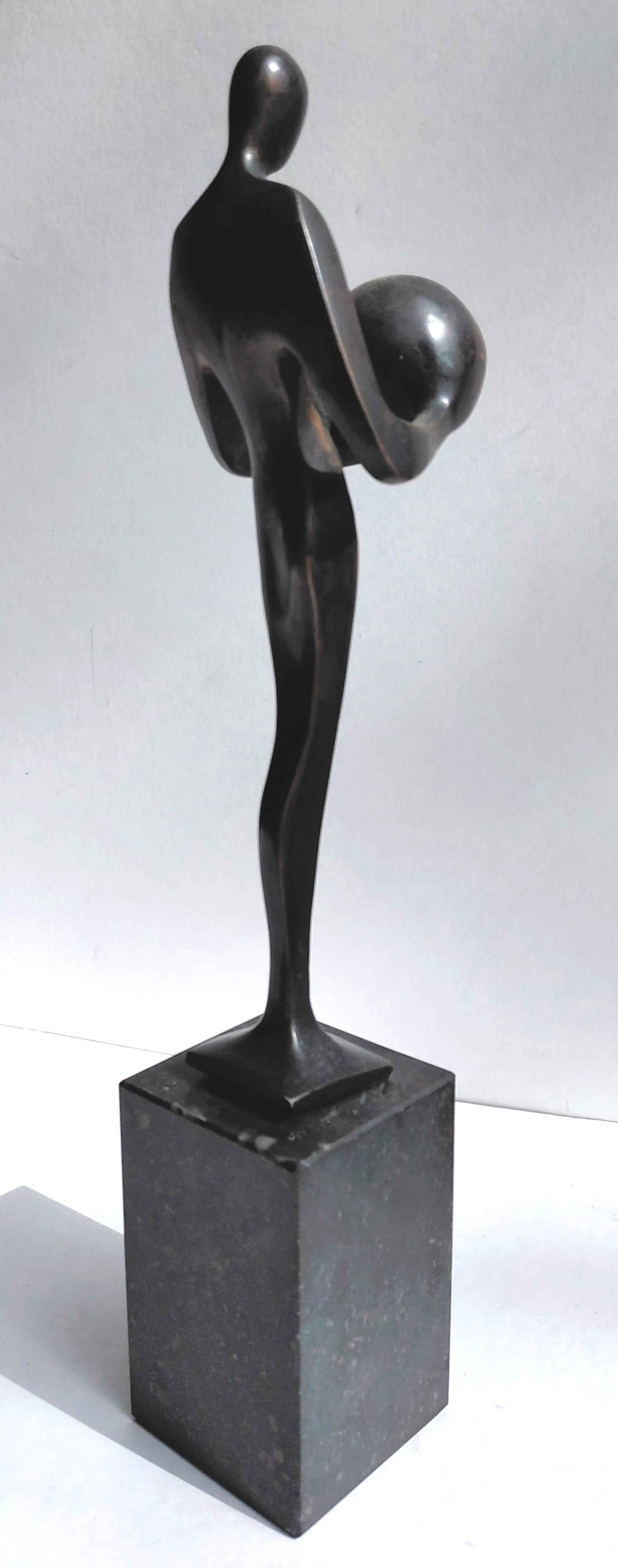 Mooi, direct herkenbaar beeld van Marinus Klap. Bronzen beeld op natuurstenen sokkel, op het linkerbeen gesigneerd en genummer (1/1). Totaalgewicht: 2,1 kg. In zeer goede conditie.