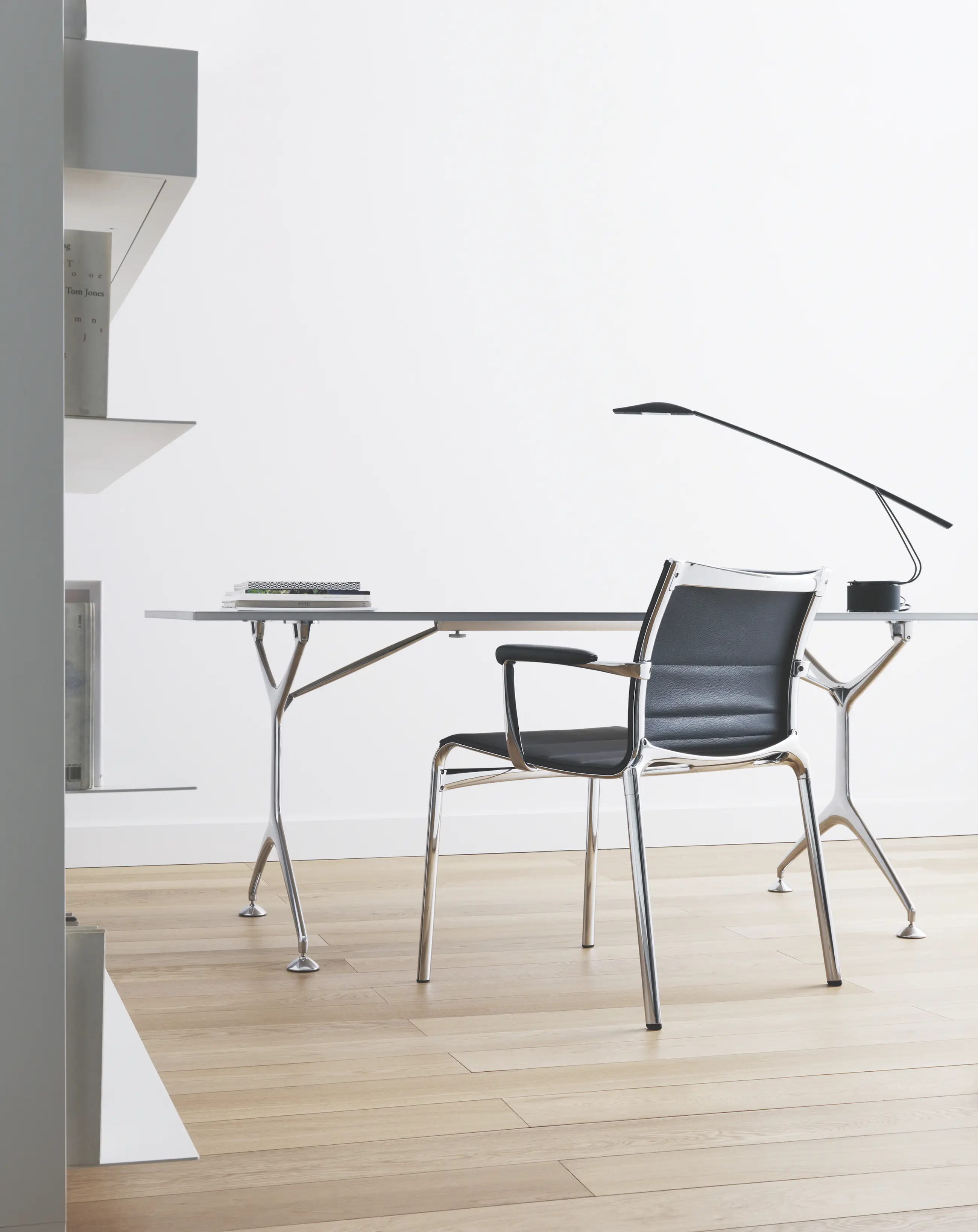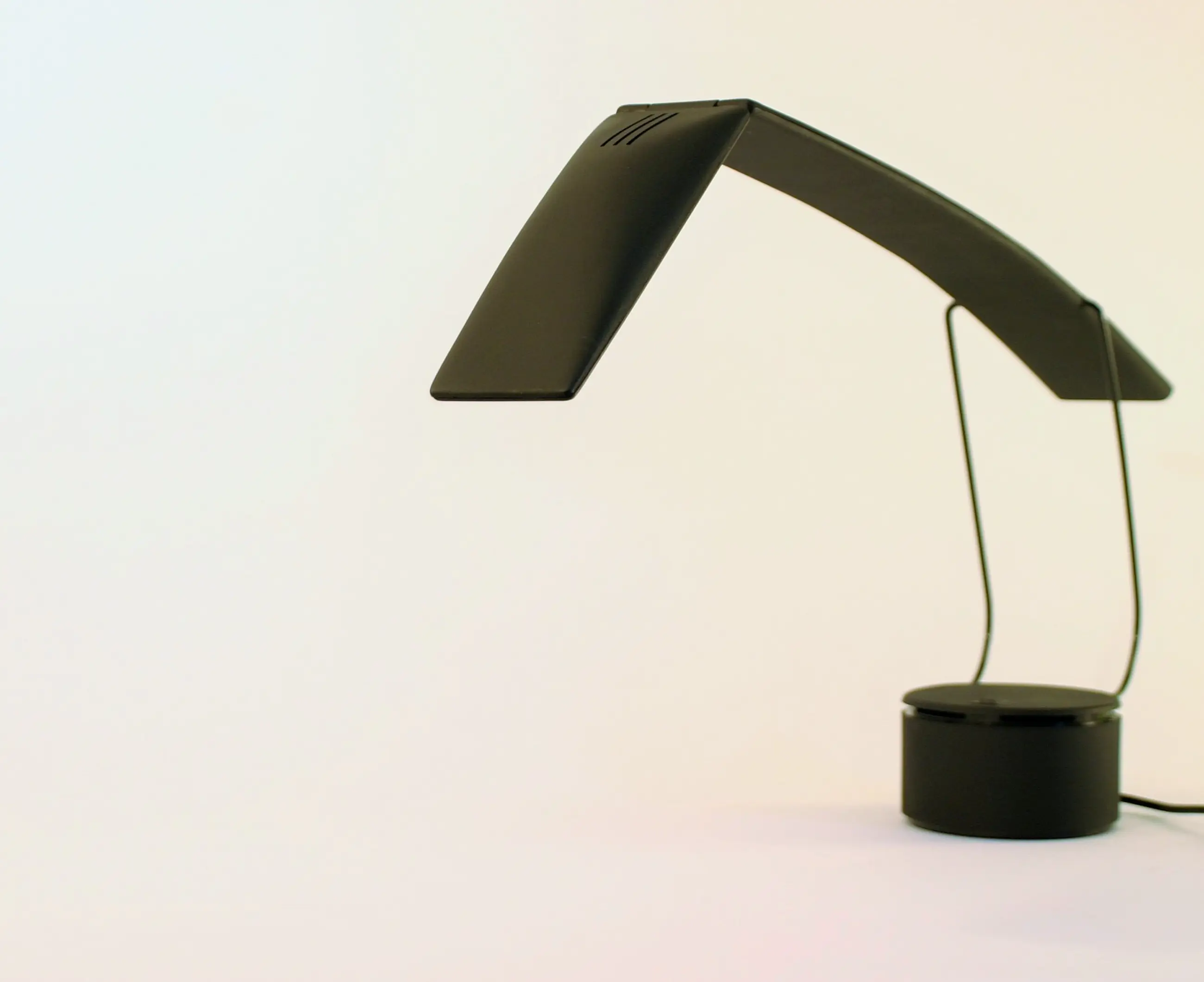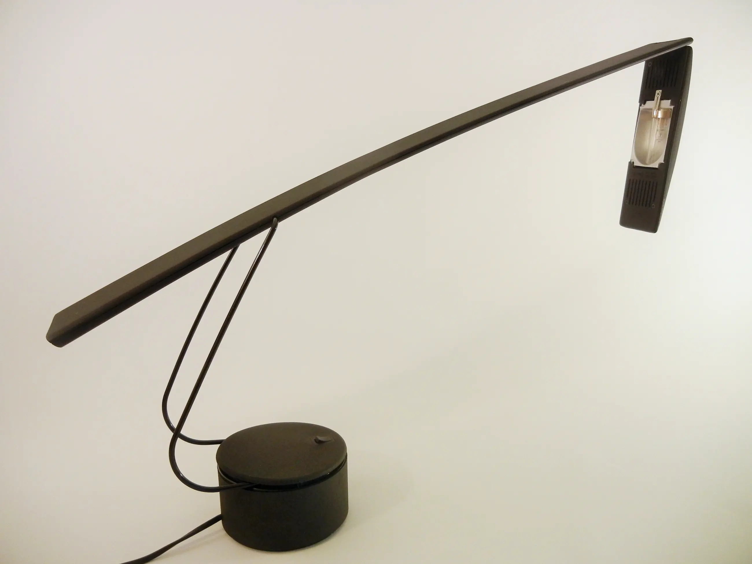 Designklassieker.Uitgevoerd in polycarbonaat en metaal in een matzwarte kleur. Met de knop op de voet zijn twee lichtintensiteiten in te stellen.