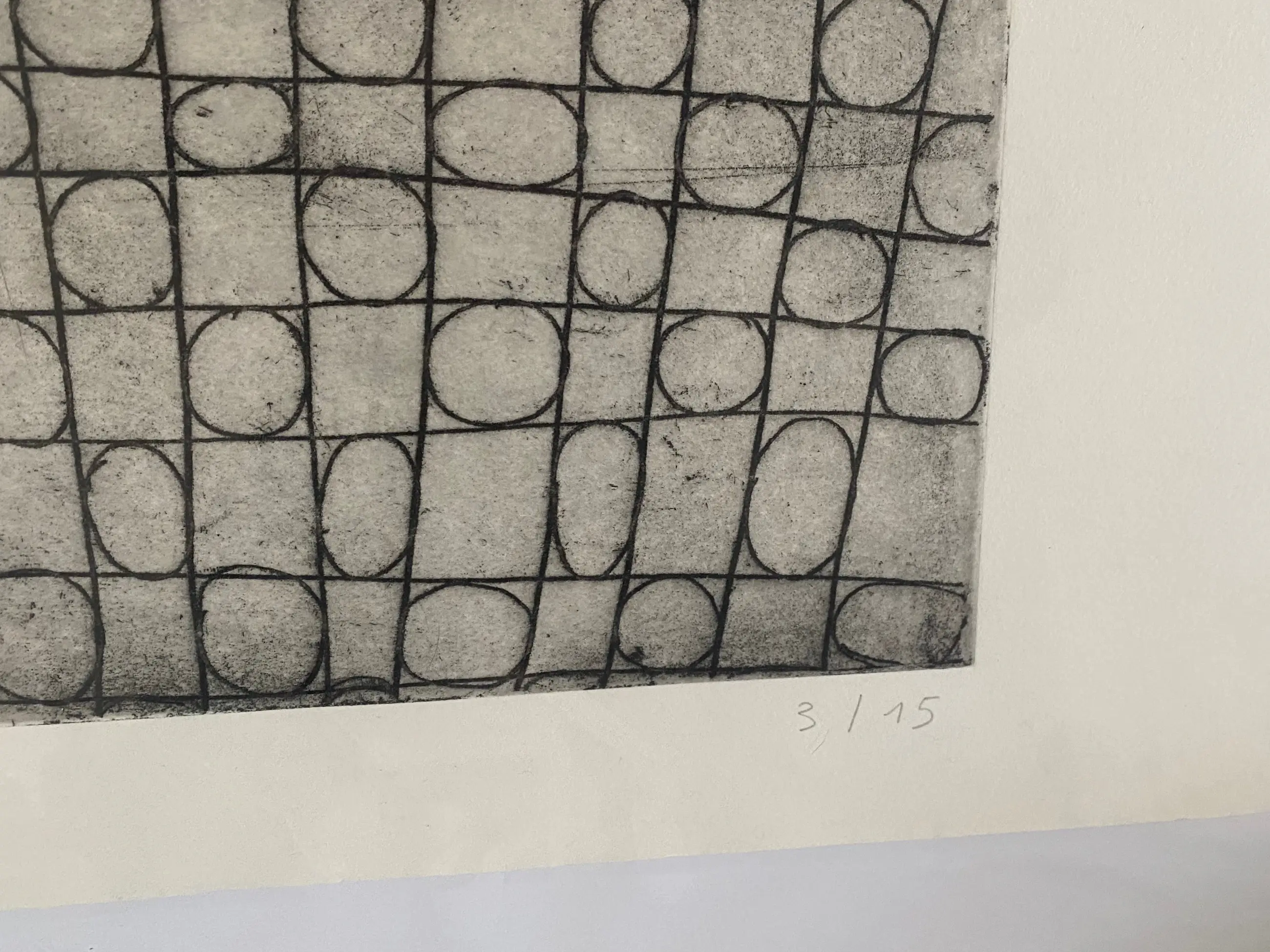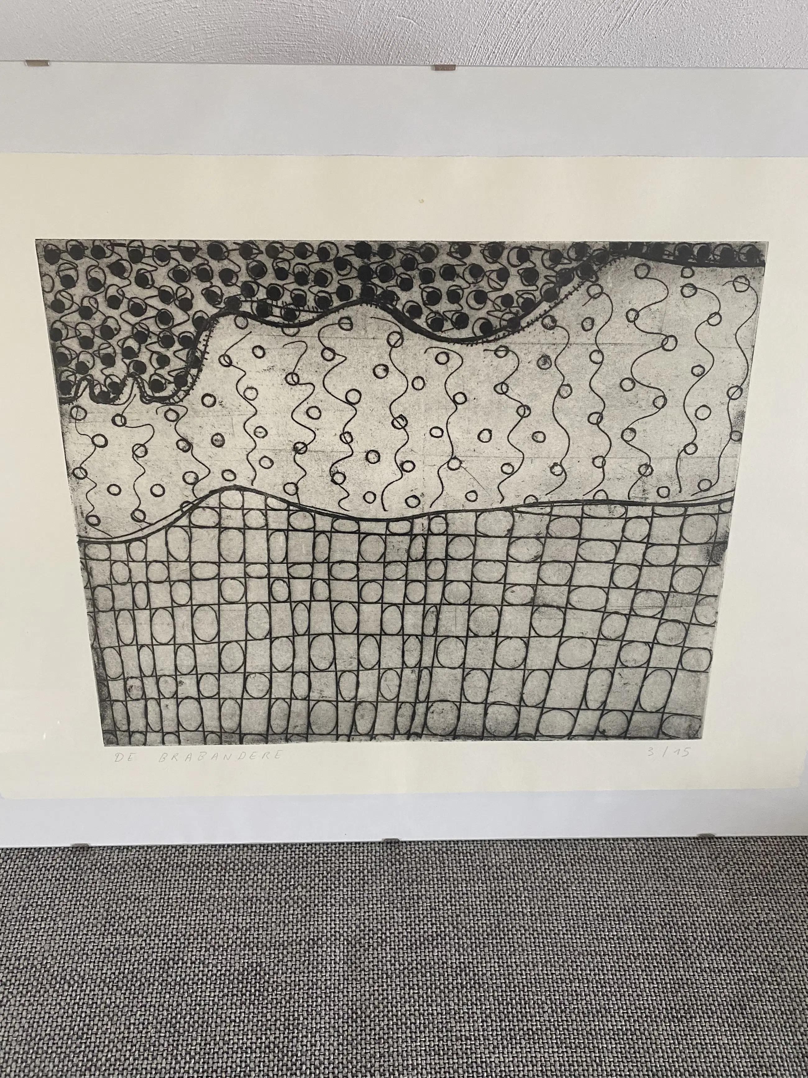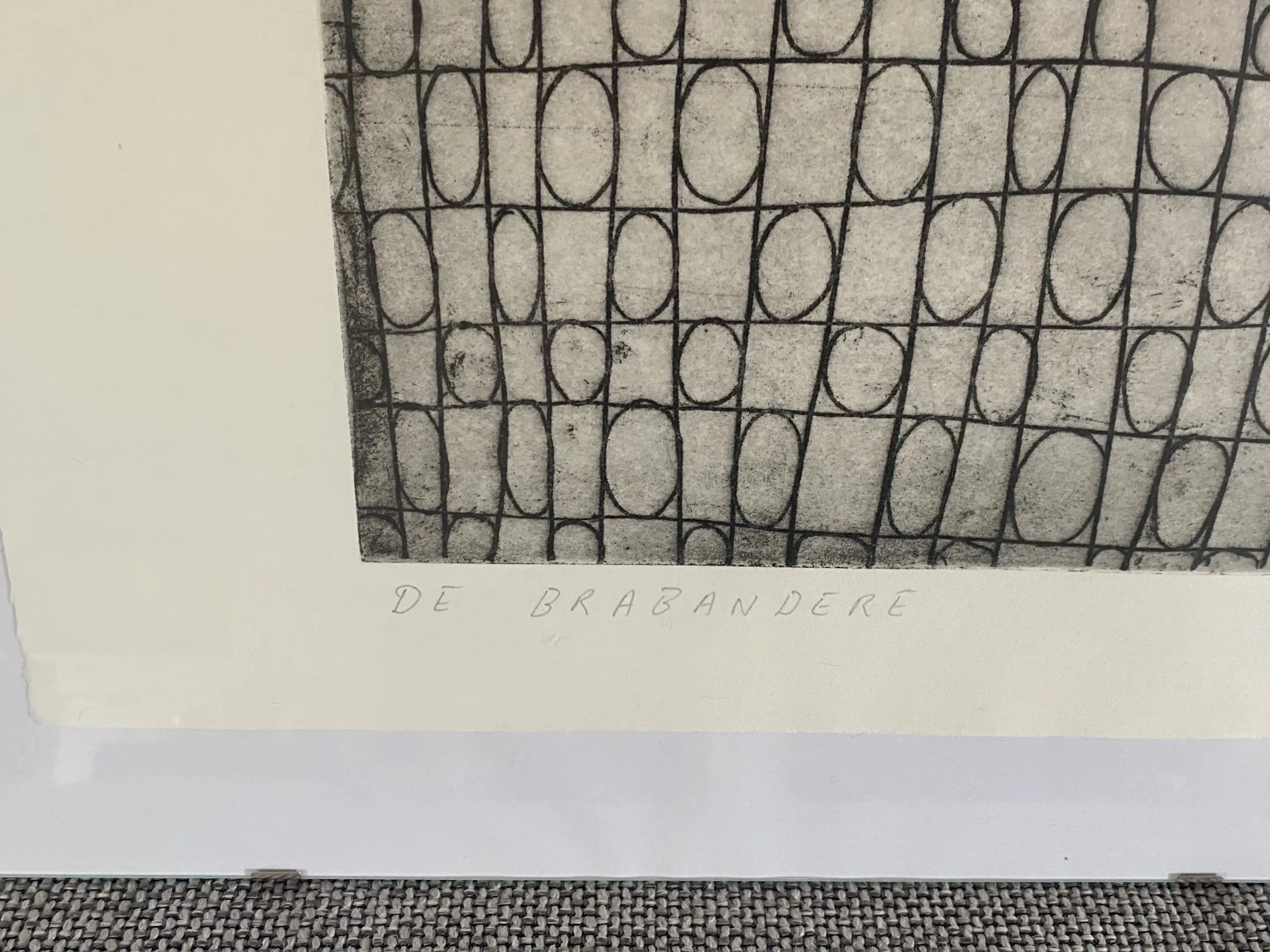 Ets, Mario de Brabandere, 3/15, blad 46 x 68, ets 37 x 49 cm, in provisorische lijst ter bescherming