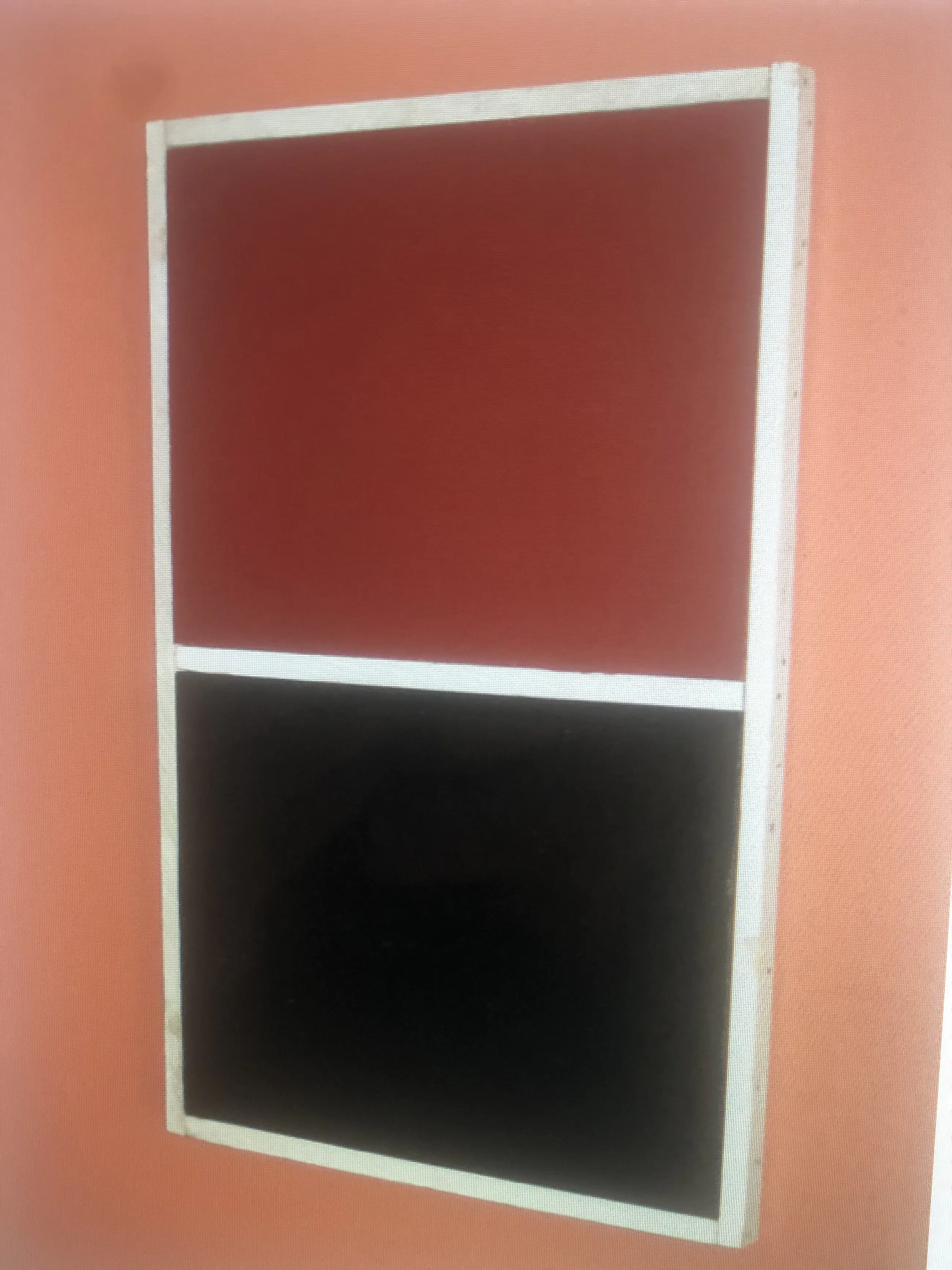Onderpaneel: acrylhars op linoleum op paneel 65,5 x 43,5 cm.
