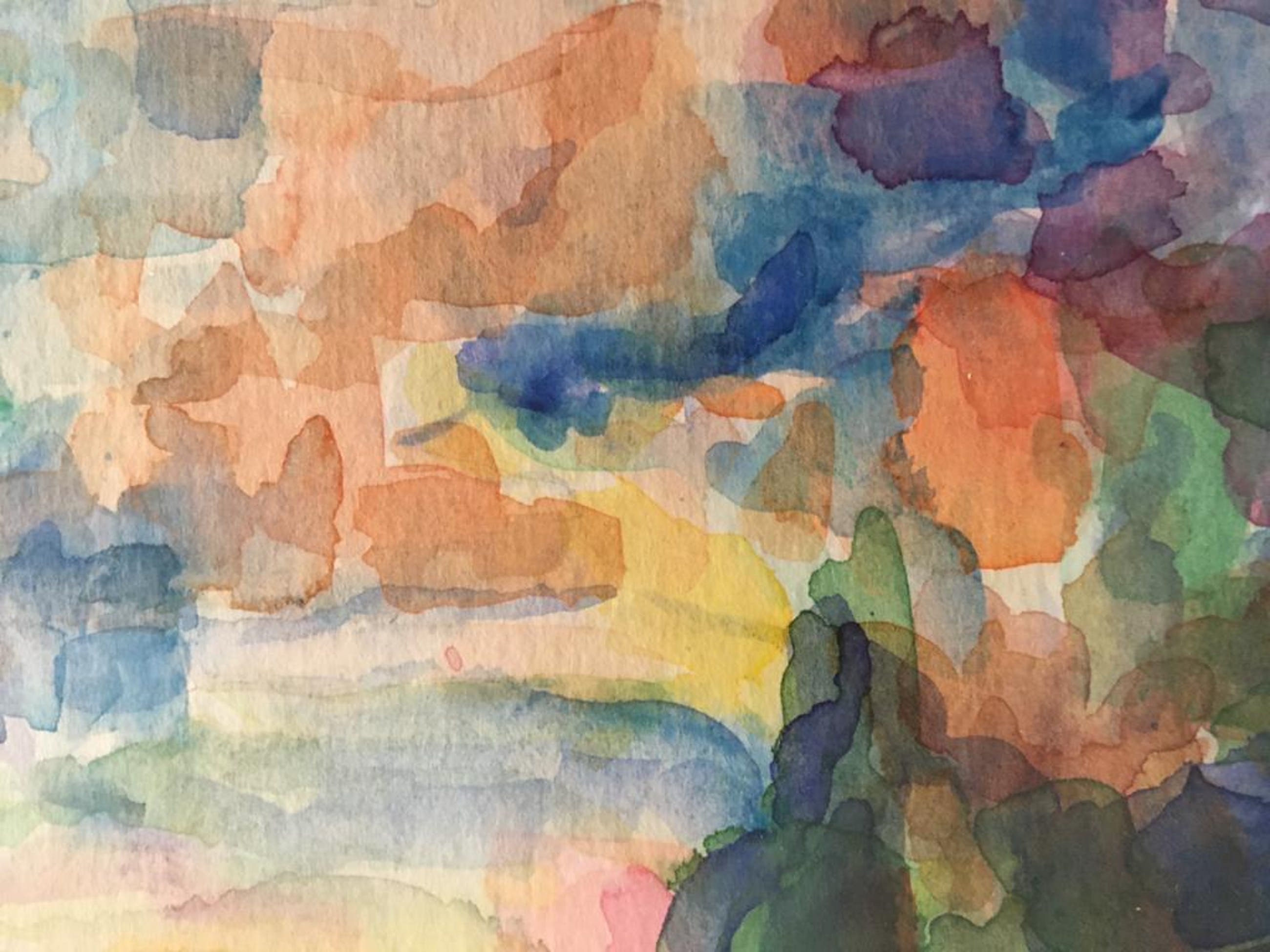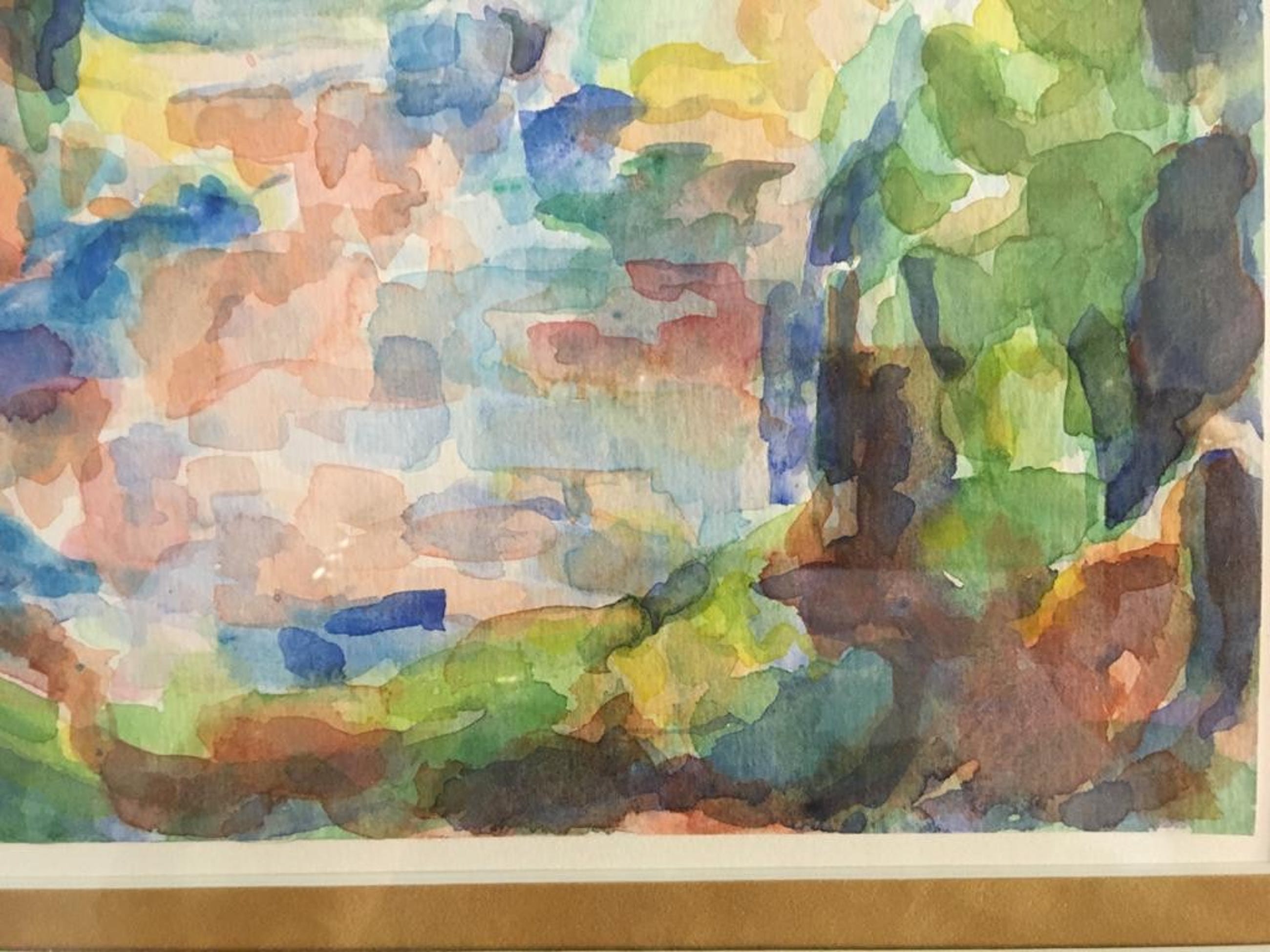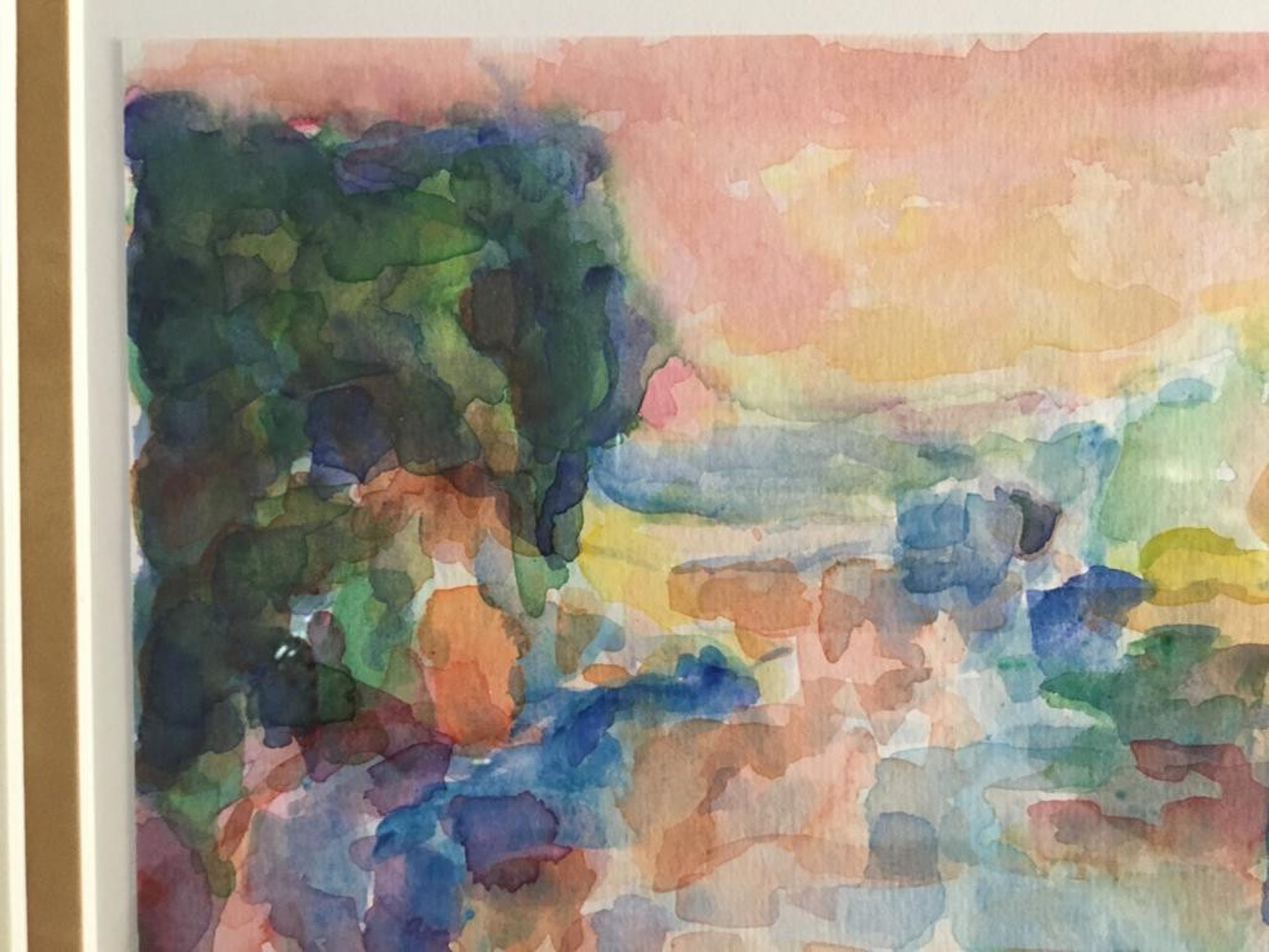 'Waterlandschap', impressionistische en sfeervolle aquarel van Mario Dijsselbloem uit 1996.