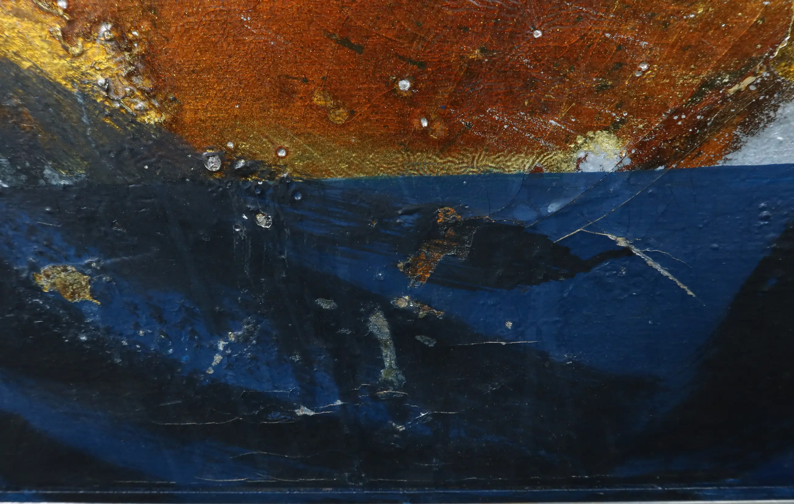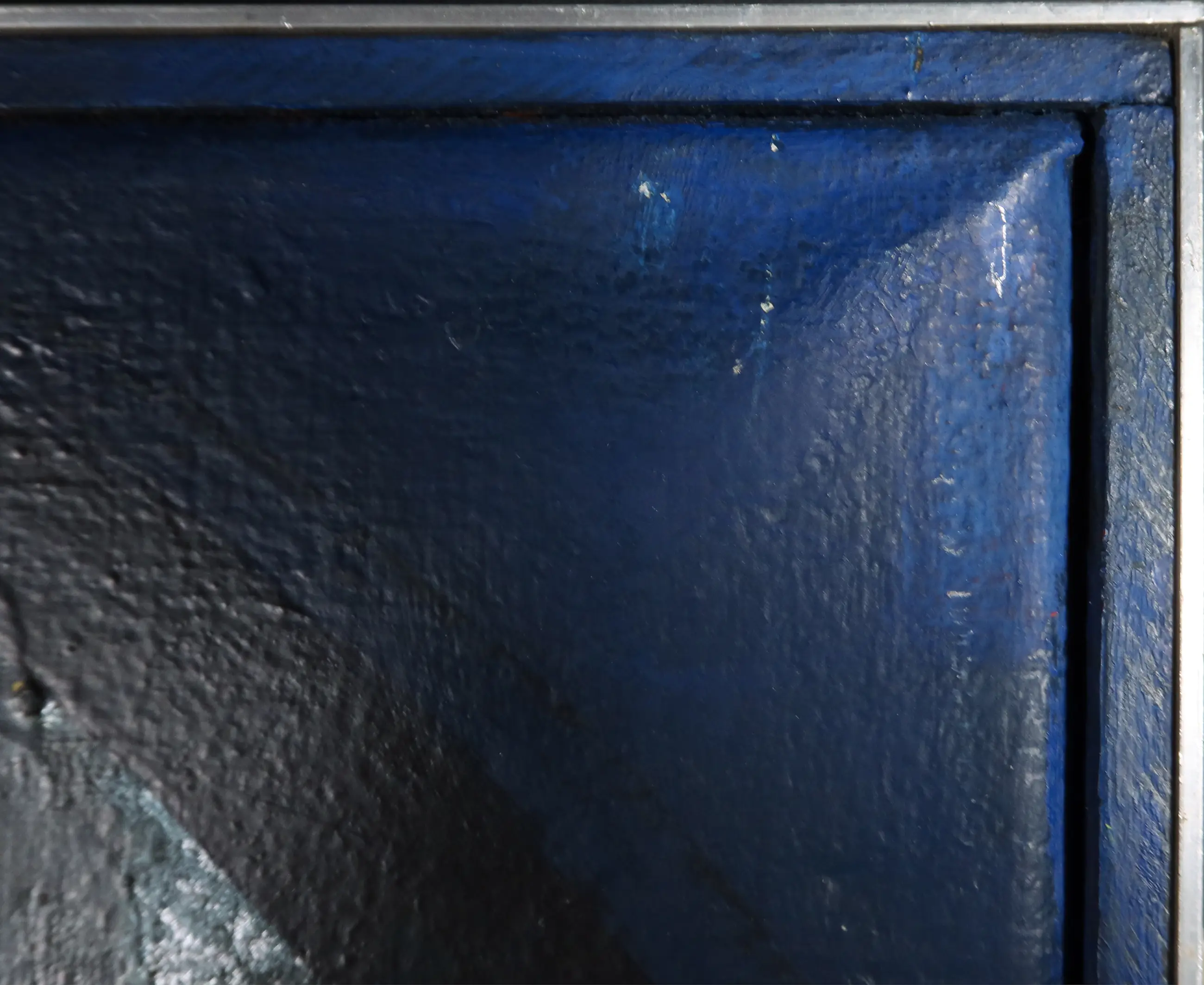 | Verfschade, voornamelijk in de hoekjes. Craquelé aanwezig. Het doek is licht gebobbeld hier en daar. | |