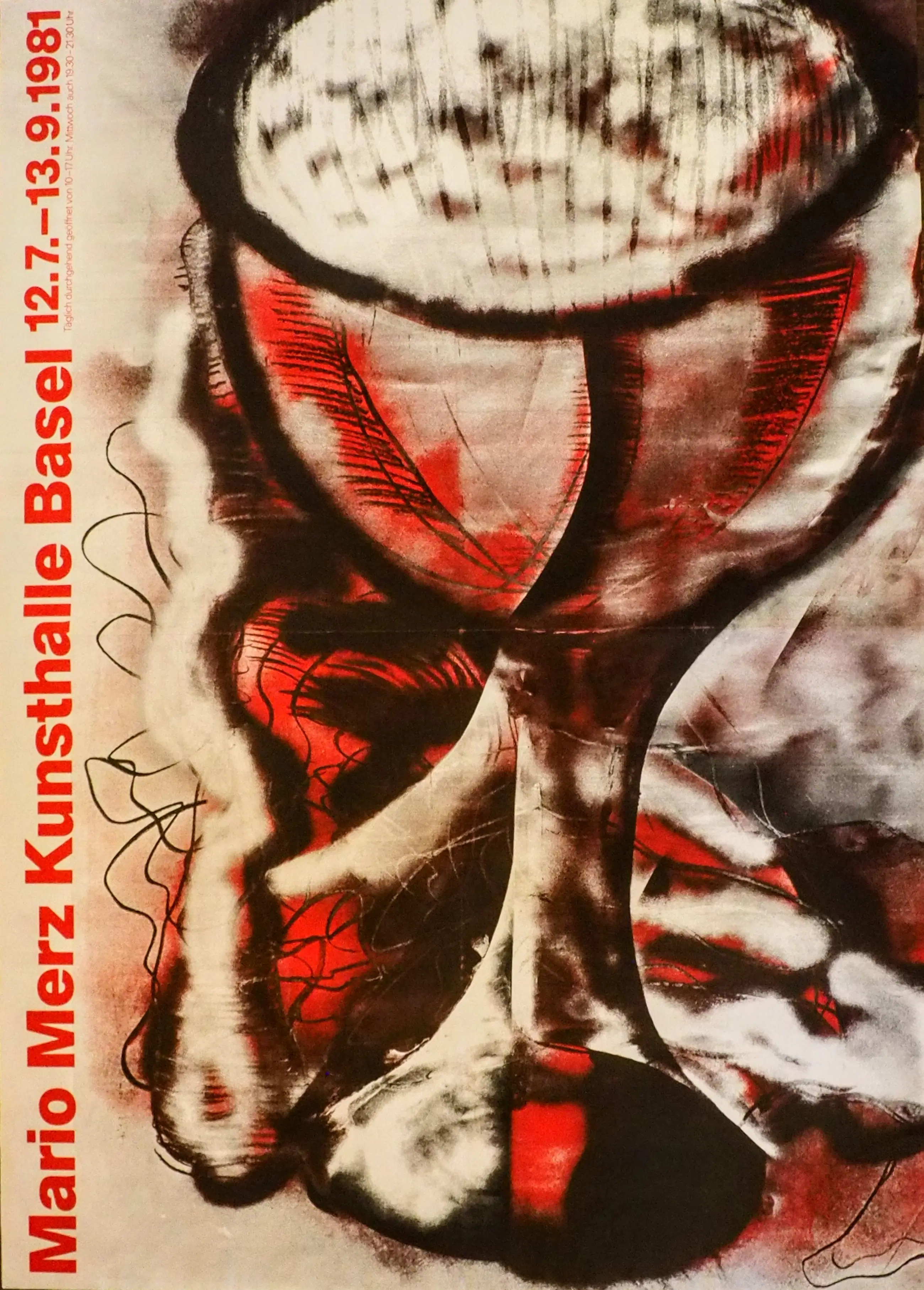 Affiche uitgegeven ter gelegenheid van de tentoonstelling van Merz bij Kunsthalle Basel Het is het originele affiche
