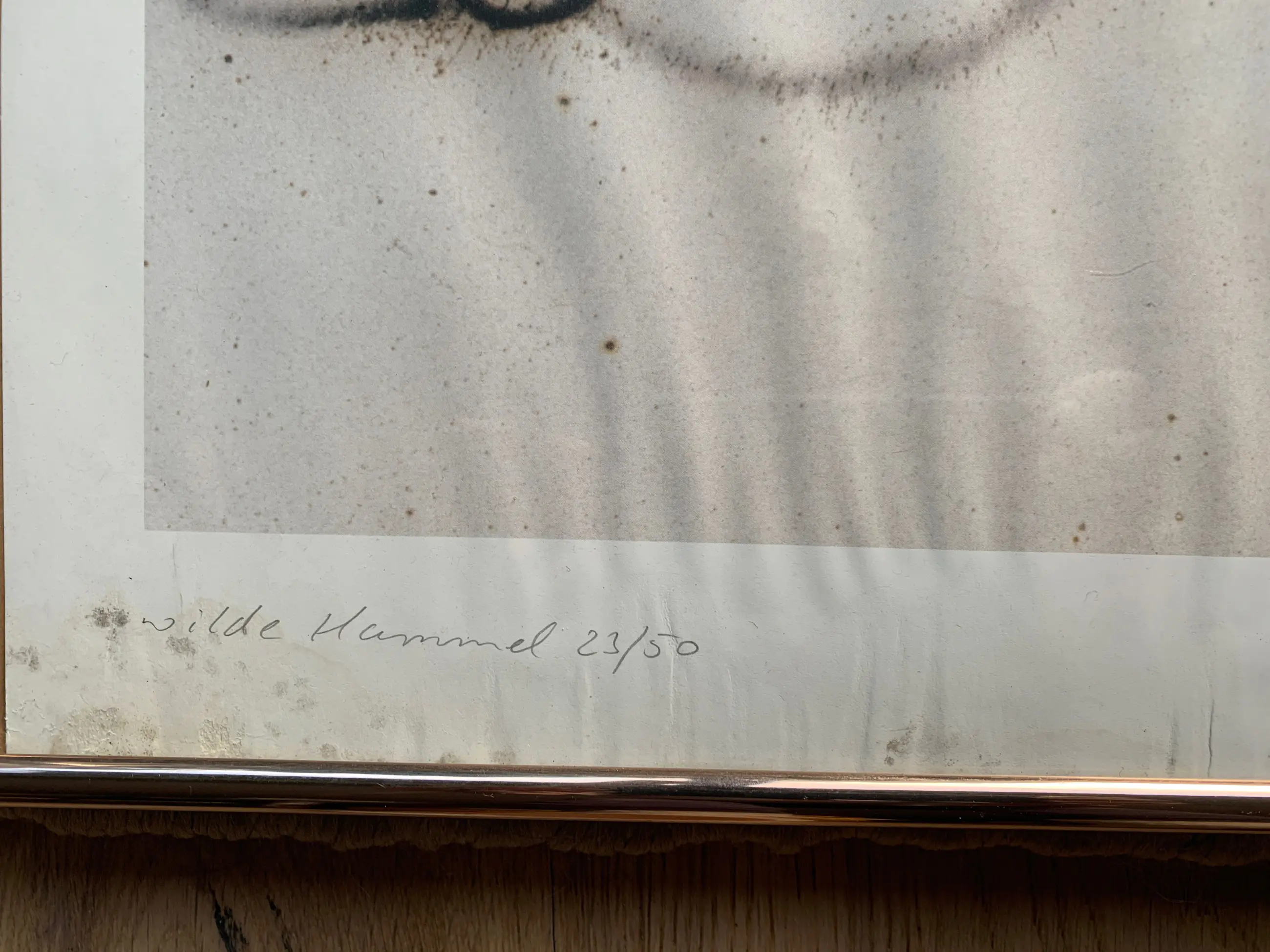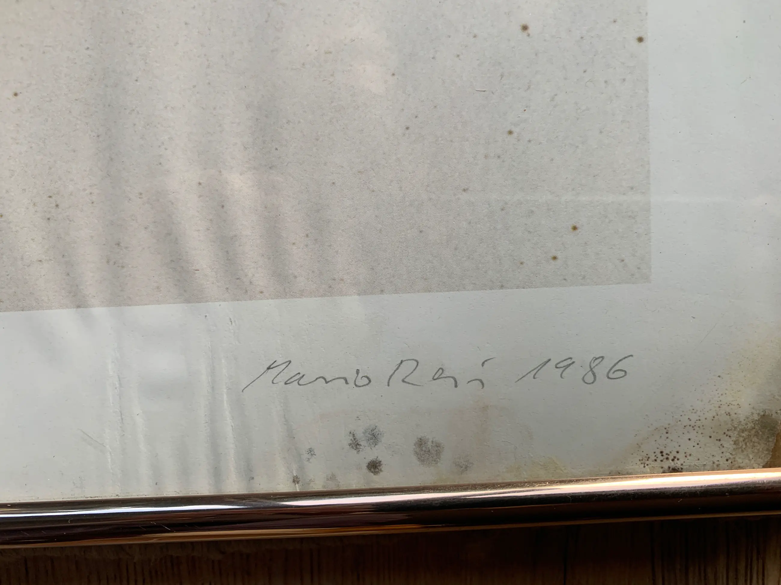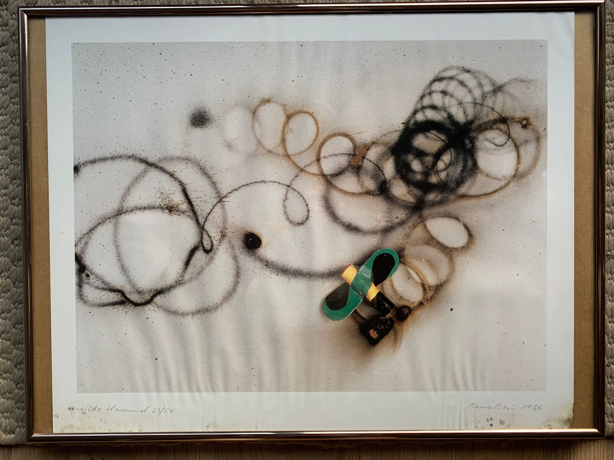 Ik verwierf de foto ter gelegenheid van een vernissage in Gelsenkirchen Buer, toen Mario Reis voor de renovatie van de oude museumvilla vuurwerk aan de muren en het plafond bevestigde en aanstak. Tegelijkertijd was er een tentoonstelling van hem. Helaas is de foto het slachtoffer geworden van waterschade, waardoor het papier aan de onderkant golvend is.